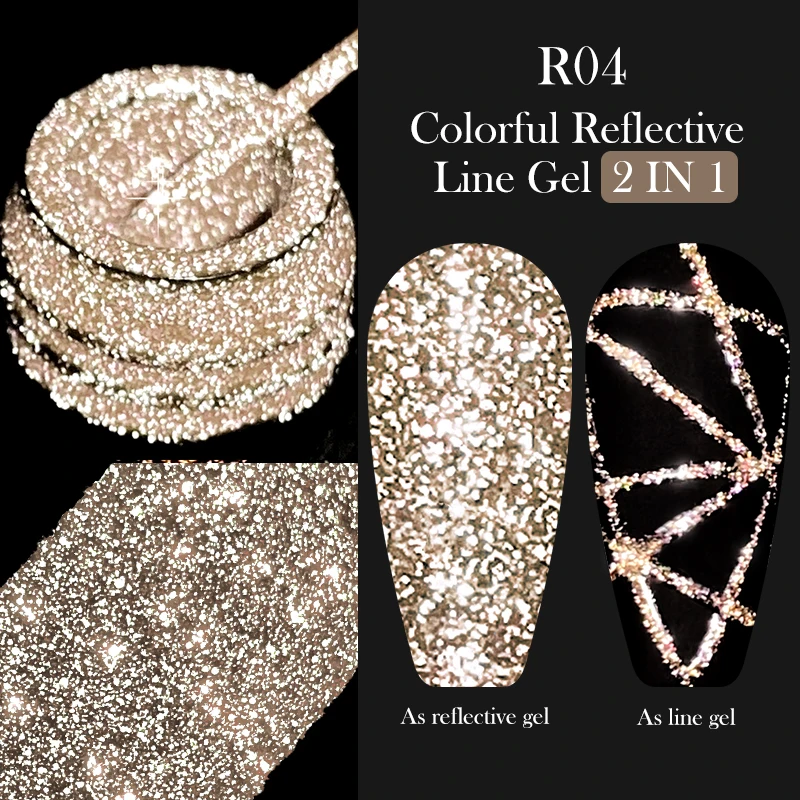 LILYCUTE 5ML Champagne Gold Reflective Glitter Liner Gel Nail Polish Bright...