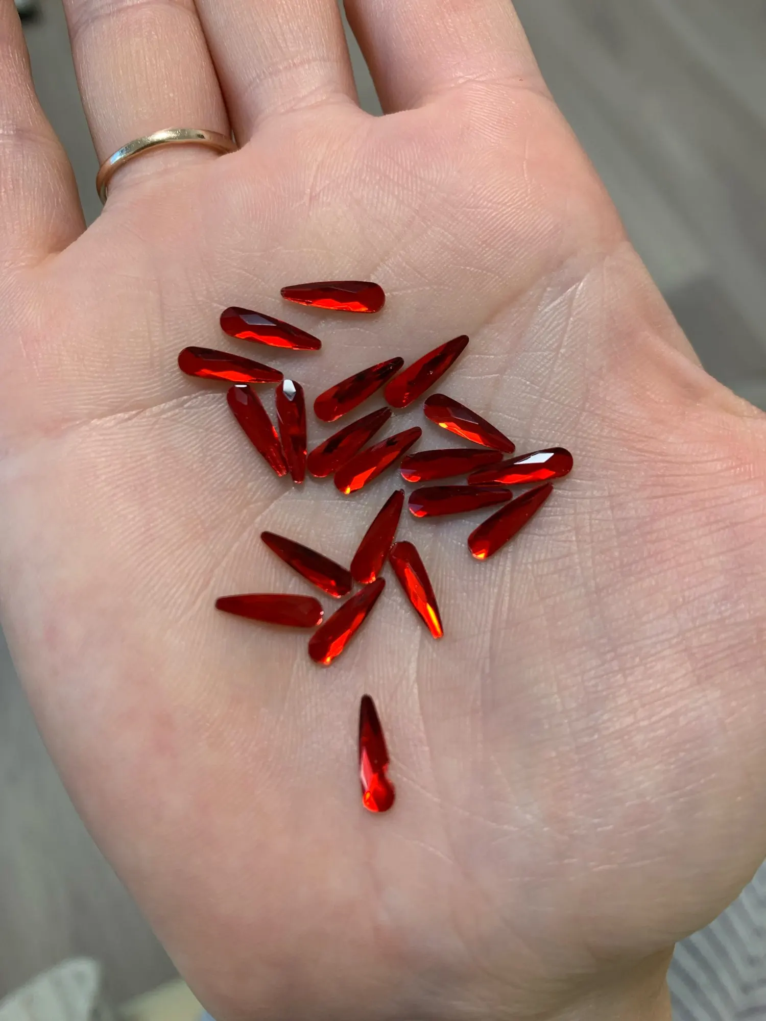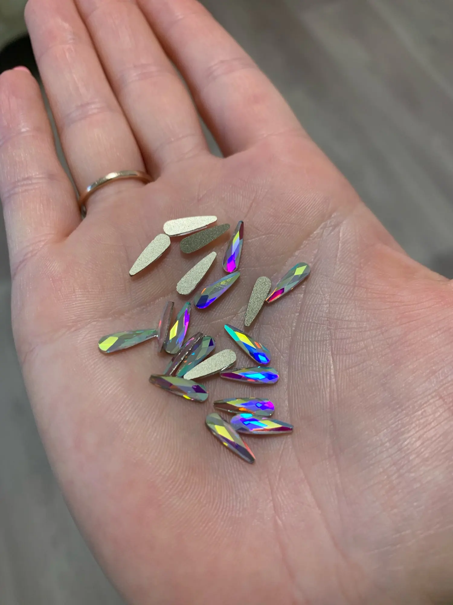 Доставка кончено очень долгая, 2 месяца, я уже думала, что не придут, каждую неделю проверяла почтовый ящик и вот наконец то, дошли) Продавец положил всё то что я просила, в одной упаковке 20 страз. Только одна была с браком, видно на фото. Красиво переливаются, цвет насыщенный. Посылка не отслеживалась. Покупала по 75₽ за упаковку