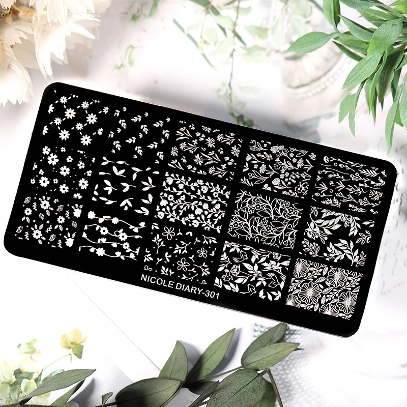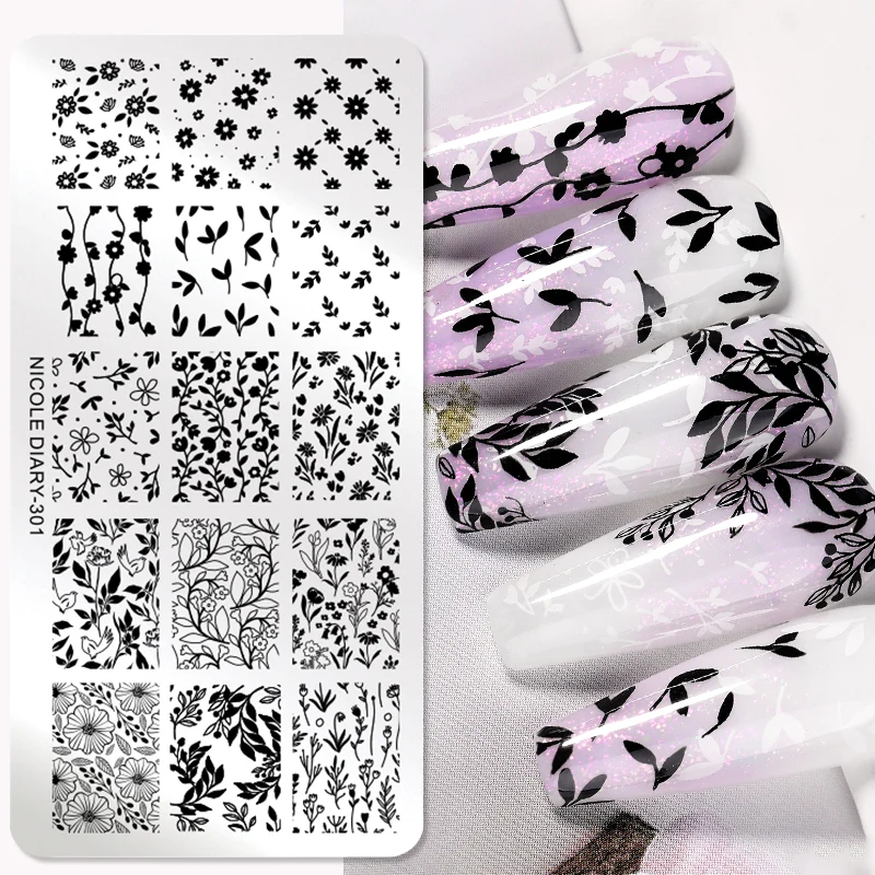 NICOLE DIARY Floral Leaves Nail Stamping Plates Image Transfer Template...