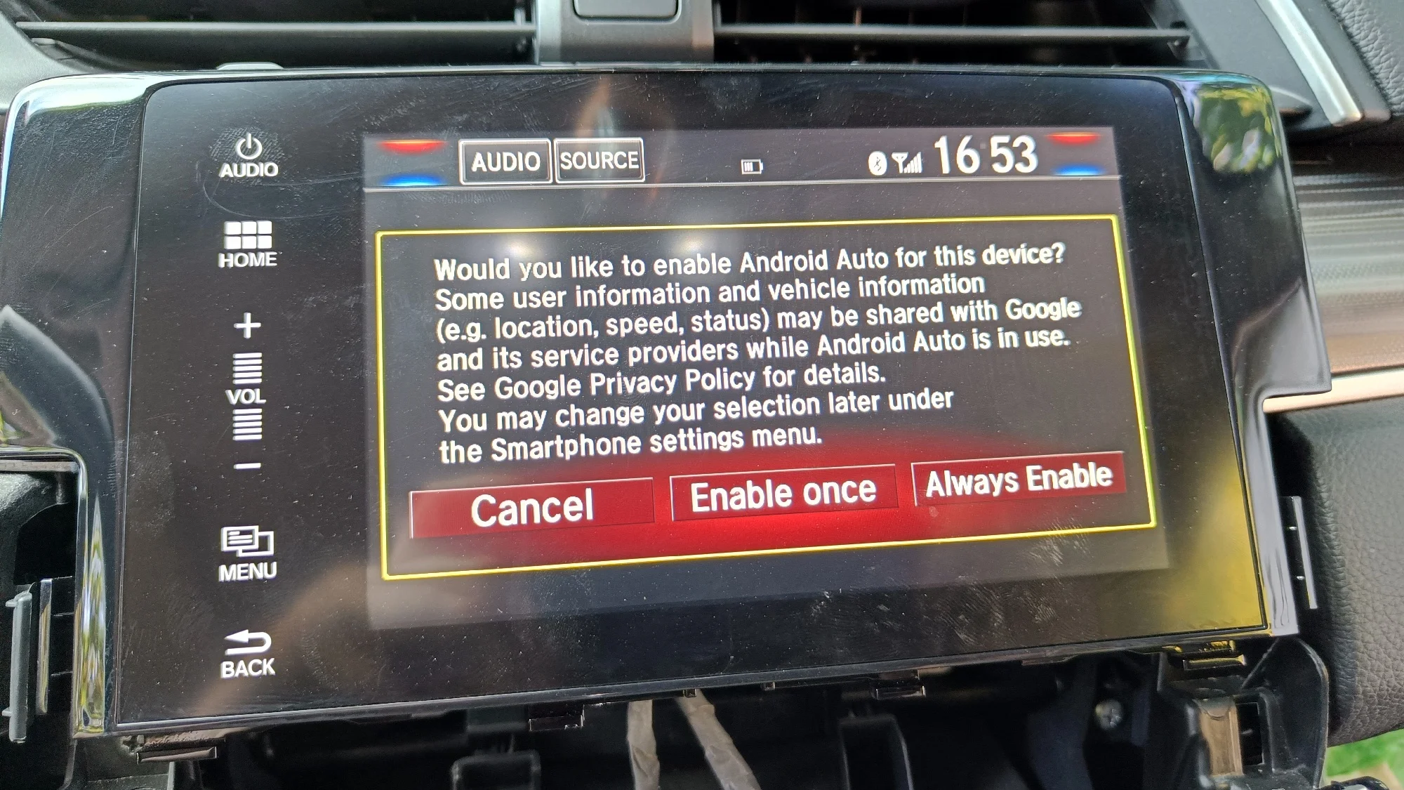 Все отлично! Андроид Авто запустился, время можно выставить только через сервисное меню. Следующим шагом будет установка Хонда хак. И тогда раскроется весь потенциал ГУ хонда цивик 10 из Китая!
