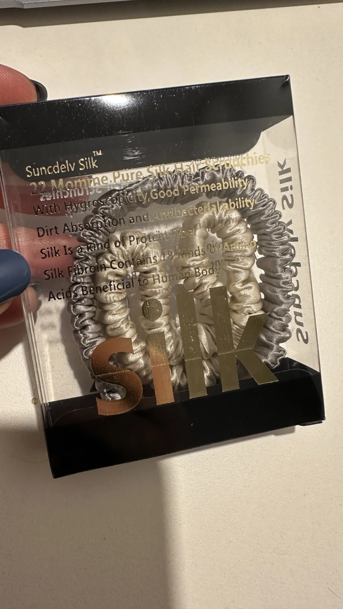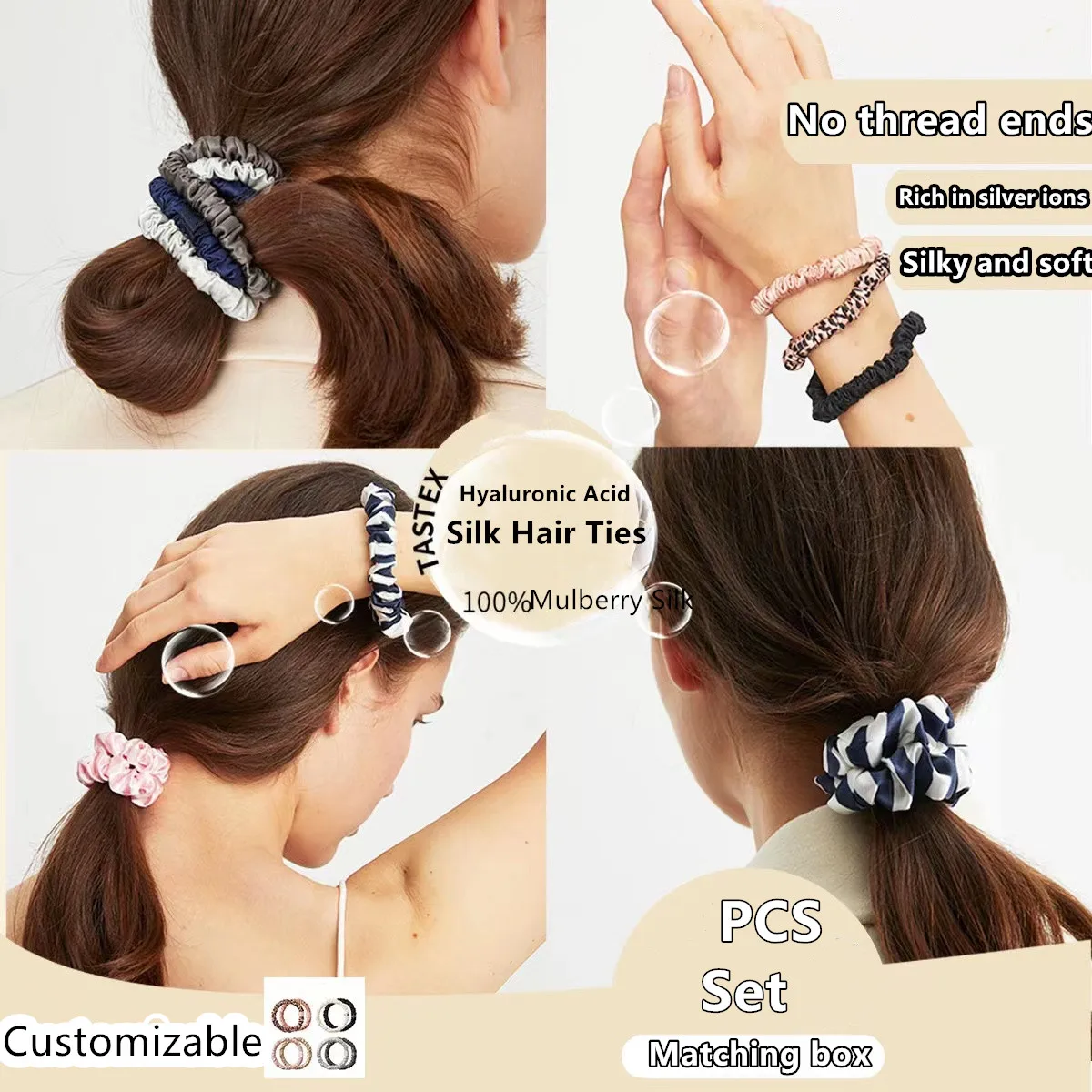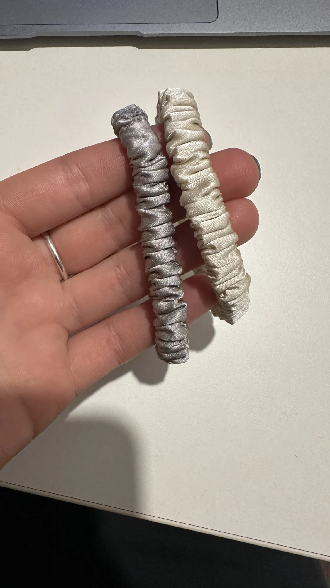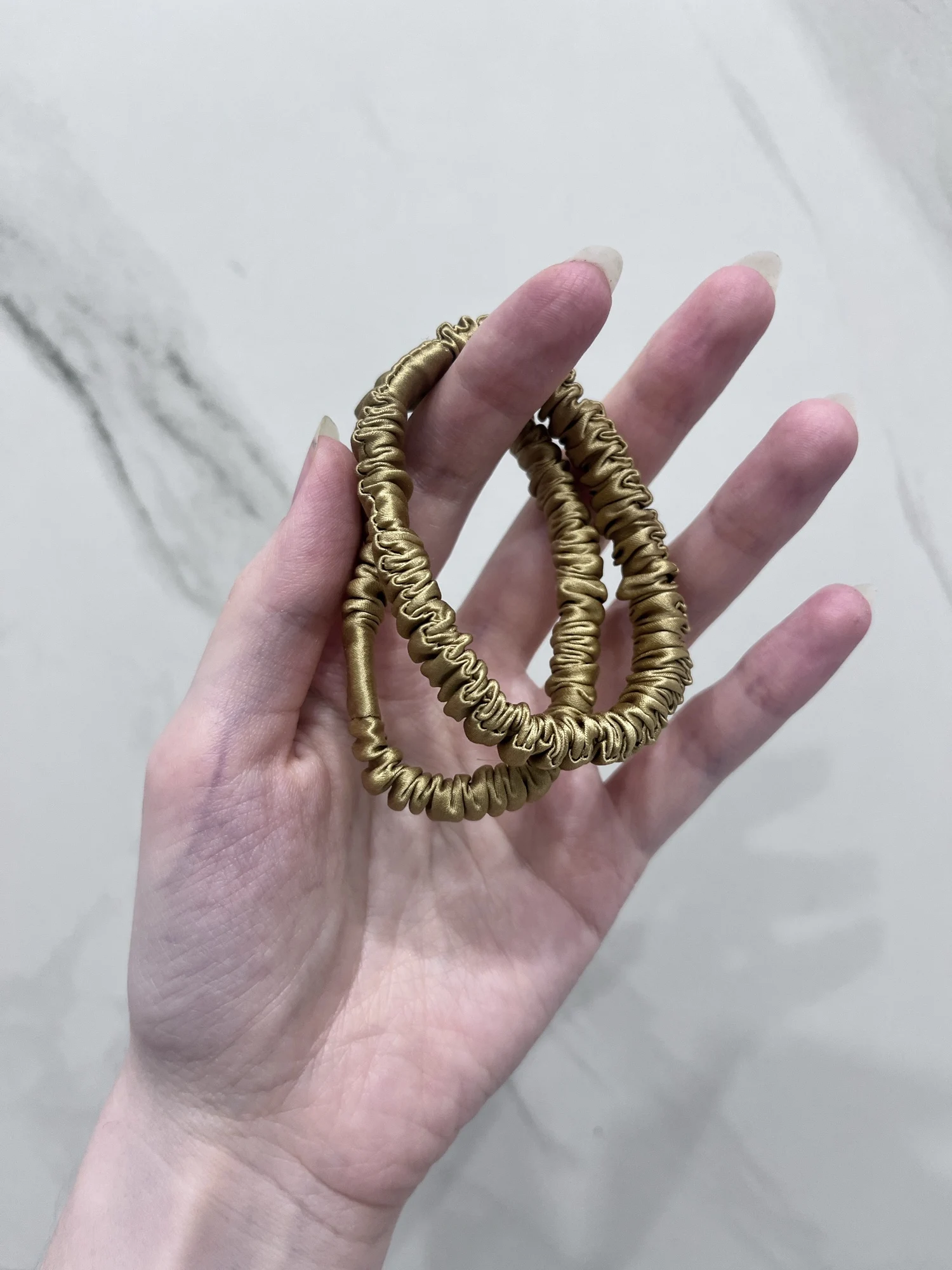 Красивые резинки. Деликатно фиксируют волосы - внутри плоская широкая резинка, которая не передавливает в одном месте, а складки ткани ещё и смягчают давление. Но вот по материалу вопросики. Не очень похоже на шелк. На фотографиях переливаются, словно материал гладкий и скользкий , как и положено шёлку, а на деле резинки прям шершавые. Если не принципиален материал, то, в целом, эта шершавость может быть даже в плюс - резинка не будет соскальзывать с волос.