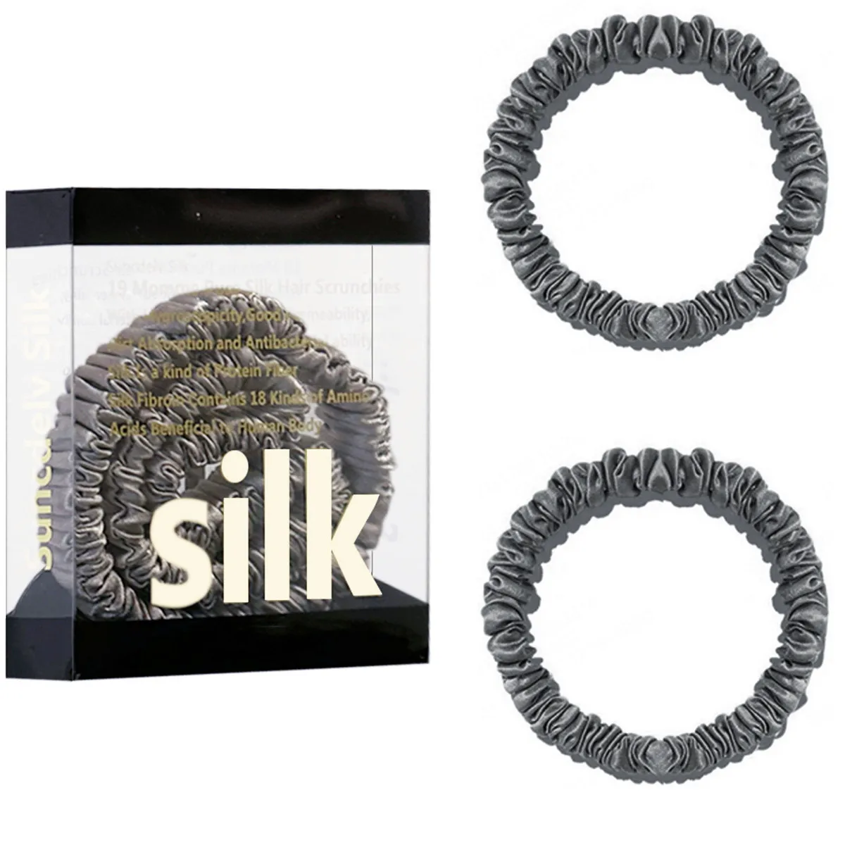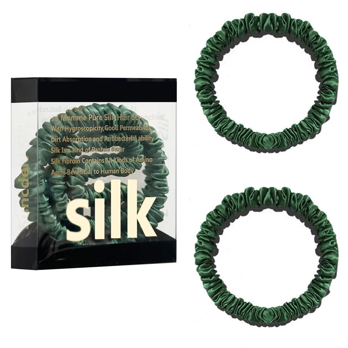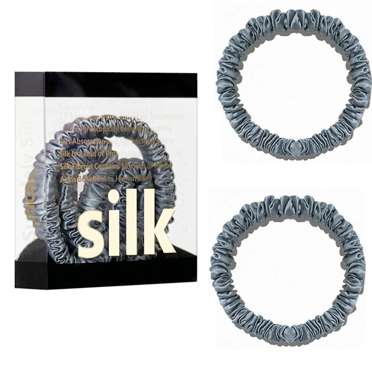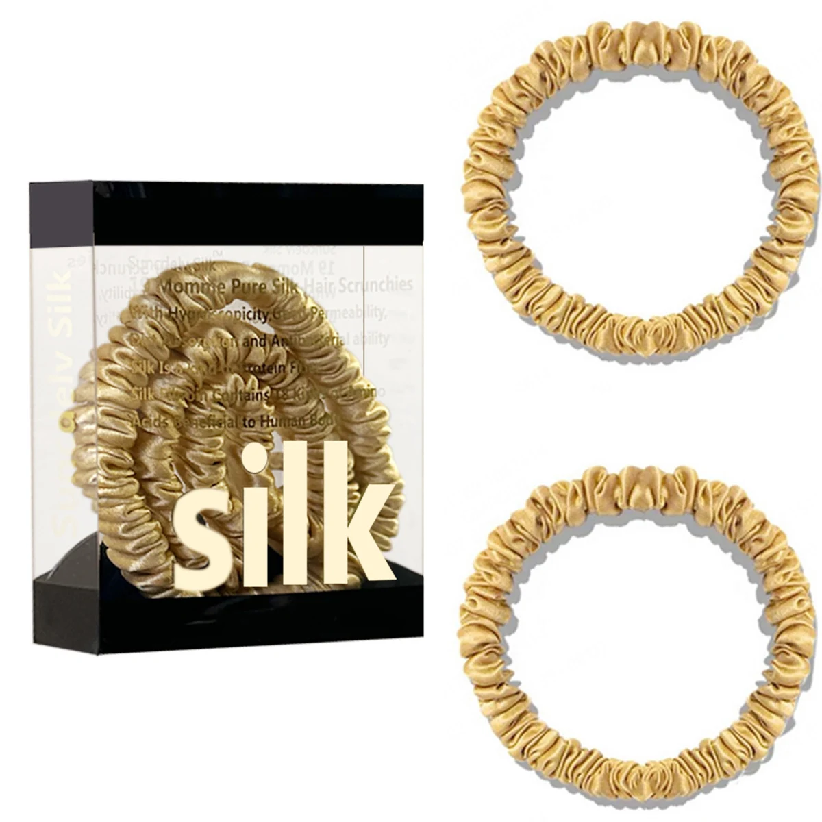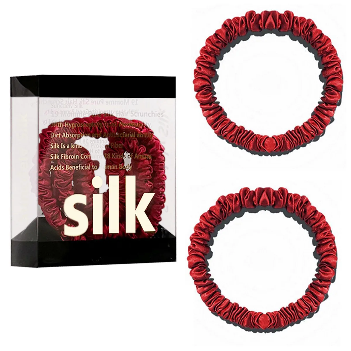 100% Pure Mulberry Silk Hair Scrunchies Silk Hair Ties Hairbands Skinny...