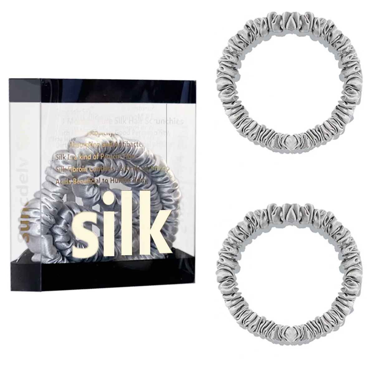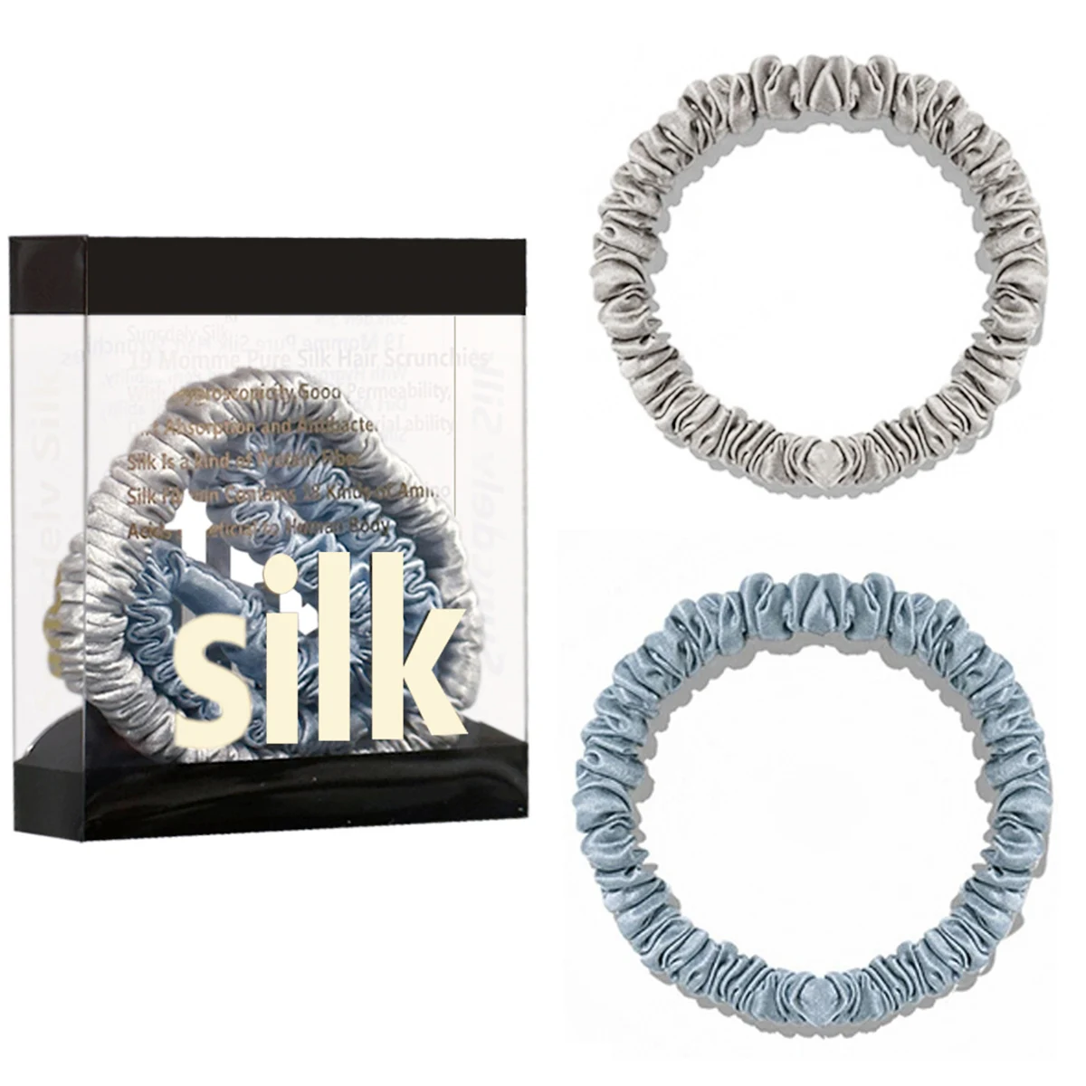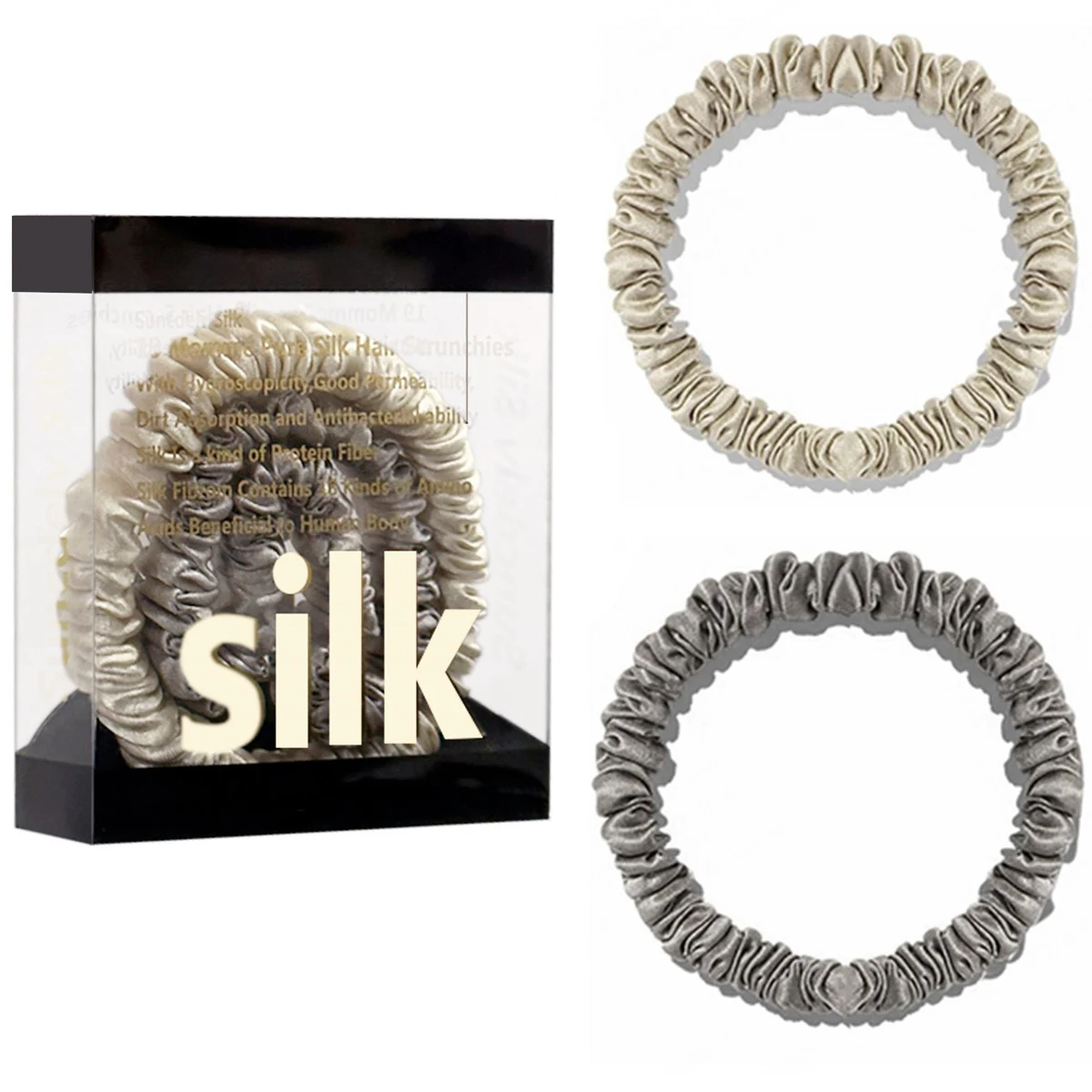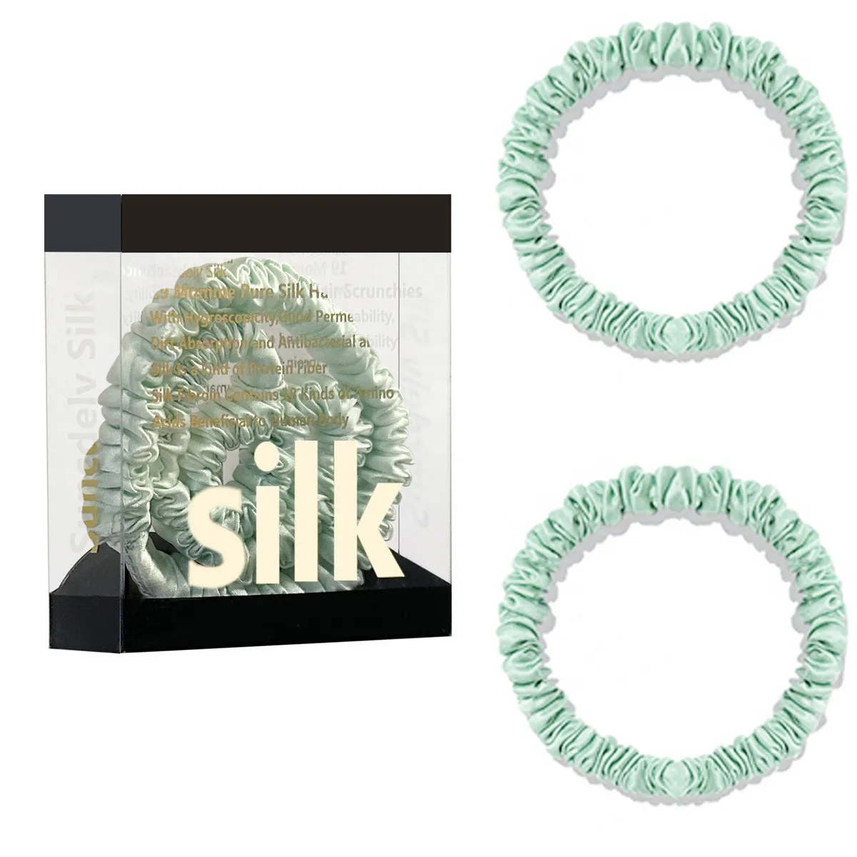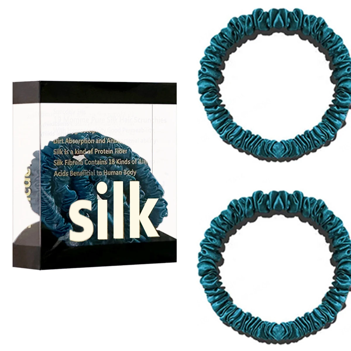 100% Pure Mulberry Silk Hair Scrunchies Silk Hair Ties Hairbands Skinny...