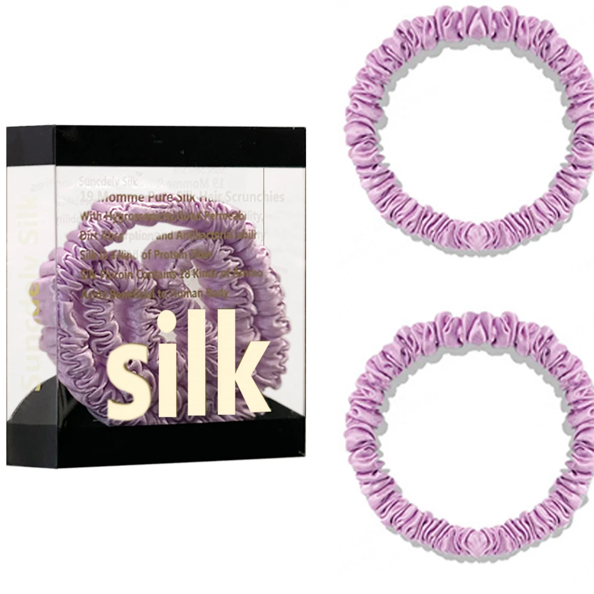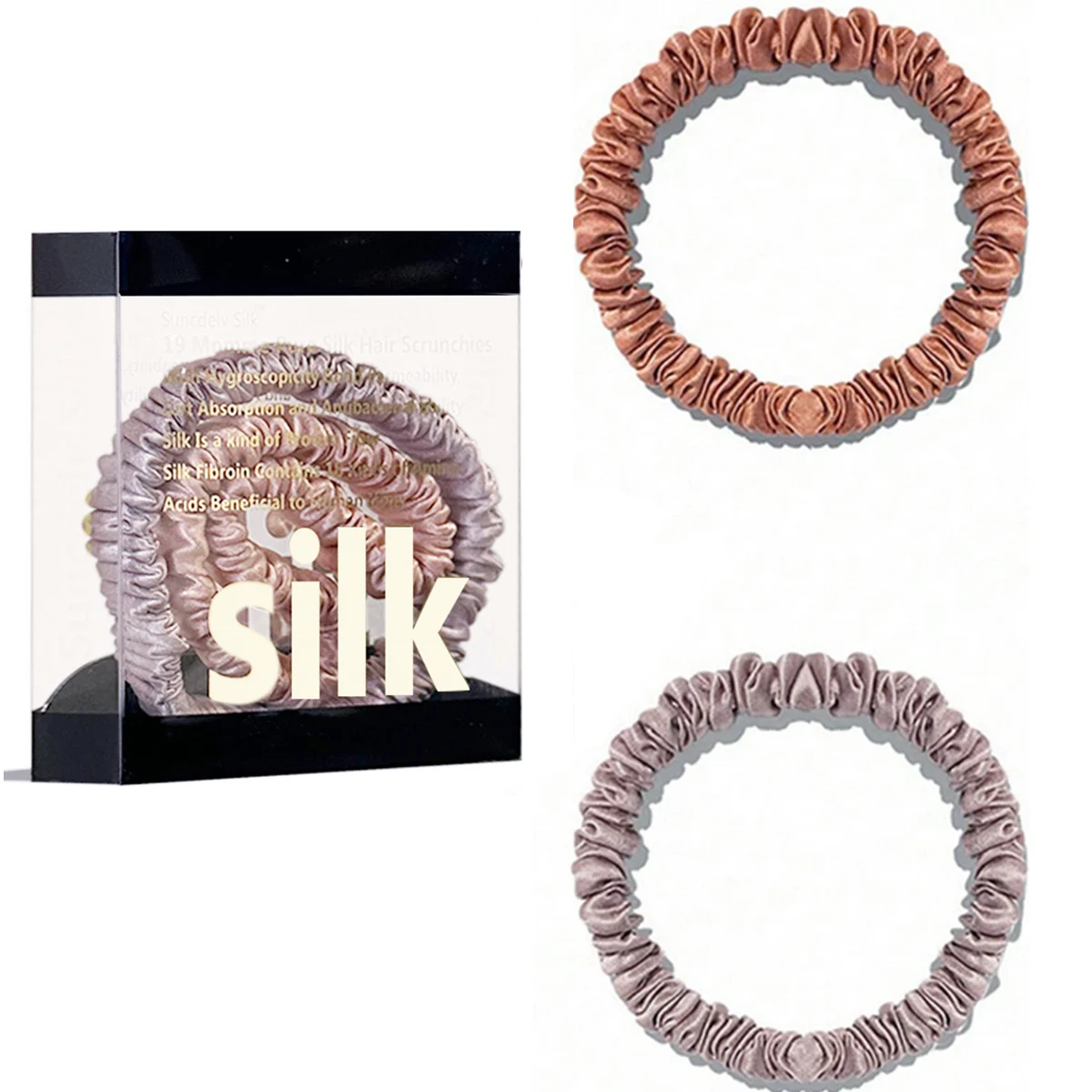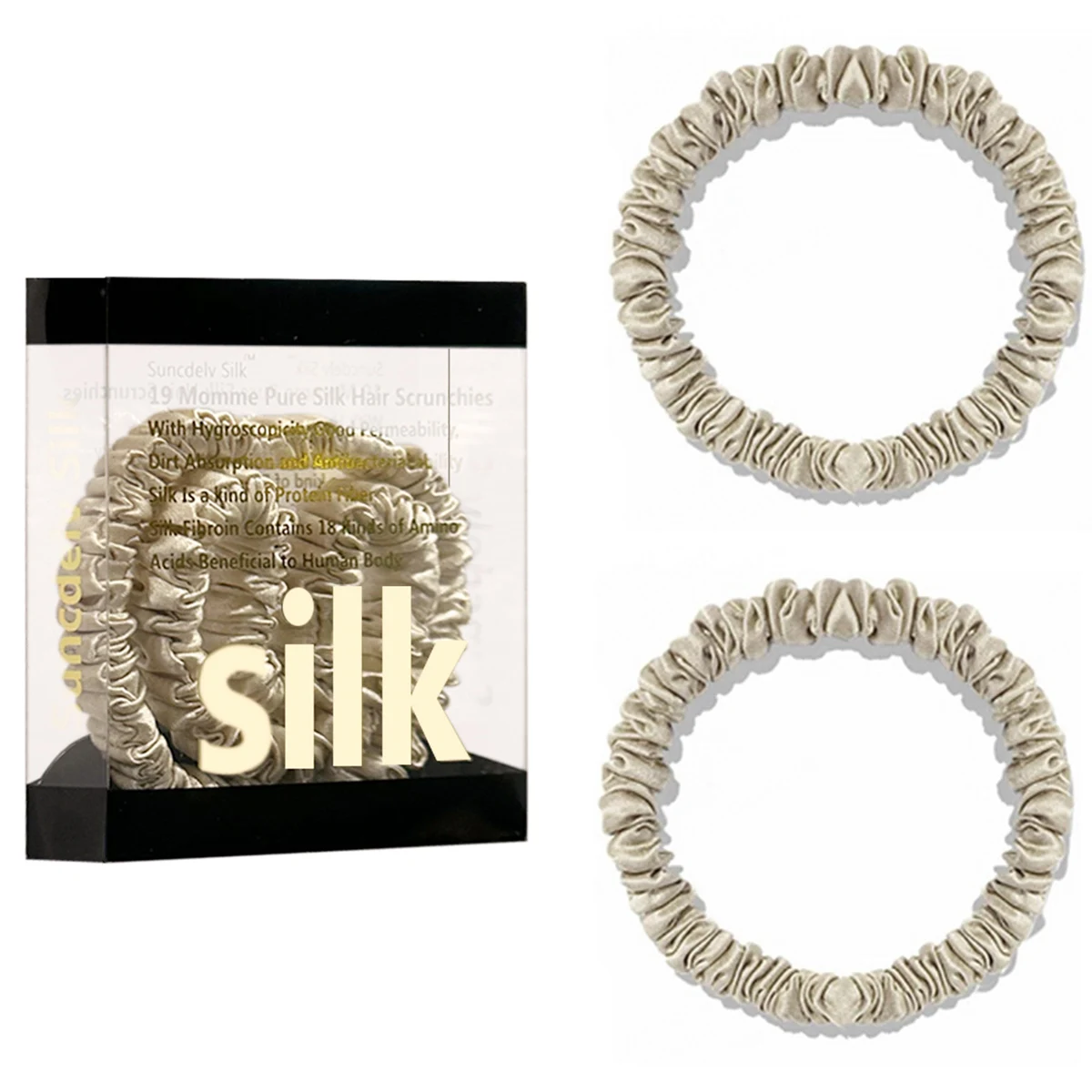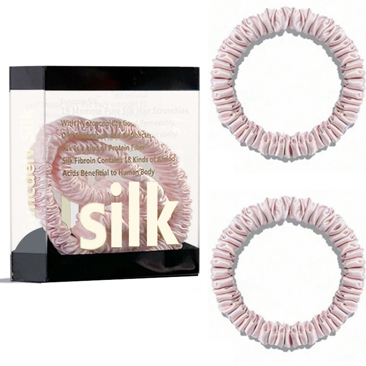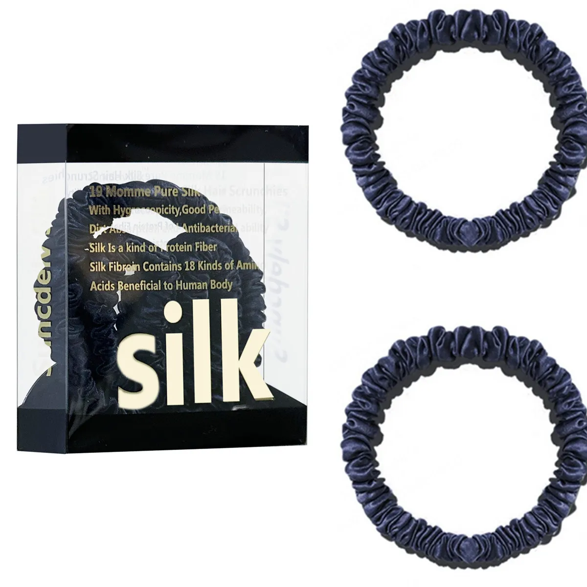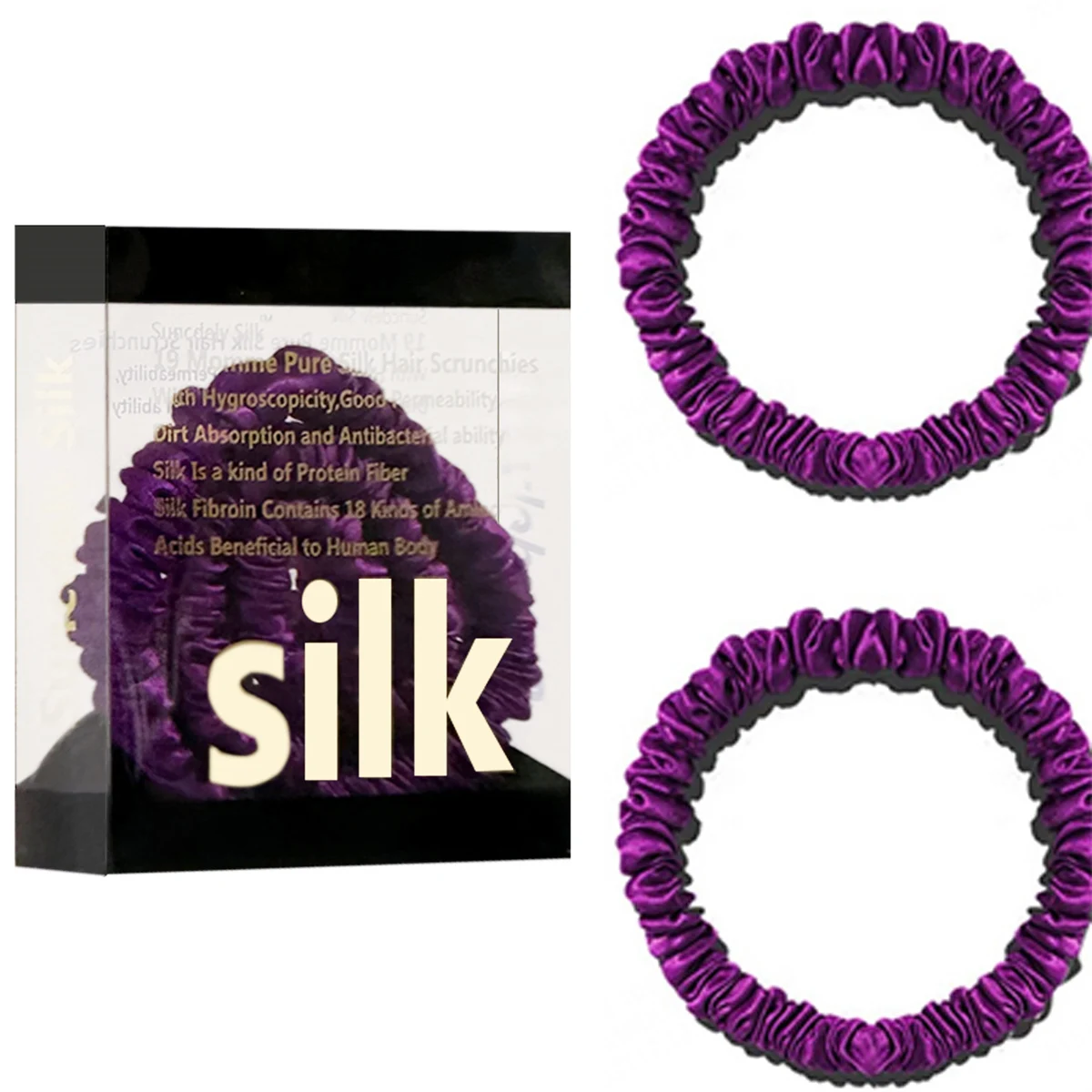 100% Pure Mulberry Silk Hair Scrunchies Silk Hair Ties Hairbands Skinny...