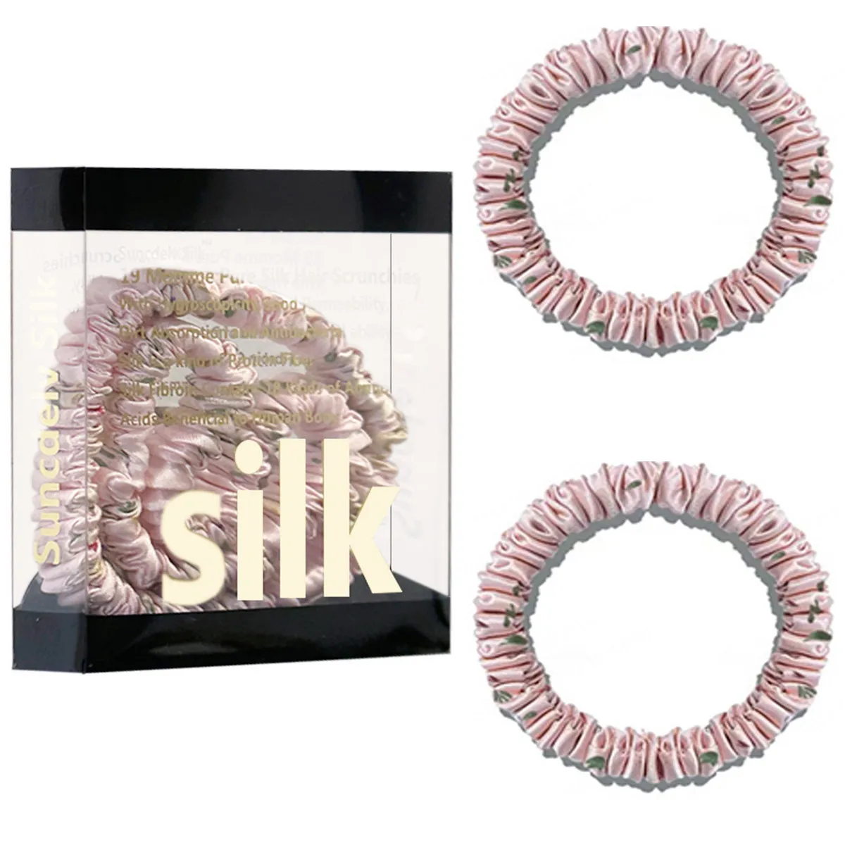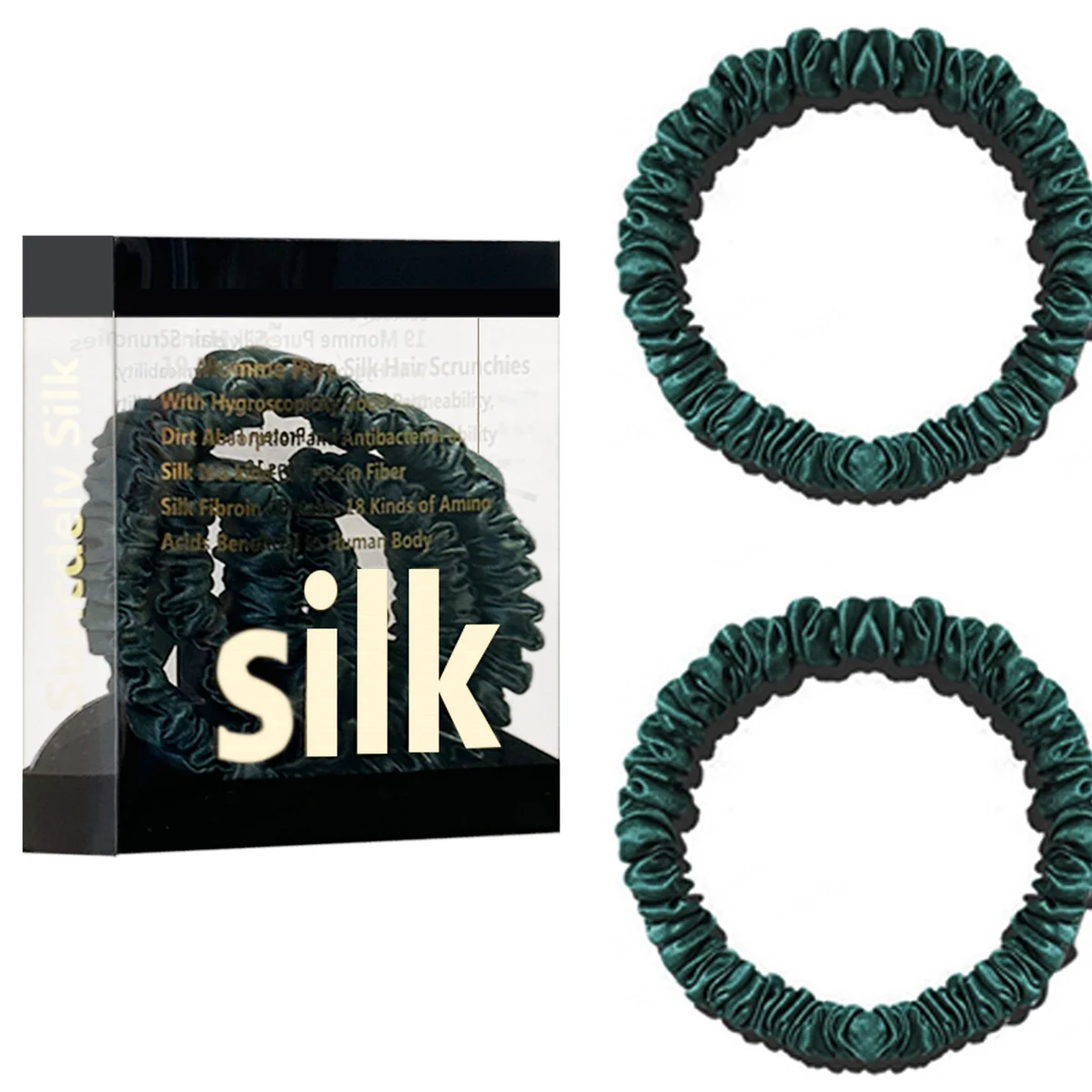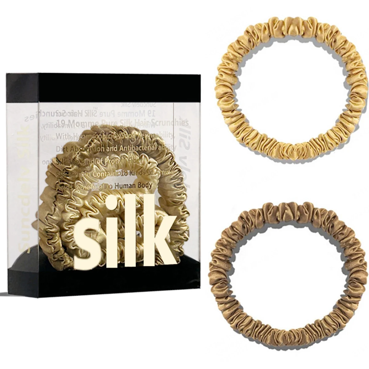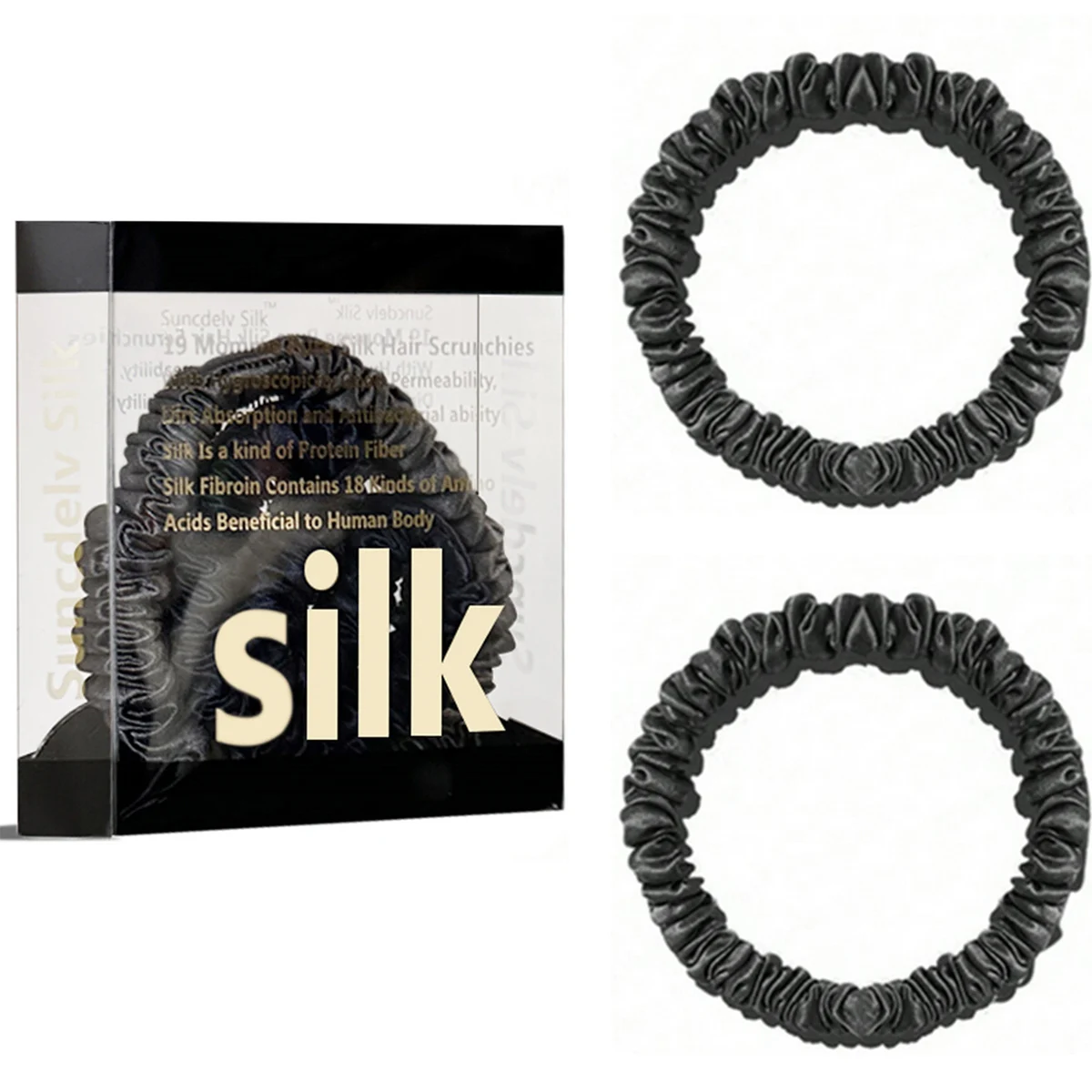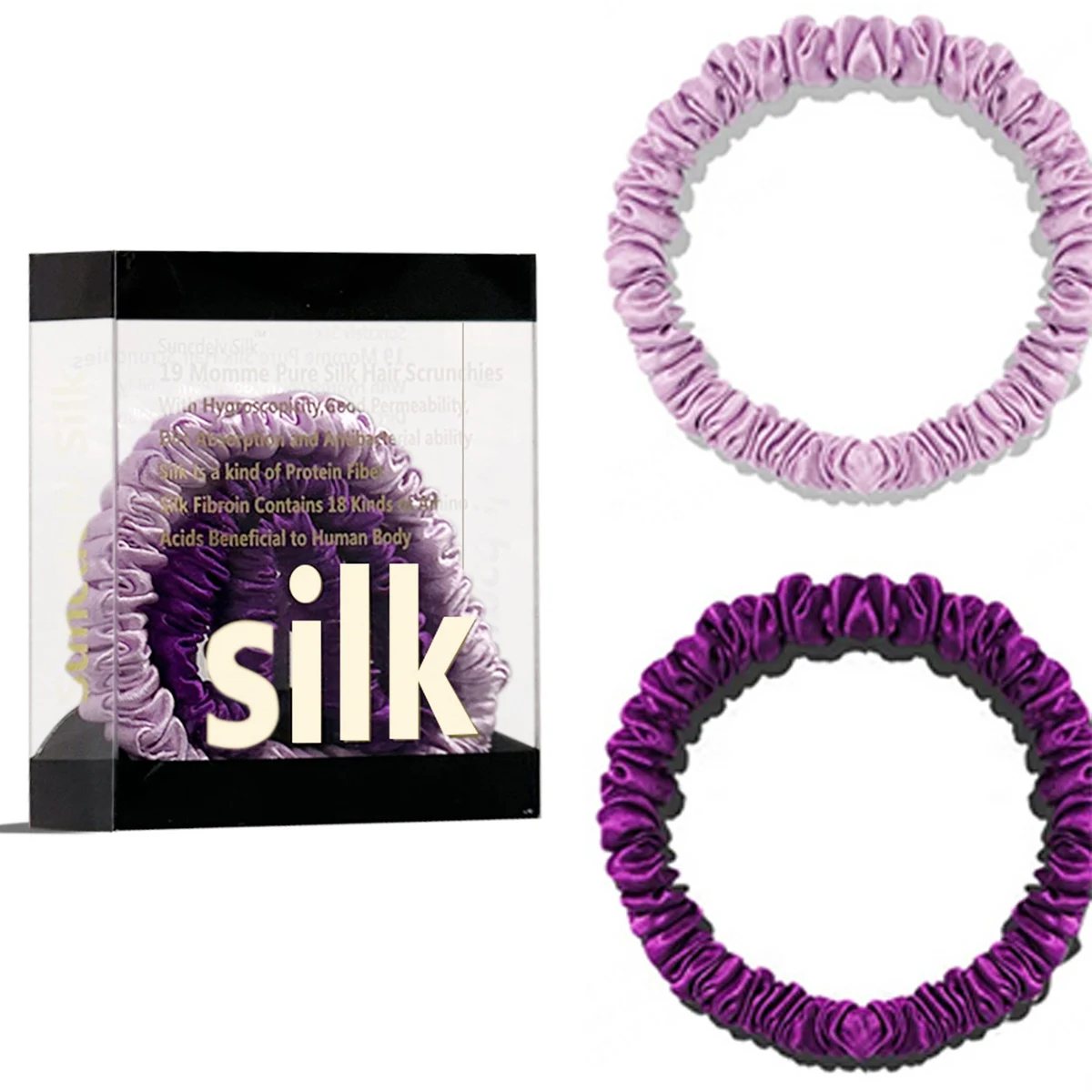 100% Pure Mulberry Silk Hair Scrunchies Silk Hair Ties Hairbands Skinny...