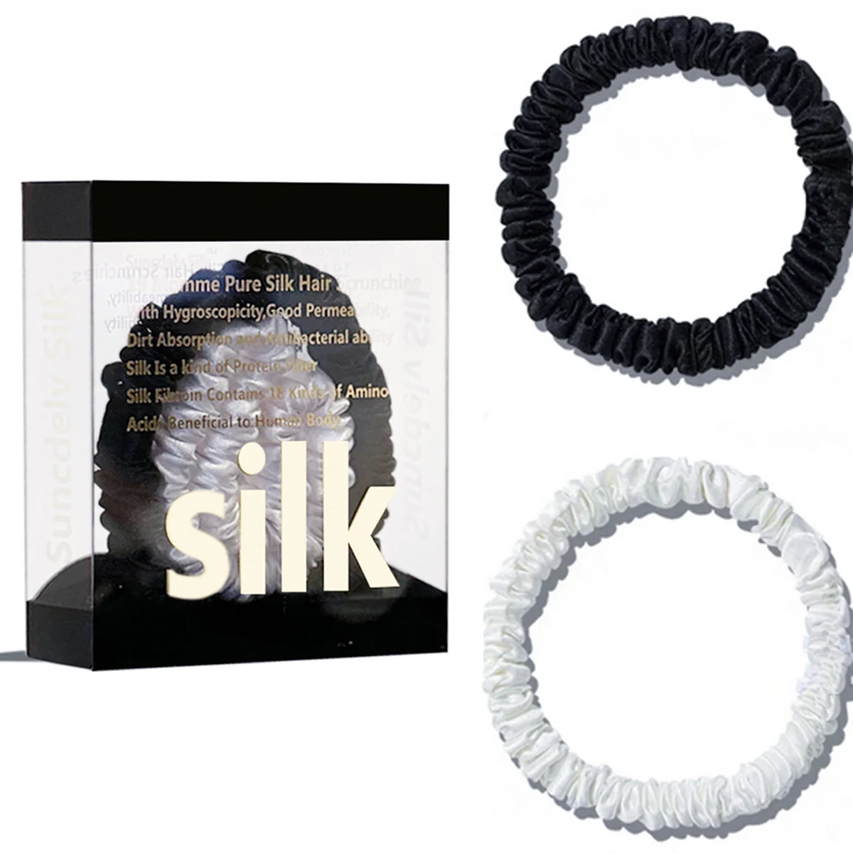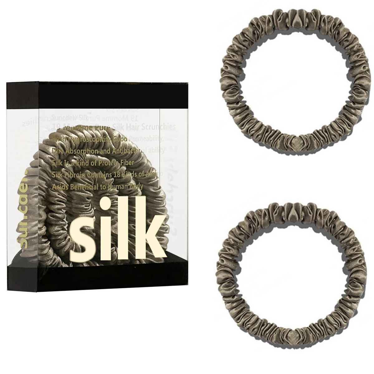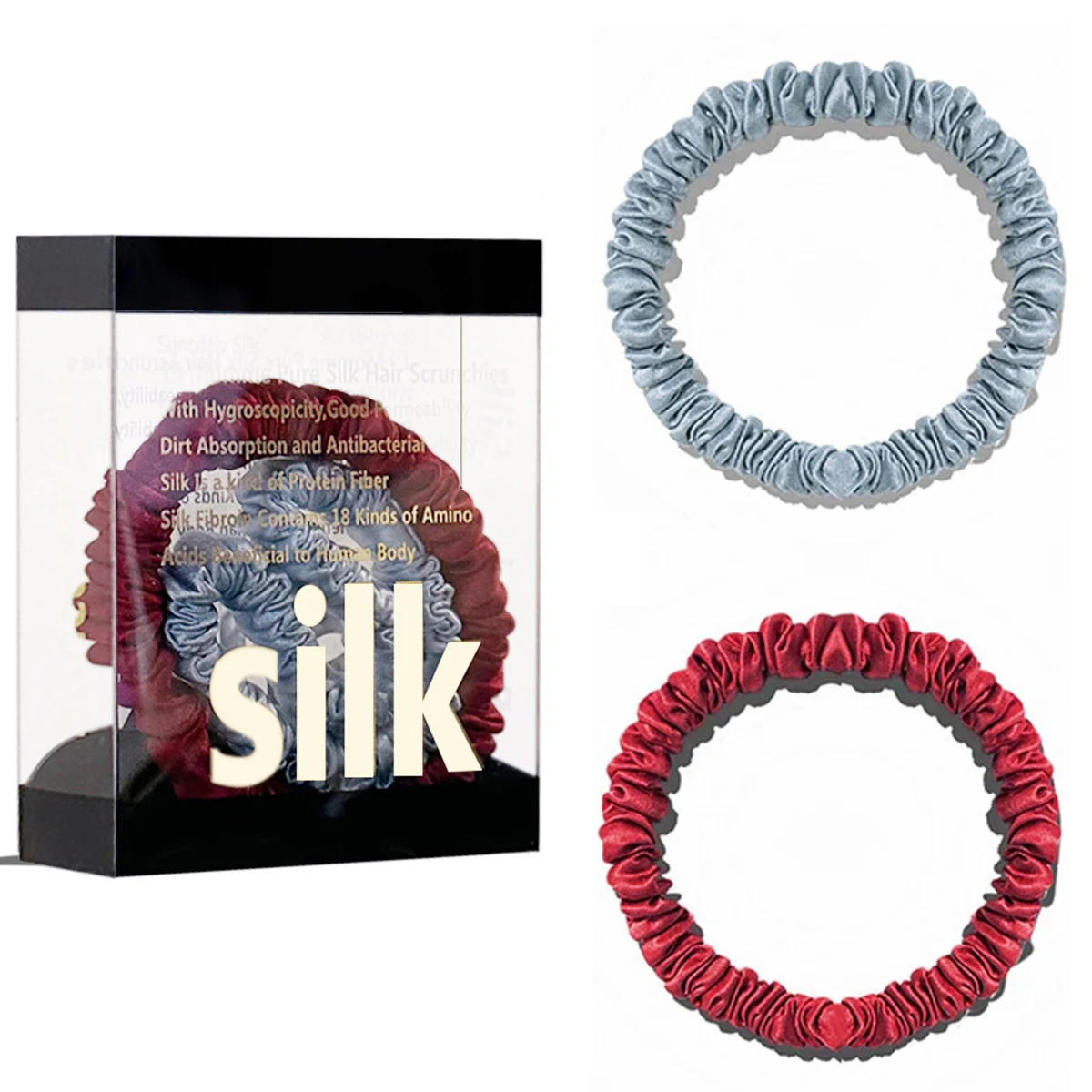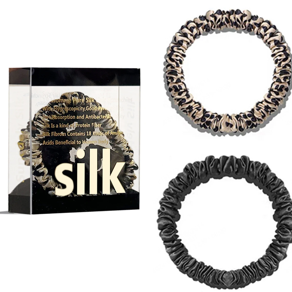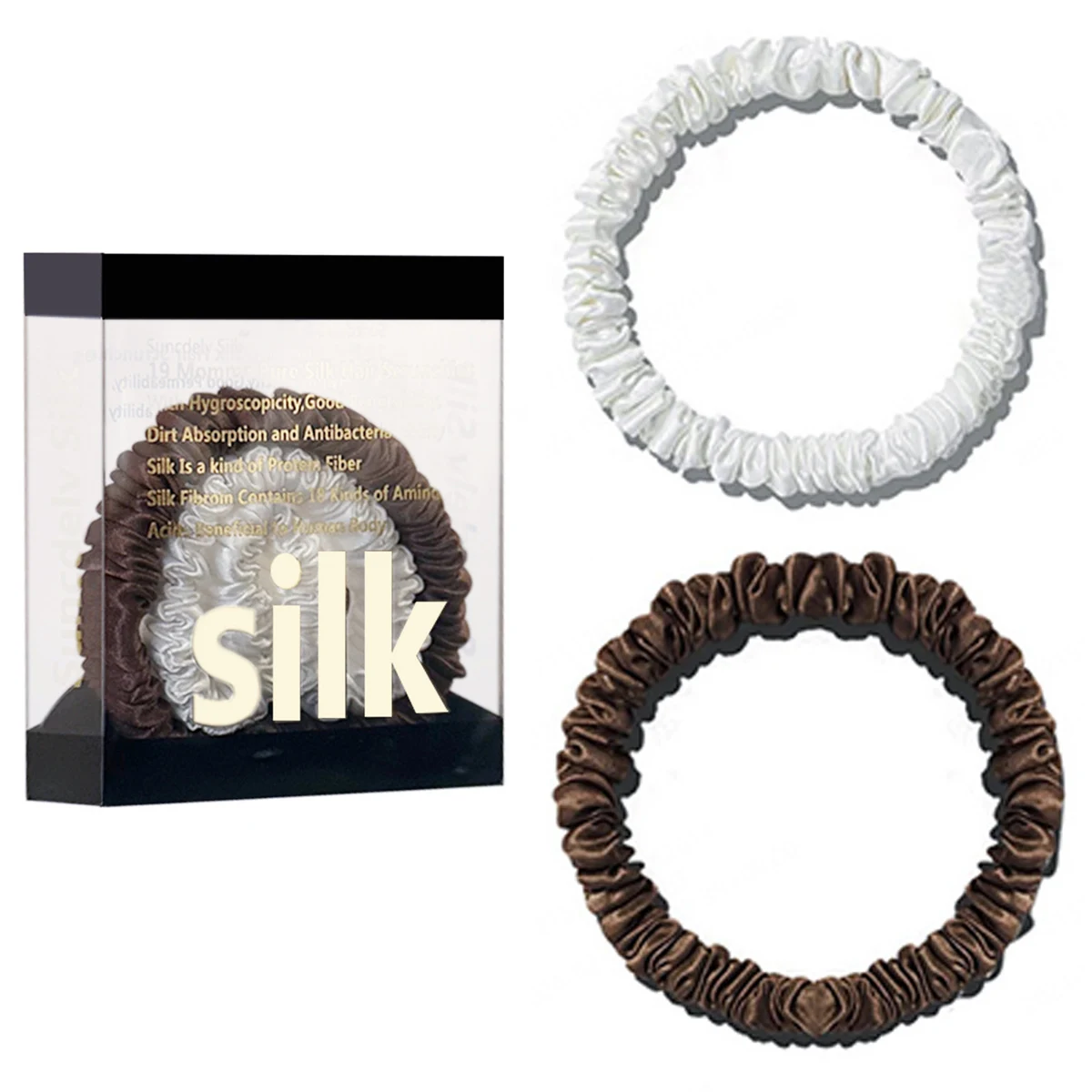 100% Pure Mulberry Silk Hair Scrunchies Silk Hair Ties Hairbands Skinny...