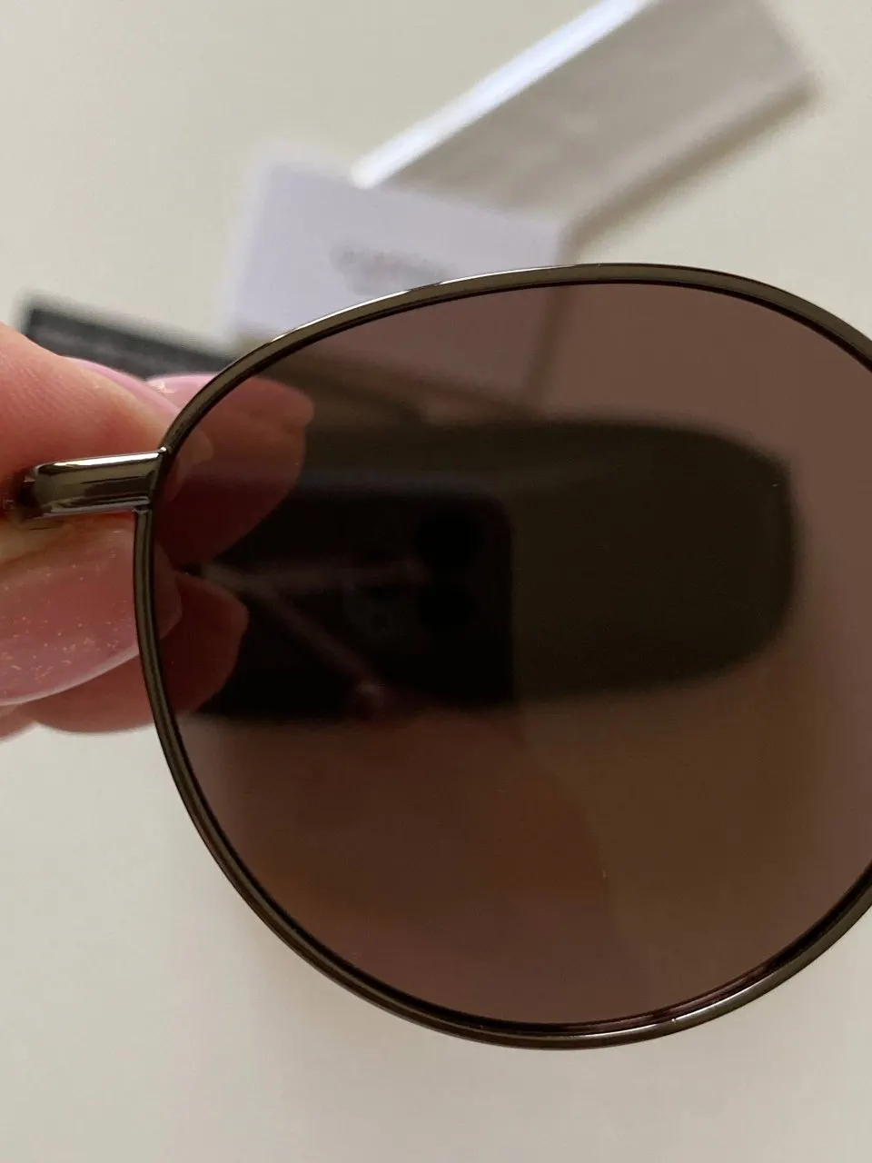 Солнцезащитные очки в тонкой металлической оправе с поляризацией Я выбрала серый цвет оправы, есть ещё в золотом цвете. Это у меня вторые от этого продавца — и такие же отличные 👍 Просто безупречное качество! В комплекте идёт жёсткий брендированный футляр и салфетка с названием бренда. Рекомендую, очки крутые, хочу ещё и в золотой оправе 😍