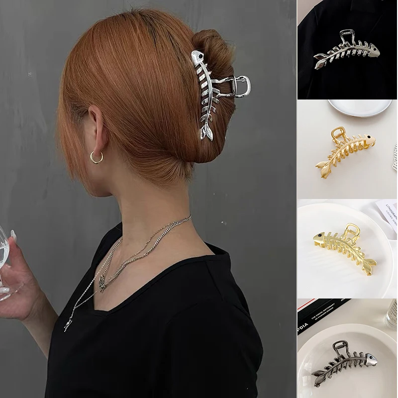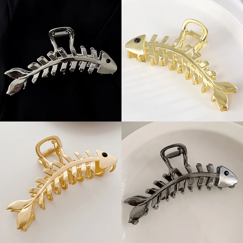 4 Color Fish Bones Design Woman Hair Claws Clips Fashion Metal Large Hairpins...
