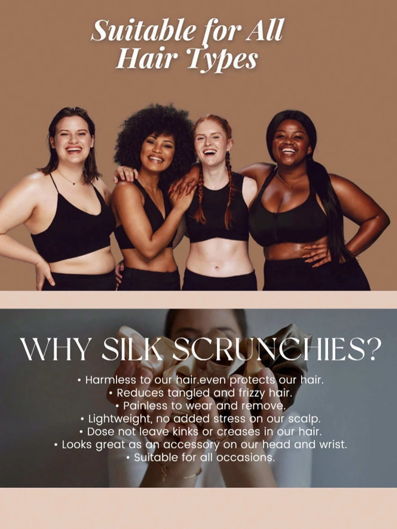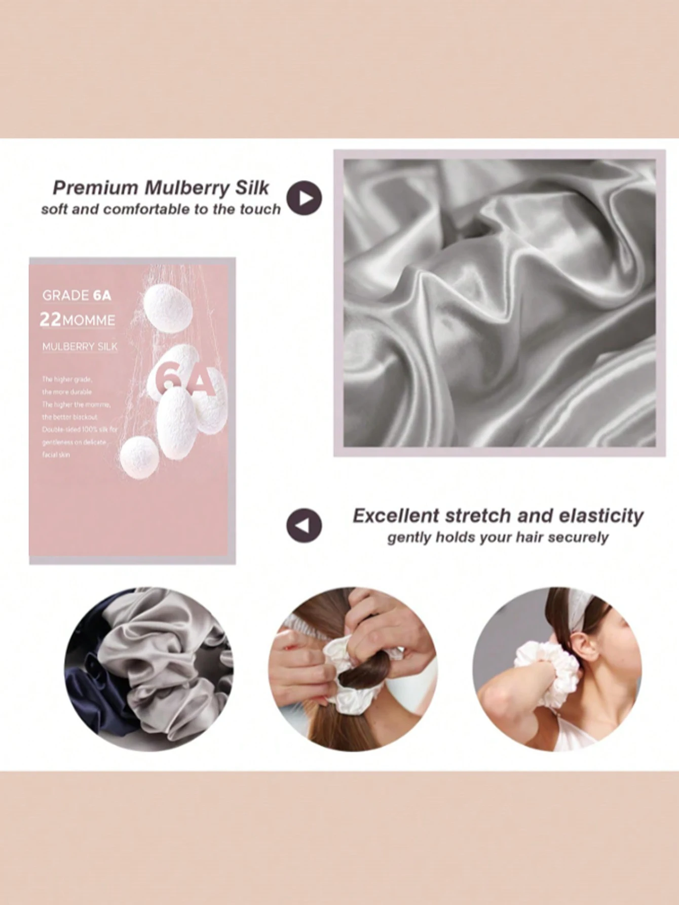 2PCS 100% Mulberry Silk Scrunchies Women Grils Hair Ties for Hair Sleep No...