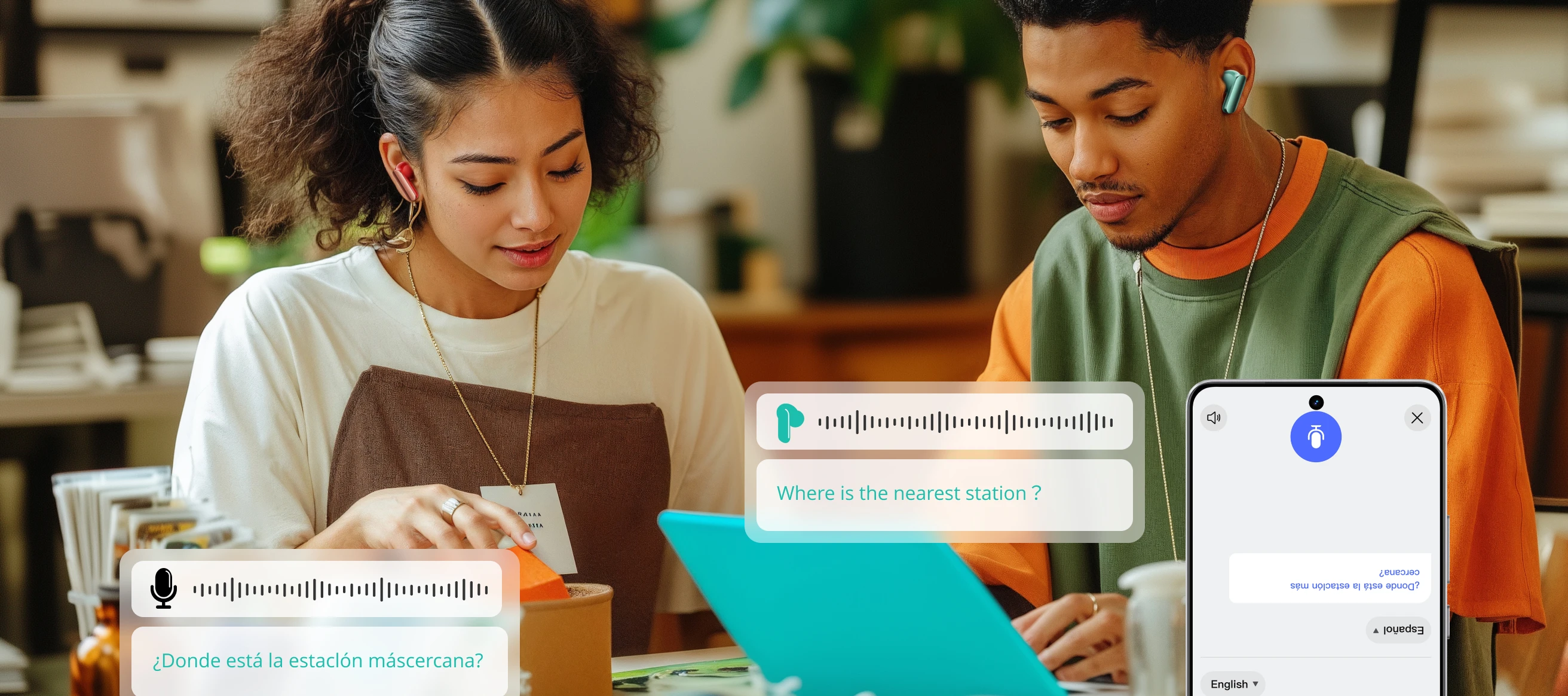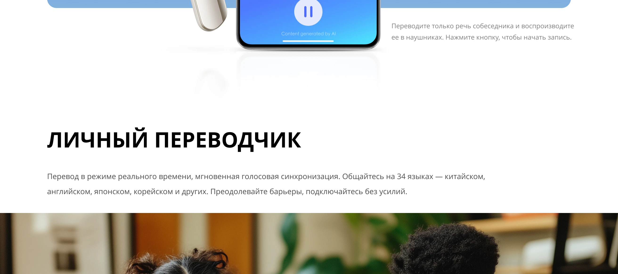 Новый опыт AI: Живой переводчик с искусственным интеллектом; Лицом к лицу; Запрос AI