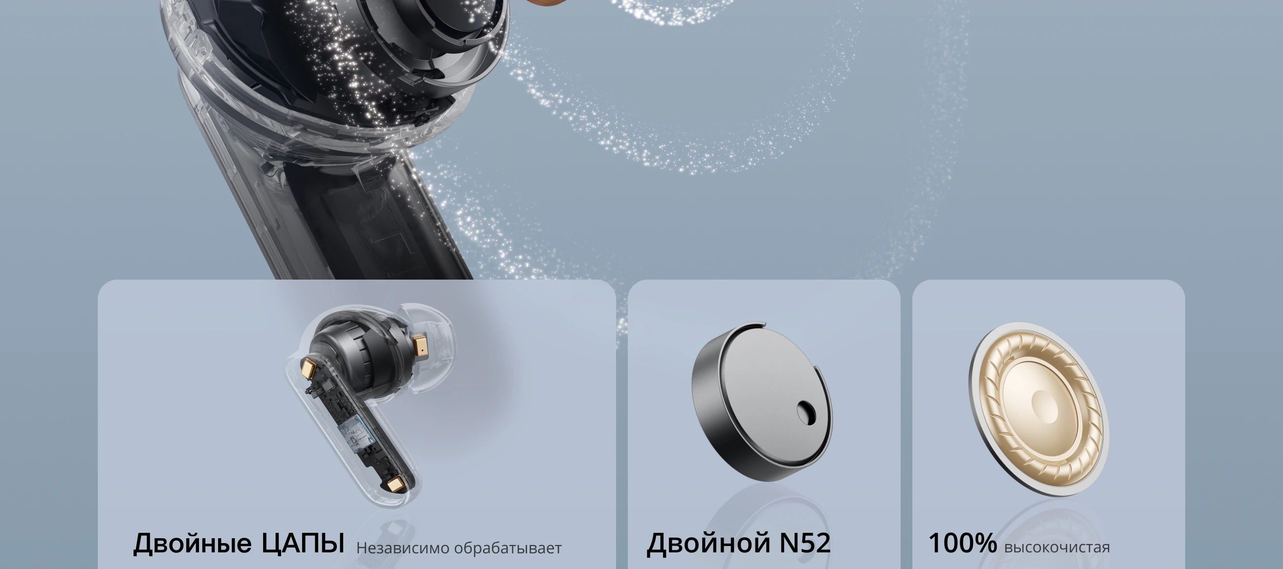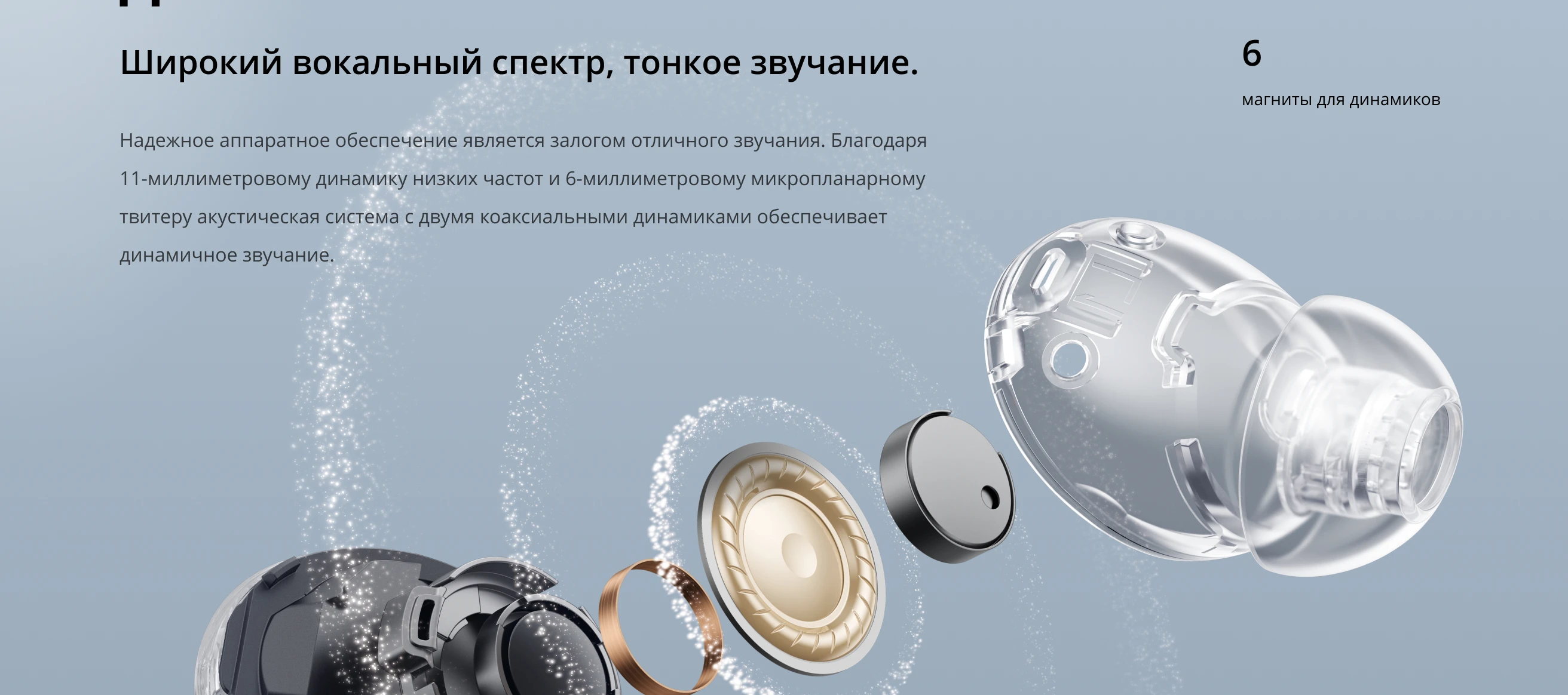 Слуховой опыт: Драйвер двойного давления 11+6 мм, профессиональный сертификат Hi-res/LHDC 5.0, золотой звук, динамический звуковой эффект/пространственный 3D-эффект