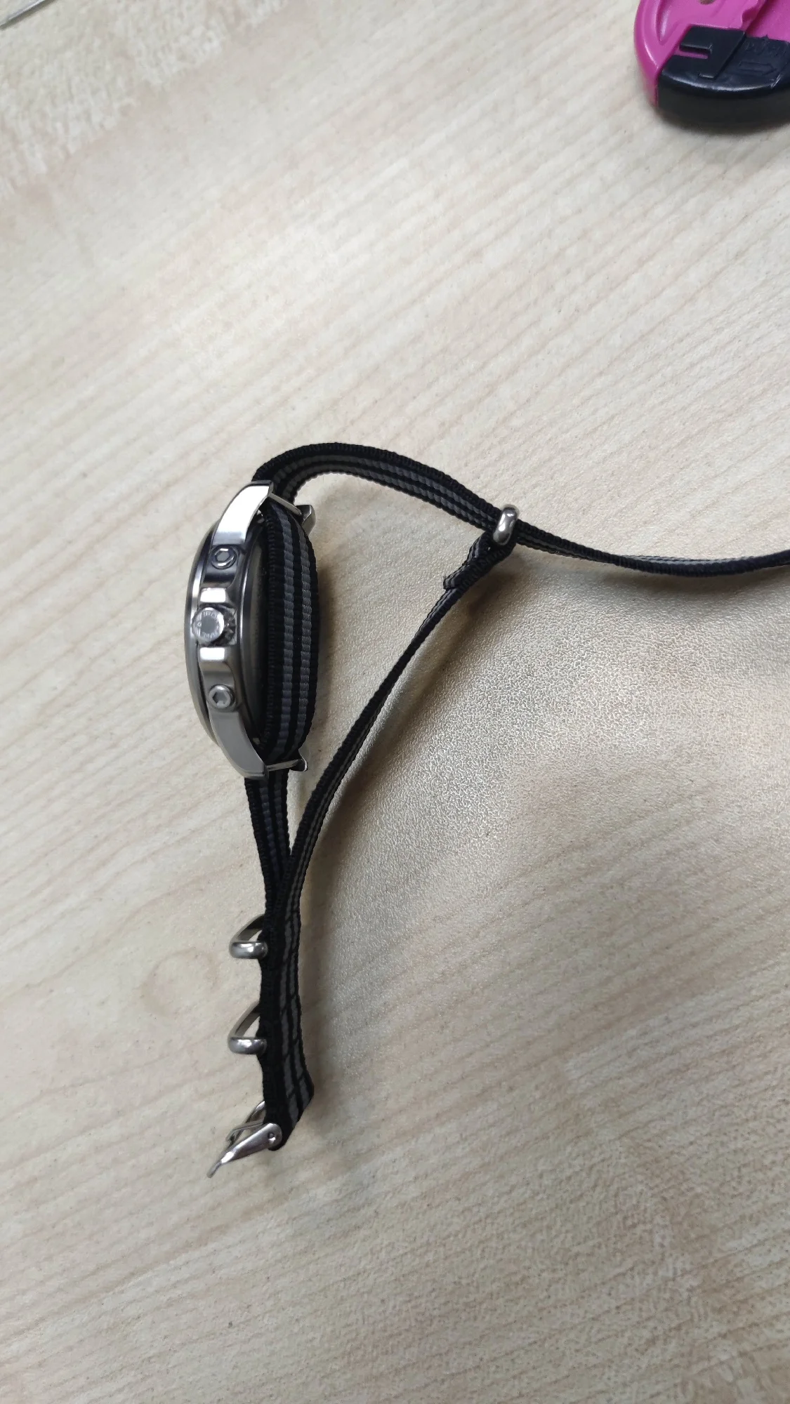 Нормальный ремешок. 26см(27,5 с пряжкой), немного длинный на мою руку (18см). Непонятно зачем дополнительные скобы. Брал, чтобы посмотреть как будут выглядеть мои часы с текстильным ремешком. От кожаного рука потеет. Выглядит приятно. Буду брать дорогой текстильный.Aleksandr N. 28 марта 2025