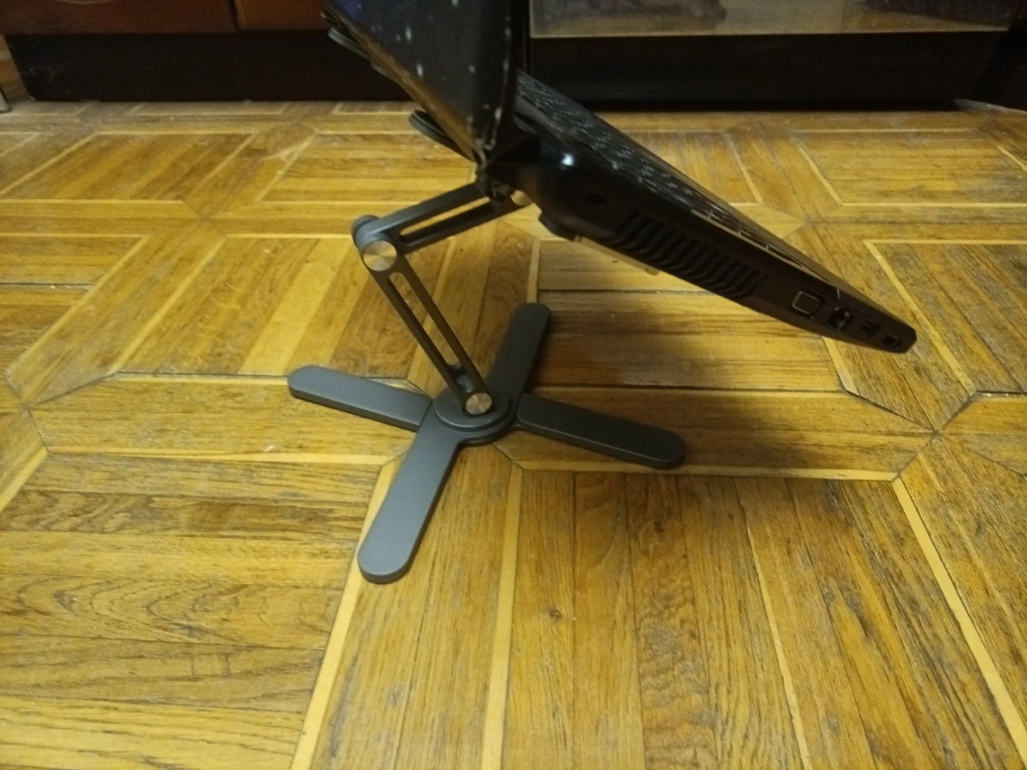 Очень! Очень! Очень хорошая подставка! Даже немолодой тяжёлый ноутбук держит, не складывается. Можно поворачивать на 360 градусов (с приятными щелчками), настраивать высоту. Поставлю дома под домашний ноутбук и закажу ещё одну для походного аппарата. Для планшета прекрасно подходит. Складывается аккуратно в мешок.