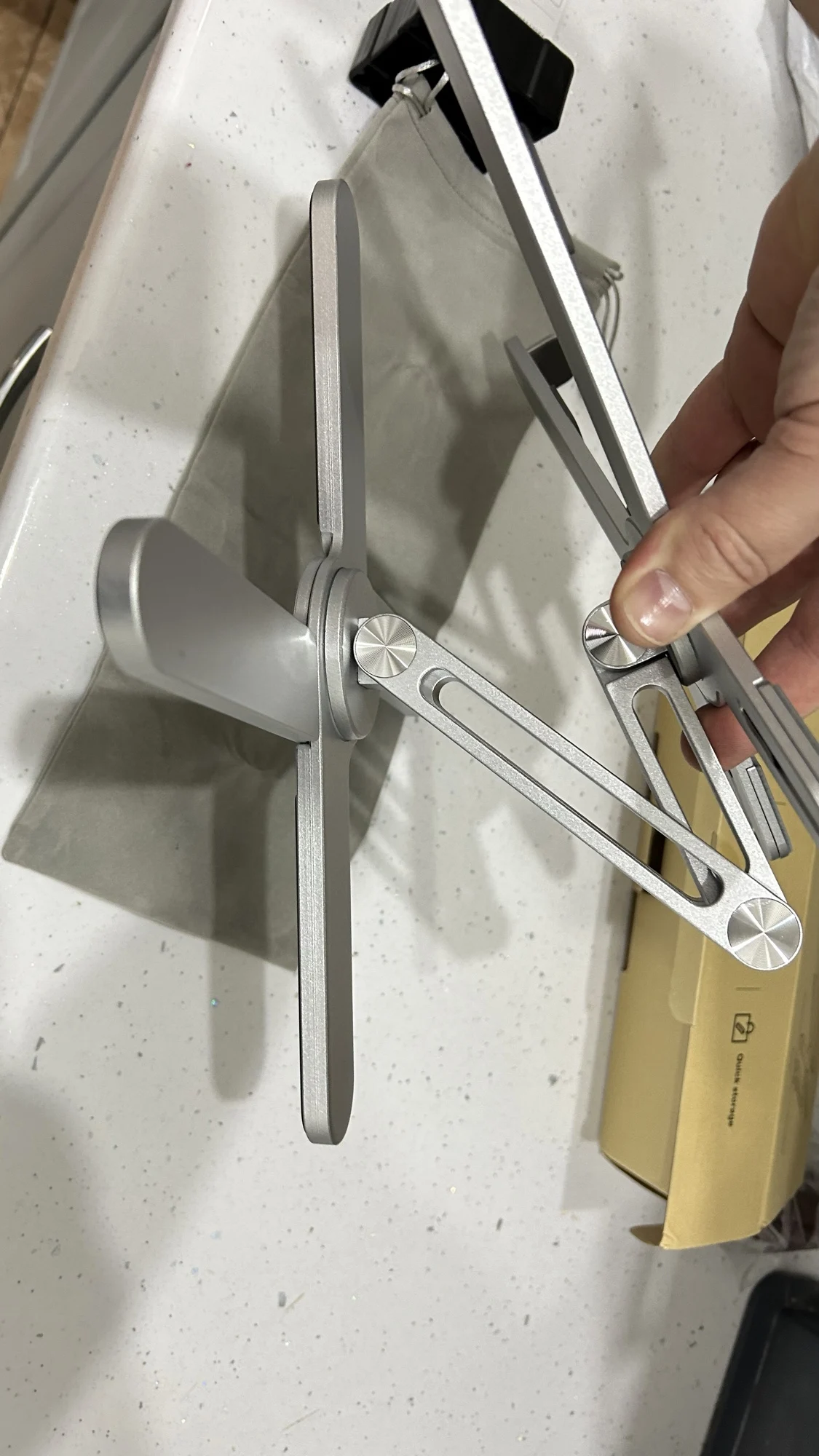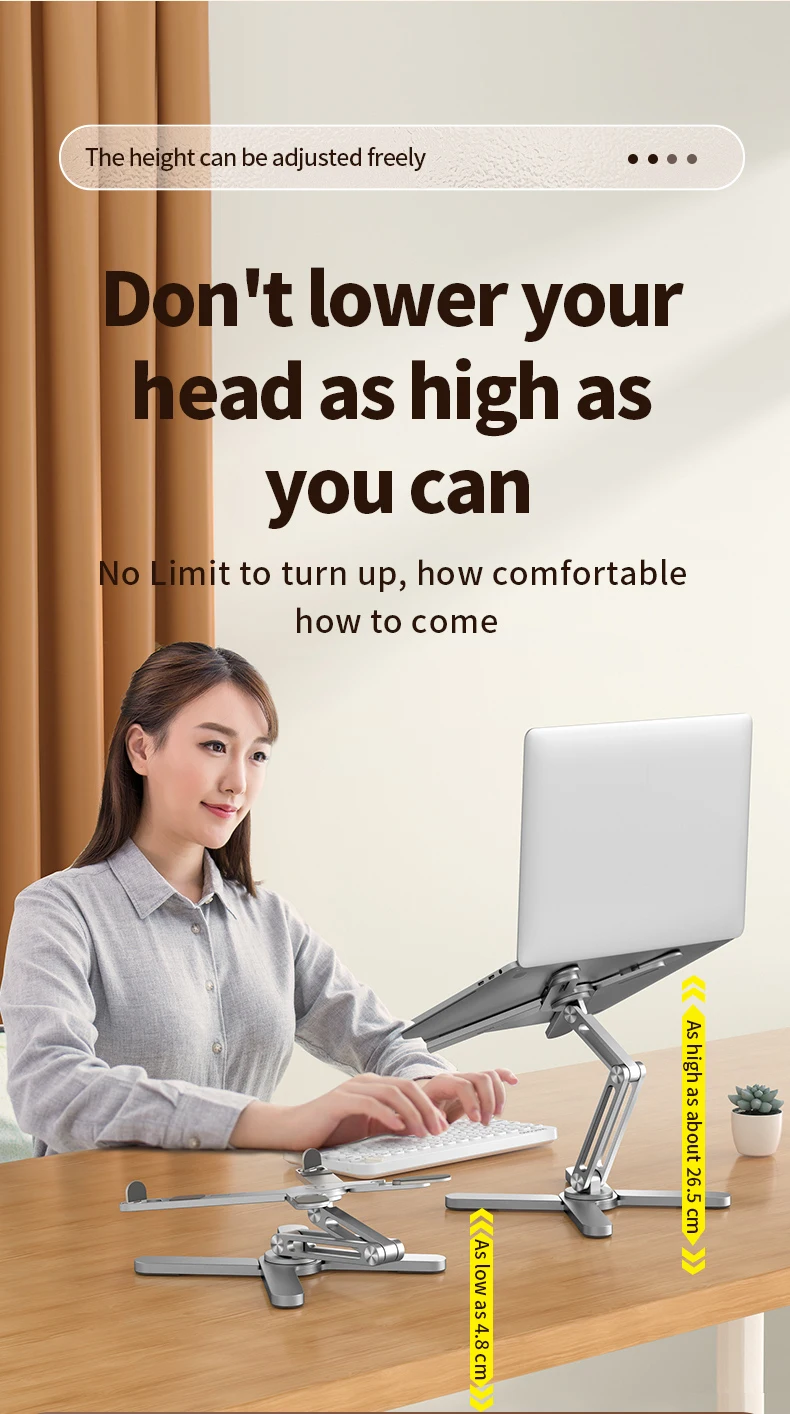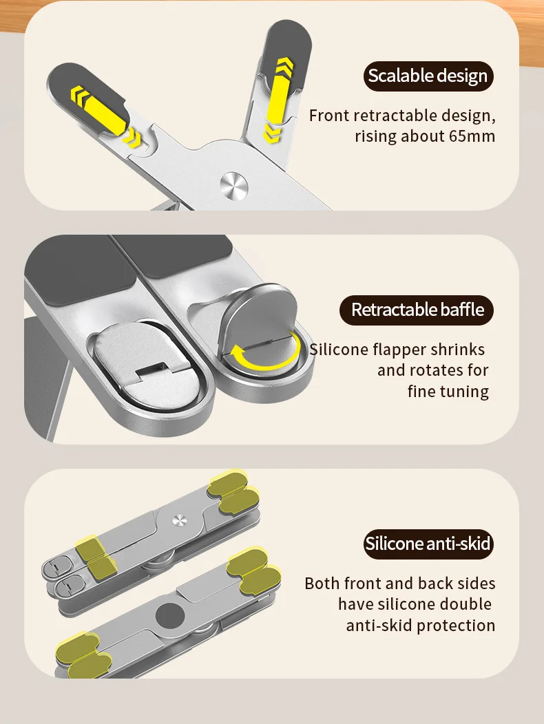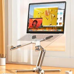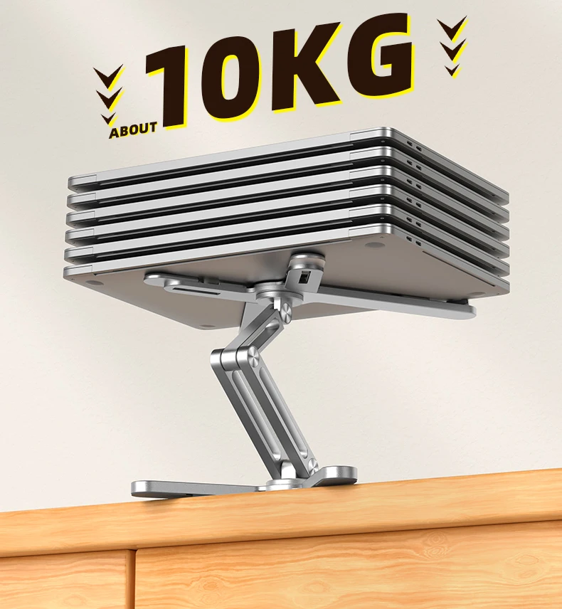 Подъемный держатель стола для ноутбука:Разработанный как подъемный держатель для стола для ноутбука, он обеспечивает надежную фиксацию вашего устройства, предотвращая случайное скольжение или падение.