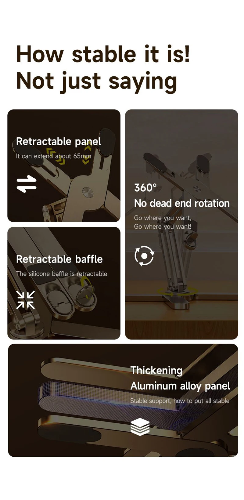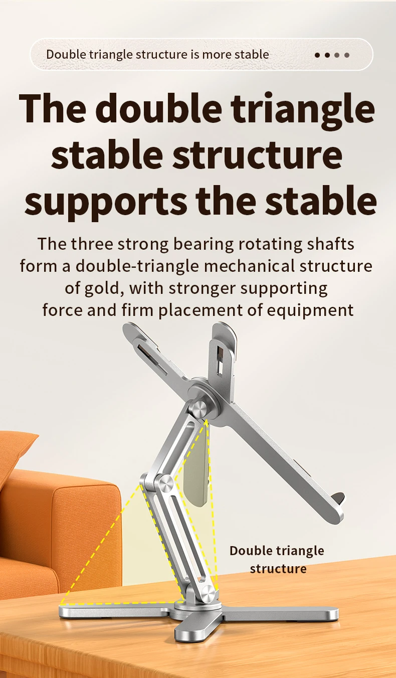 Складная телескопическая Конструкция:Обладая складной телескопической конструкцией, эта подставка может регулироваться на различную высоту, обеспечивая удобные углы обзора для оптимальной эргономики.
