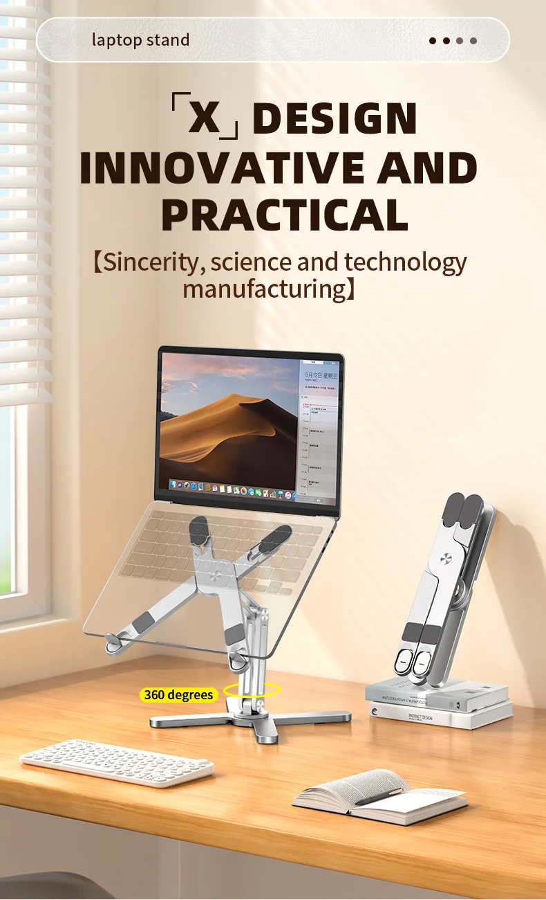 Вращение на 360 °:Подставка предлагает вращение на 360 °, что позволяет регулировать угол наклона ноутбука для универсального просмотра.
