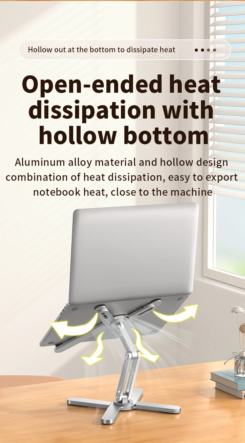 Портативный материал из алюминиевого сплава:Эта подставка для ноутбука, изготовленная из прочного алюминиевого сплава, легкая и удобная для переноски, идеально подходит для использования в дороге.