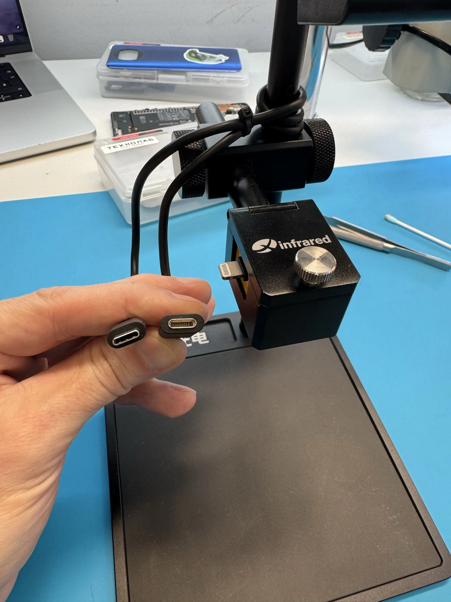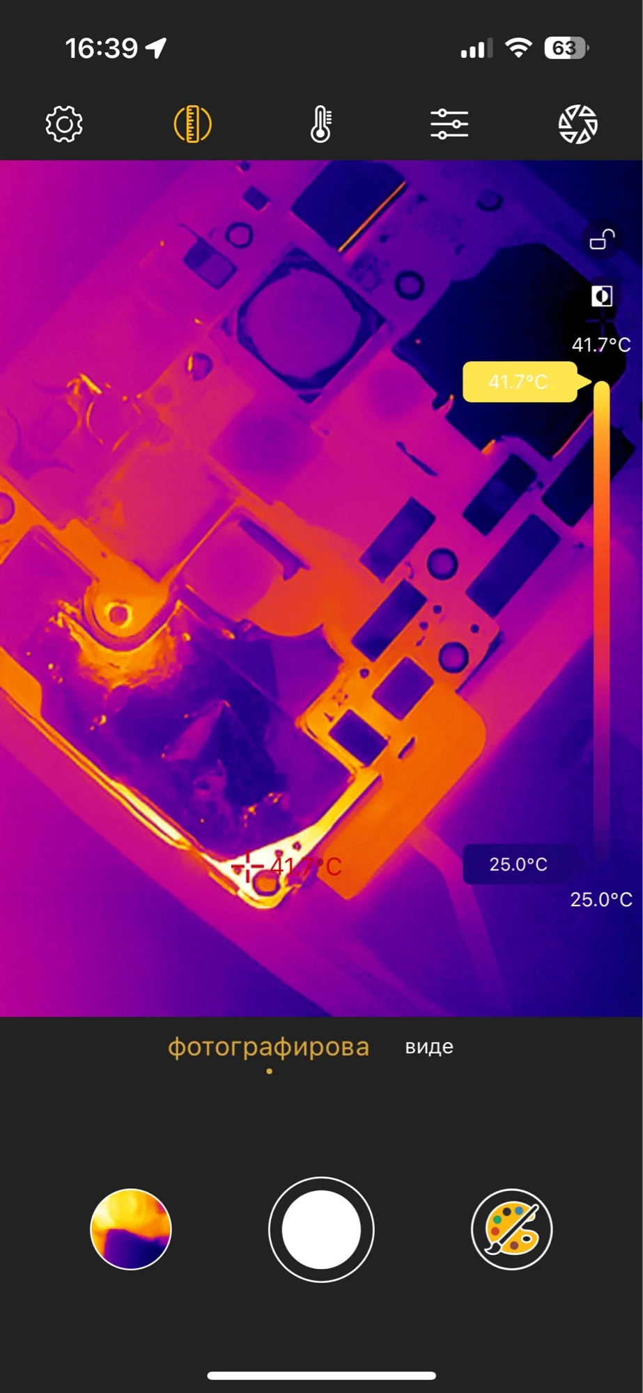 В работе потребовался тепловизор для поиска утечек/КЗ на системных платах iPhone и MacBook. Коллеги по сервису порекомендовали T2SPlus. Изучив продукт понял что не хочу заморачиваться с 3D печатью кронштейна и мне более чем сгодится "комплектный" кронштейн. На всем AliExpress у данного продавца оказалось самое выгодное предложение. В процессе переписки с продавцом, я узнал что если докупить кабель Lightning to Type-C то будет работать на iPhone 15-16 серии. Хотя в чатах по ремонту, меня уверяли ничего не работает. Заказал на свой страх и риск. Все работает! Успел опробовать тепловизор в ремонте. Находит даже утечки в 0.05мА что отличный результат. Данный тепловизор можно использовать не только в ремонте электронники но и в других сферах. В настройках приложения можно переключать режим работы от -20 до 120 градусов. И от 120 до 450 градусов. Думаю применение ему найдутся. Важный момент для тех кто хочет использовать не с Apple, выбирайте версию с USB-C разъемом. Он будет работать на Android и на Windows. На 4pda по данному тепловизору и не только по нему, есть обширная тема, с программами для Windows и кучей разных доработок. Вариант тепловизора с разъемом lightning работает только на iPhone. Так как имеет другую внутреннюю прошивку, а не только разъем. На MacBook с ARM процессорами на которые можно установить программы от iPhone не работает, проверено лично. Продавцу отдельное спасибо за кучу уточнений и корректировок заказа. Сработал просто на 100 баллов. Что в последнее время уже стало редкостью. Кто планирует покупку, рекомендую данного продавца. Приложу несколько фоточек как выглядит сетап.