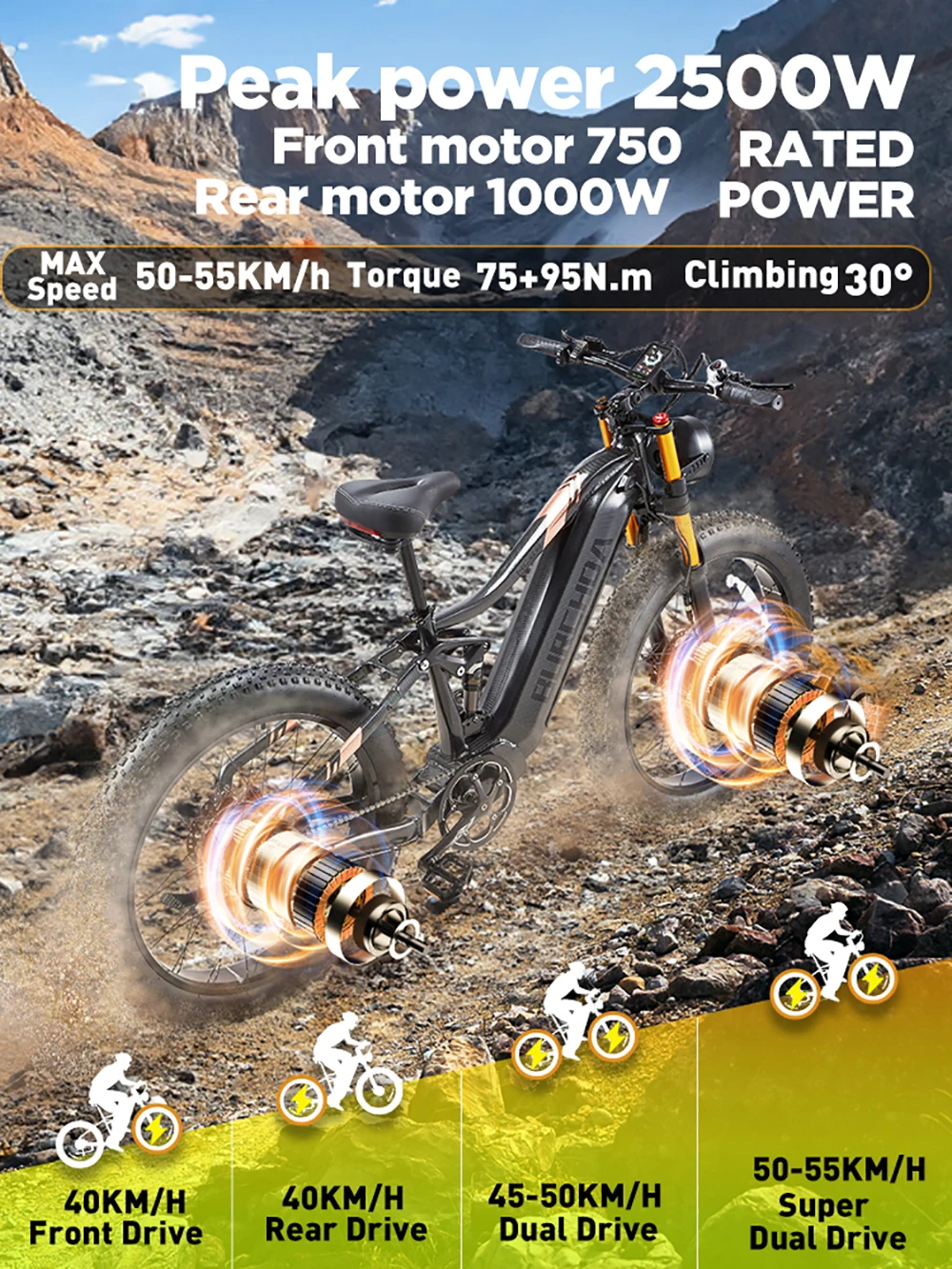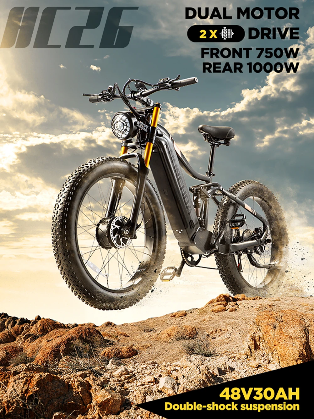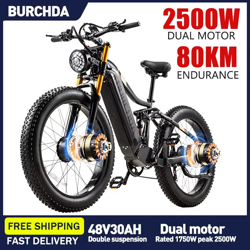 BURCHDA HC26 2500 Вт двухмоторный электровелосипед 48В для взрослых