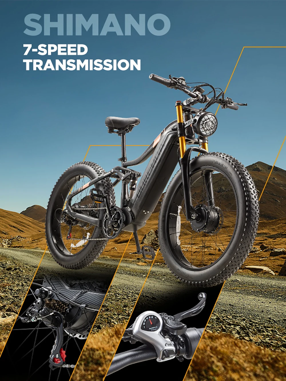 НАДЕЖНАЯ СИСТЕМА ГАЛЬМА Этот электронный велосипед BURCHDA оснащен высококачественными гидравлическими тормозами и 7-скоростной системой Shimano, что позволяет легко выбирать различные скорости для любого типа дороги.