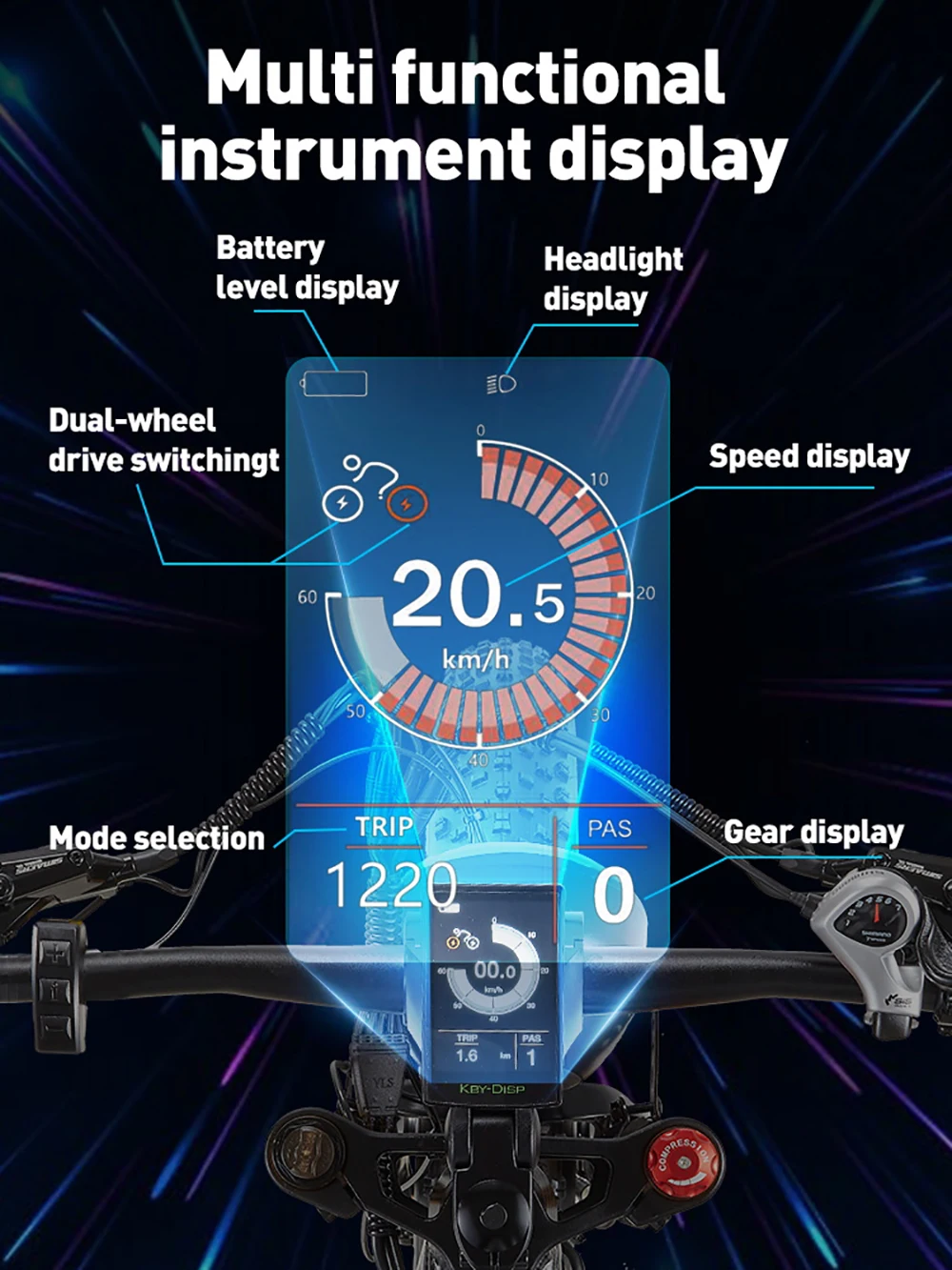 Умный ЖК-дисплей Этот горный электронный велосипед оснащен высококачественным цветным ЖК-дисплеем,