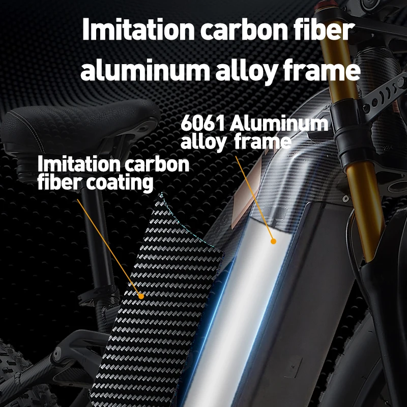 5. Рама из высокопрочного алюминиевого сплава покрыта слоем покрытия имитацией углеродного волокна, которое лучше защищает раму от ржавчины и в то же время является более доминирующим!