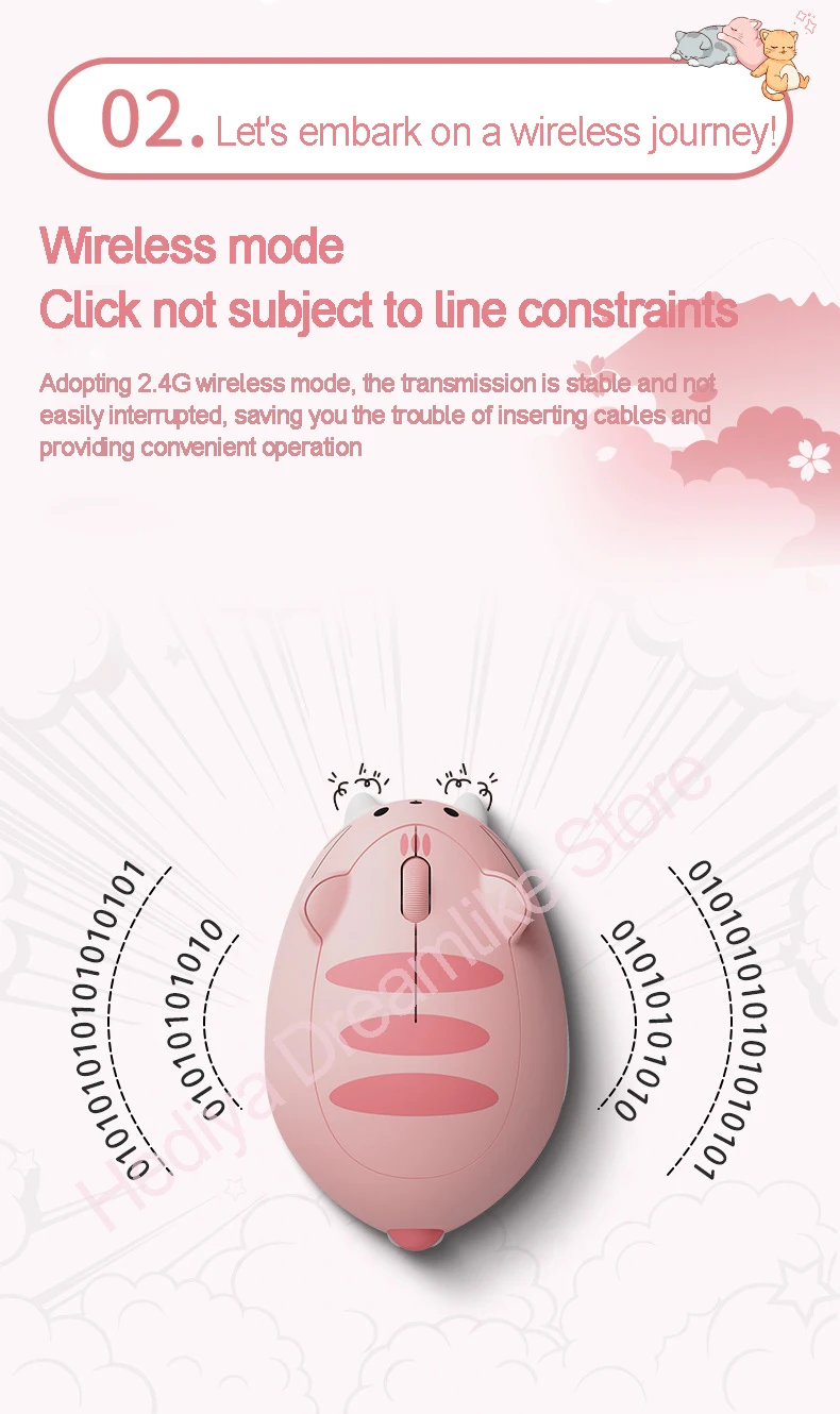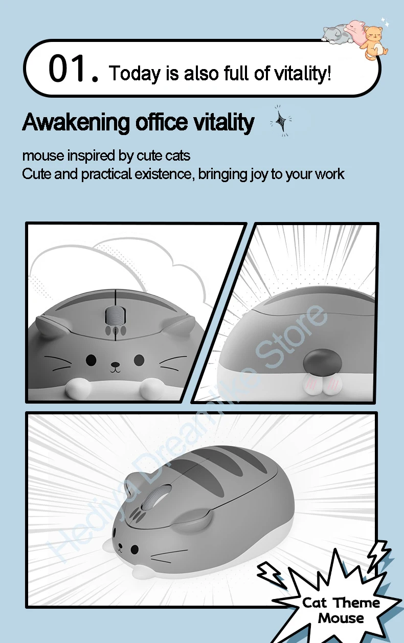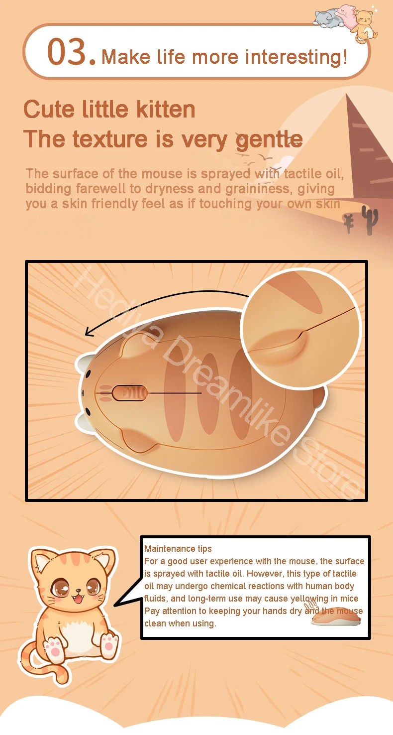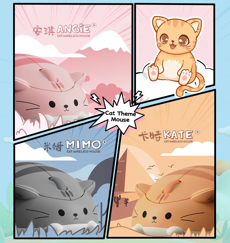 Беспроводная эргономичная оптическая мышь с котенком, 2,4 ГГц, 1200 DPI
