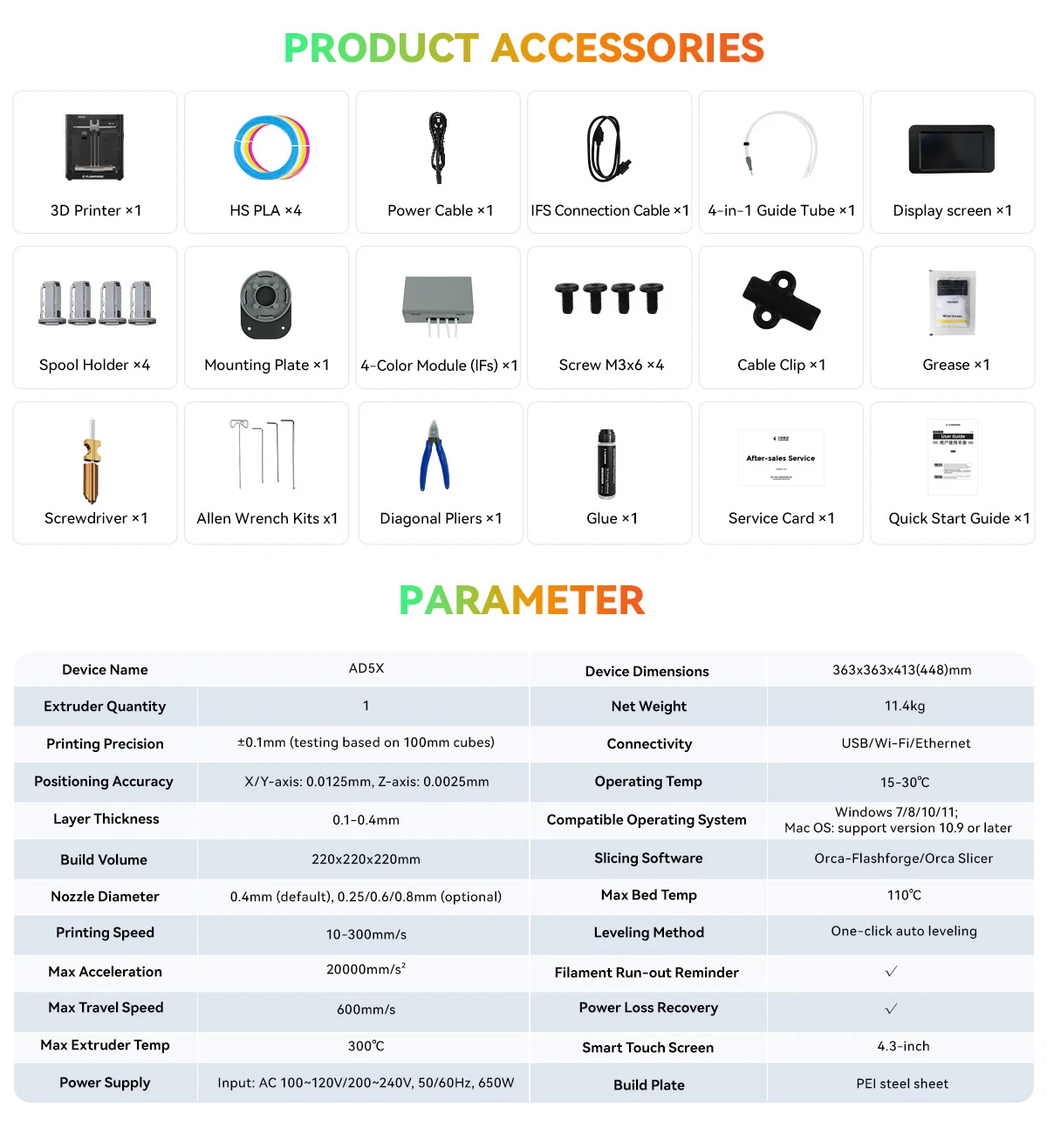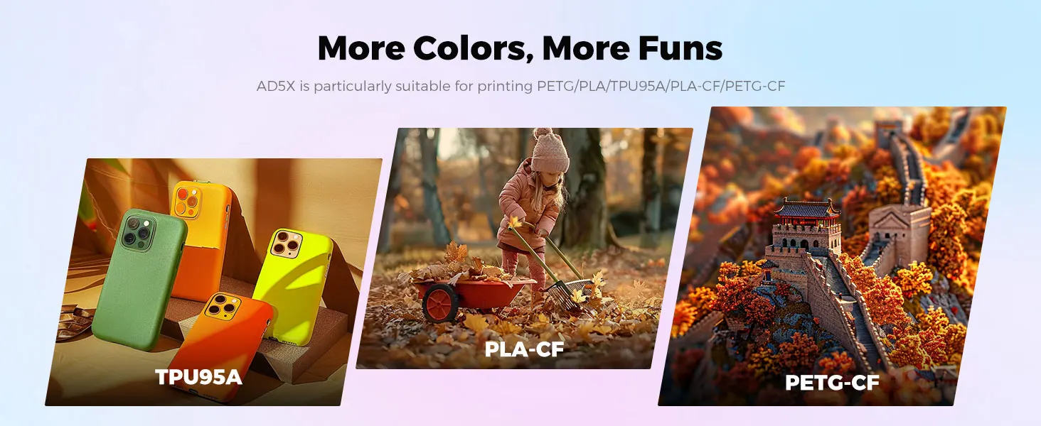 - Fliament:PLA/ABS/PETG/TPU/PLA-CF/PETG-CF