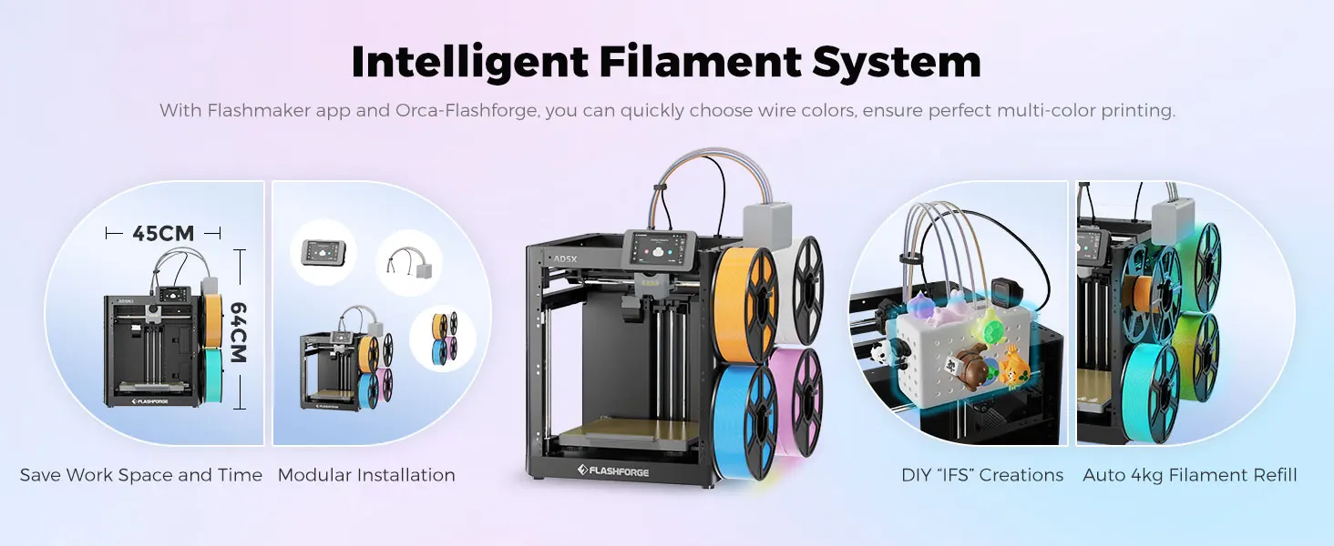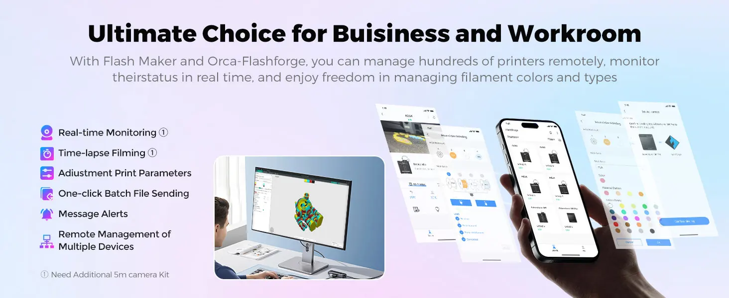 С помощью Flash Maker и Orca-Flashforge вы можете удаленно управлять сотнями принтеров, отслеживать их состояние в режиме реального времени и наслаждаться свободой в управлении цветами и типами нитей.