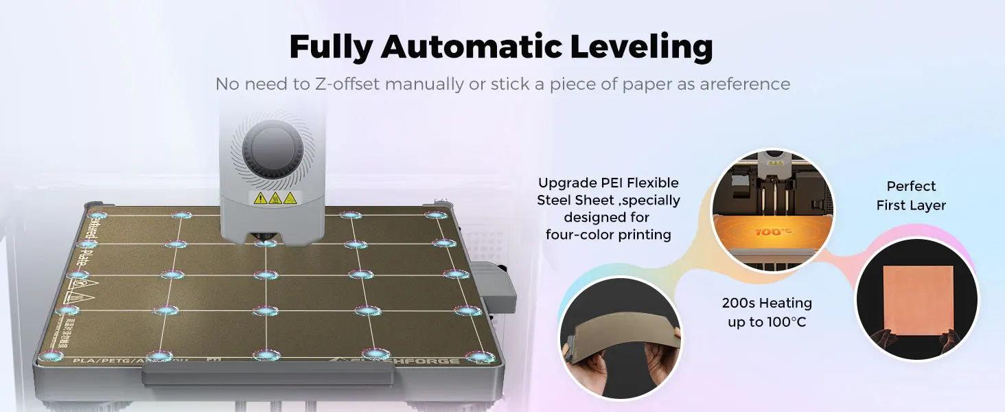 - Обновление гибкого стального листа PEI, специально разработанного для четырехцветной печати.