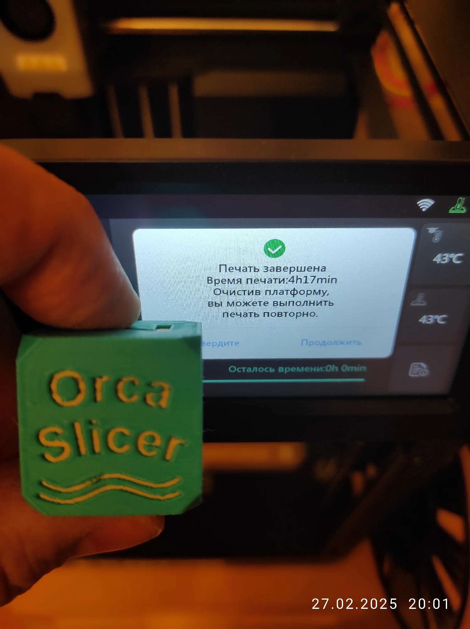 Получил 24 февраля. Собрал. Запустил калибровку. Запустил печать с встроенной флешки. Работает. Шумный. Громко щёлкает по несколько раз при смене цвета. Цвет меняется полторы минуты, так что время цветной печати увеличивается в разы, если смена есть в каждом слое, плюс чудовищный перерасход пластика. К этому ещё предстоит приноровиться. Субъективно, качество хуже, чем на AD5M, но возможно, стоит просто подтянуть ремни. Со всеми купонами обошёлся в 35600р., спасибо Flash Forge ! Это мой второй ФФ, не считая тех, что на работе стоят. Имел дело с разными принтерами, AD5M - любимый, посмотрим, как сложится с AD5X. Доволен ли я покупкой? - Безумно, хоть и ждал доставку с 17 декабря и спор открывал и валидол пил. Полезно? Тогда с вас 👍👍👍Ruslan Borisovich A. 27 февраля 2025