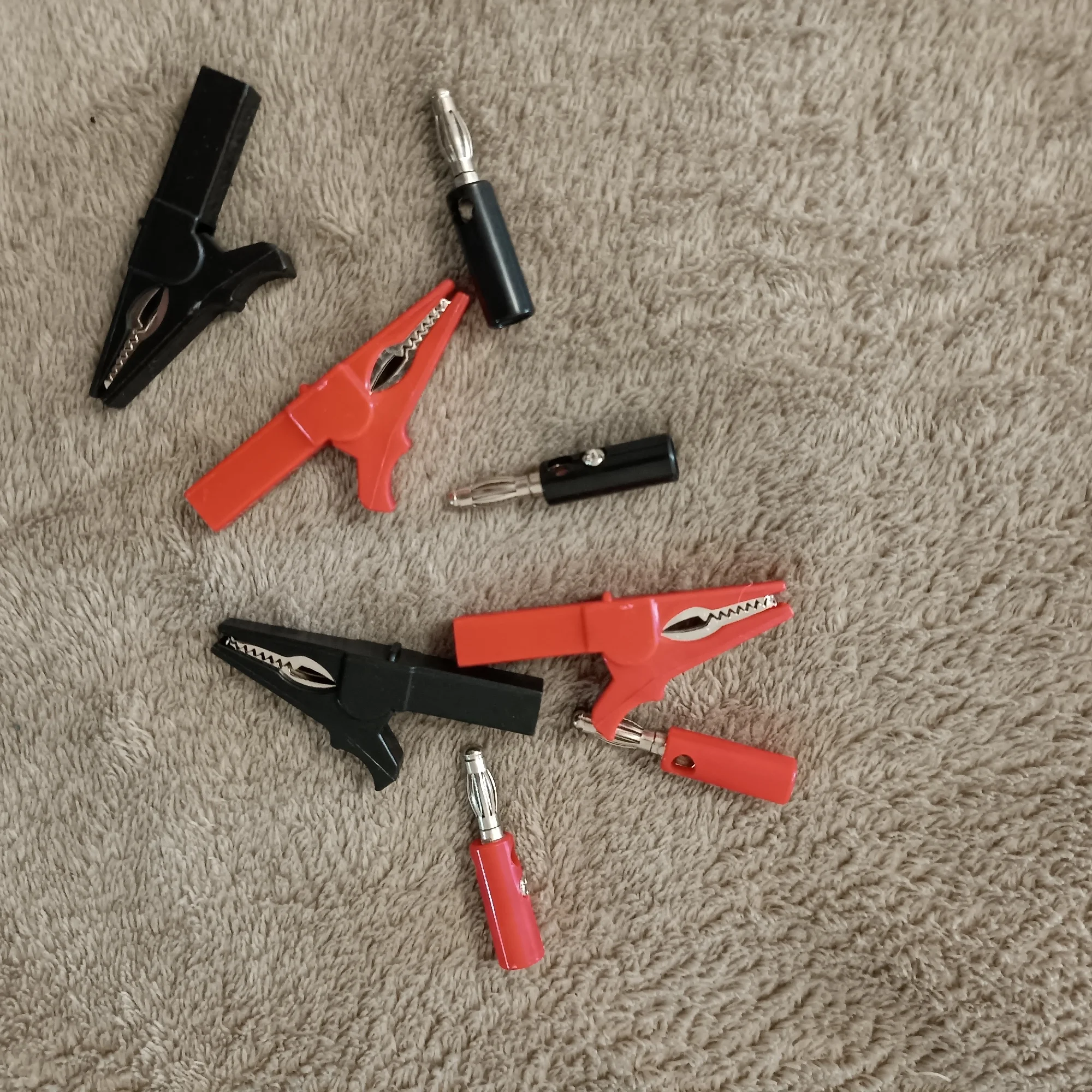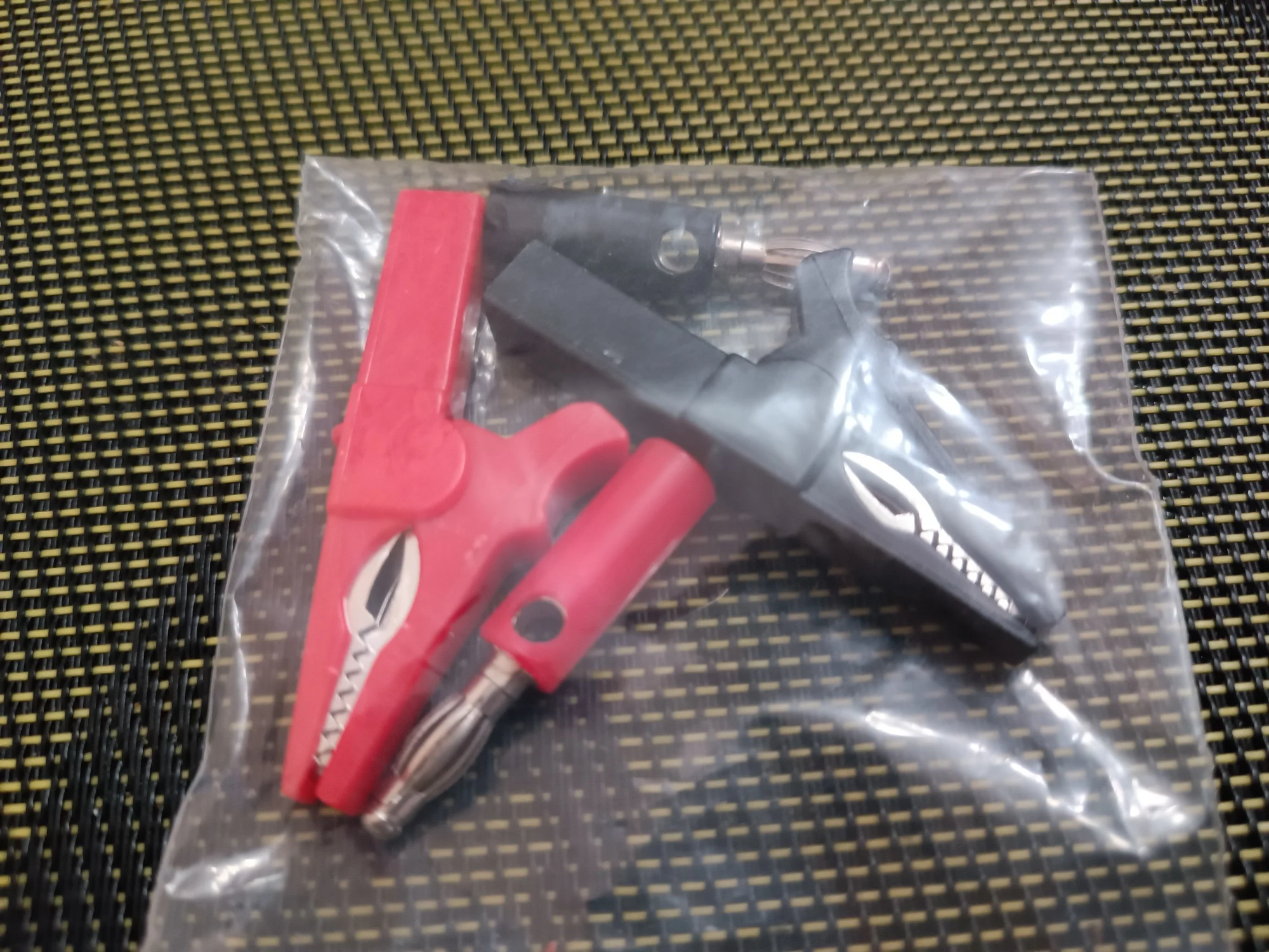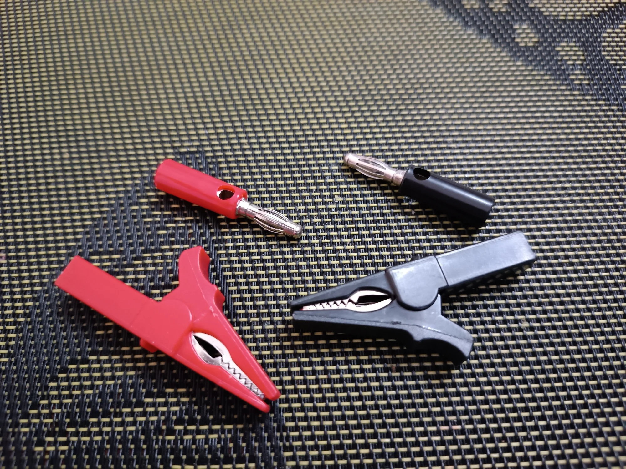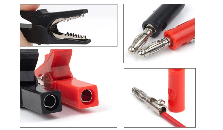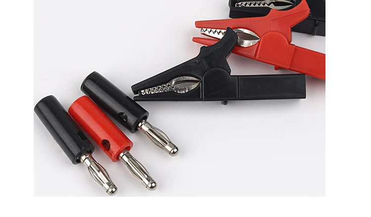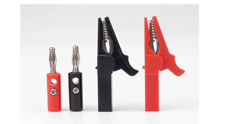 1 Set includes: 1 red crocodile clip, 1 red banana plug, 1 black crocodile clip, 1 black banana plug