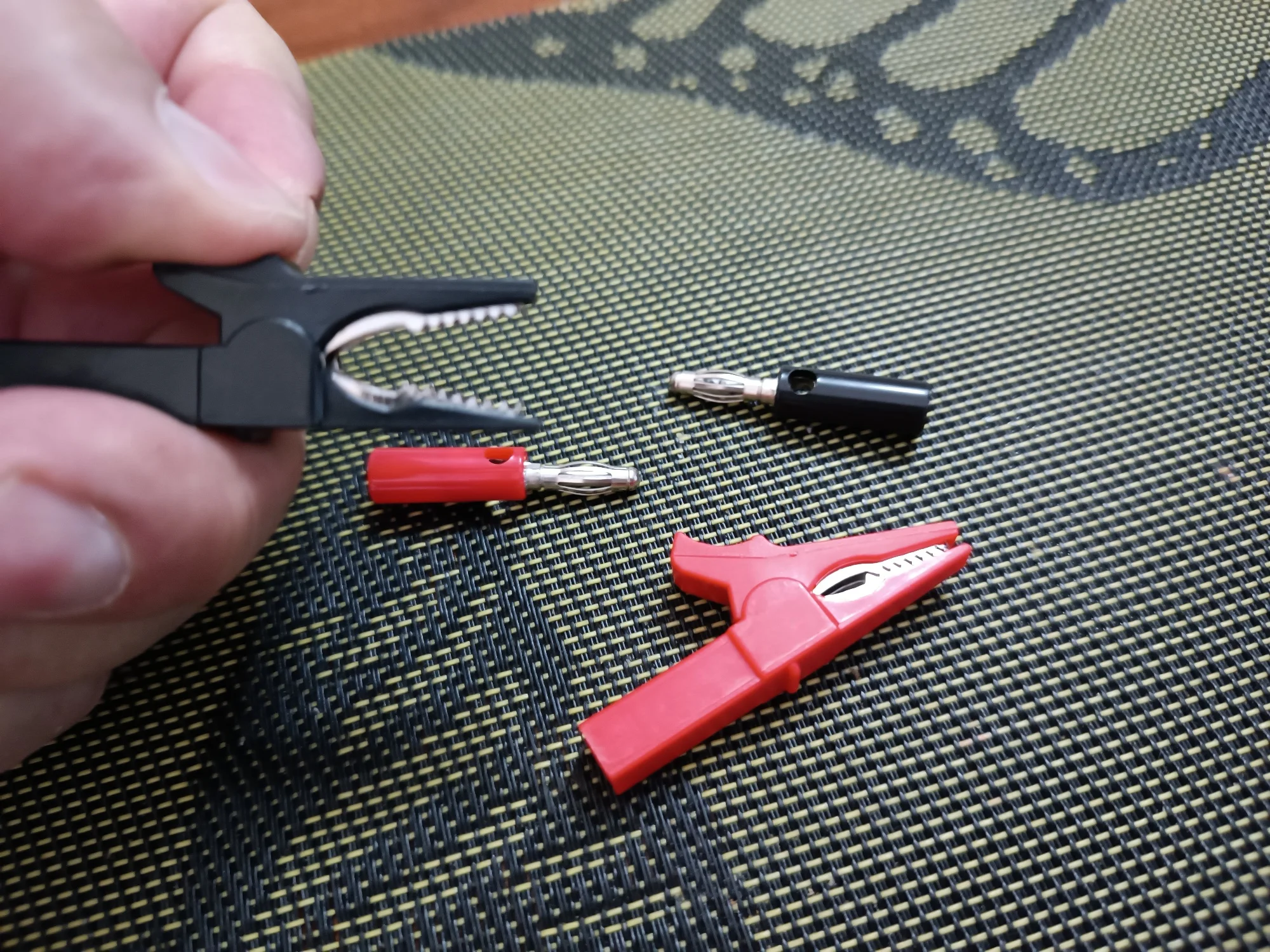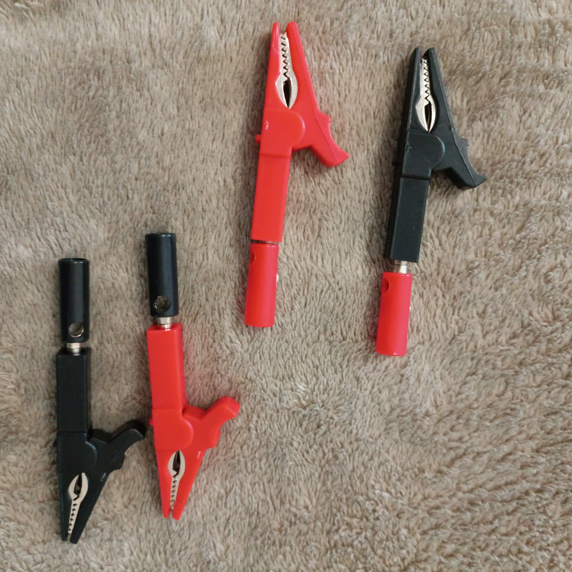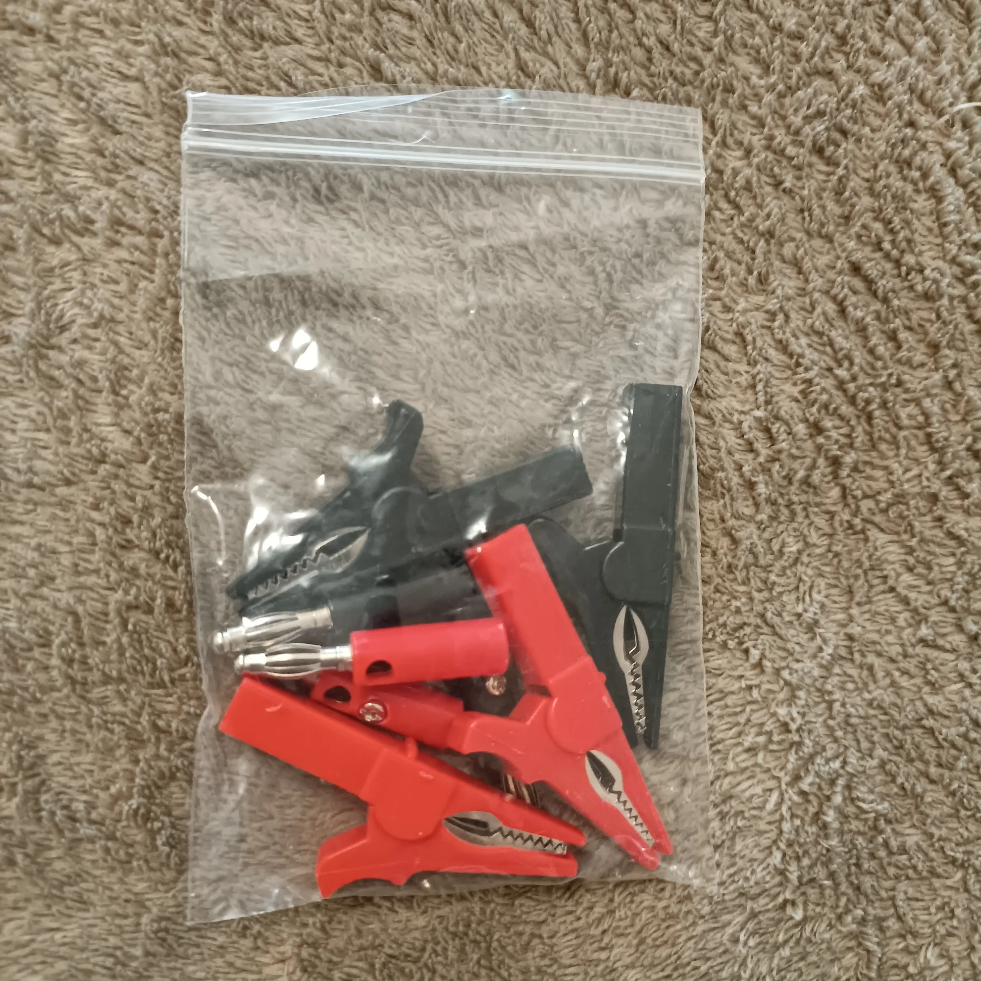 1 Set includes: 1 red crocodile clip, 1 red banana plug, 1 black crocodile clip, 1 black banana plug