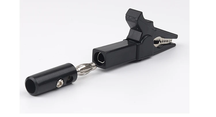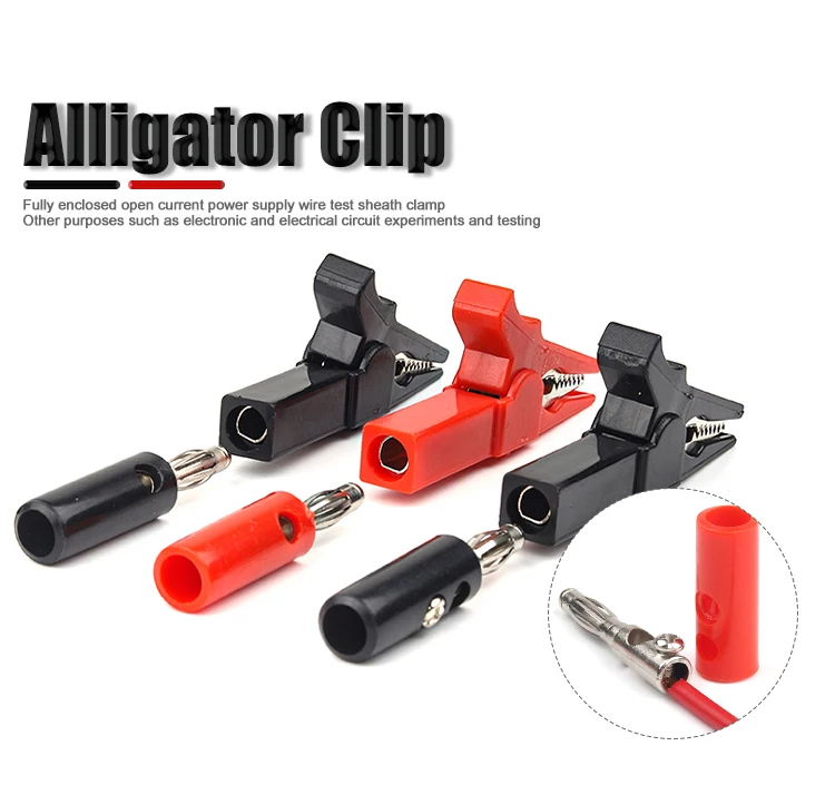 Insulation alligator clip set is designed to hold all kinds of wire with an opening up to 10-15mm. The alligator clip's tooth part is made of ABS plastic while the lower teeth are made of nickel-plated brass conductors. The tail of the clip is a 4 mm socket, which can only be inserted into a 4mm banana plug and cannot be welded.