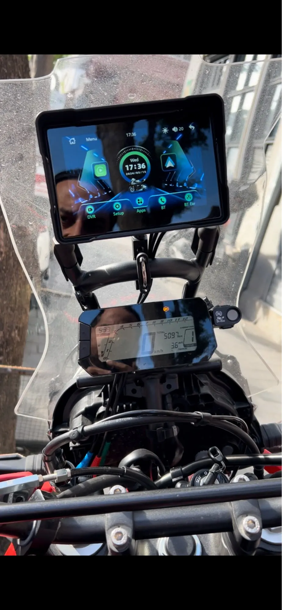 Привет, все. Когда разница стала меньше, мы заказали версию с камерой. Я не ожидал многого от его камеры, но это меня удивило. Широкий угол обзора и очень четкое качество изображения. Я не могу смотреть запись, потому что я еще не установил SD-карту. Продукт пришел сегодня, и мы сделали сборку, это было очень просто. Соединение очень простое, и после сопряжения он очень быстро и легко подключается к вашему телефону. Скорость реакции экрана также находится на достаточном уровне. Мы поймем качество и проблемы устройства, когда вы его используете. Я надеюсь, что мы используем его без проблем. Мне больше не придется ставить мой очень дорогой мобильный телефон на мой мотор и рисковать им🤗. Спасибо за быструю доставку. Рекомендую продавца.