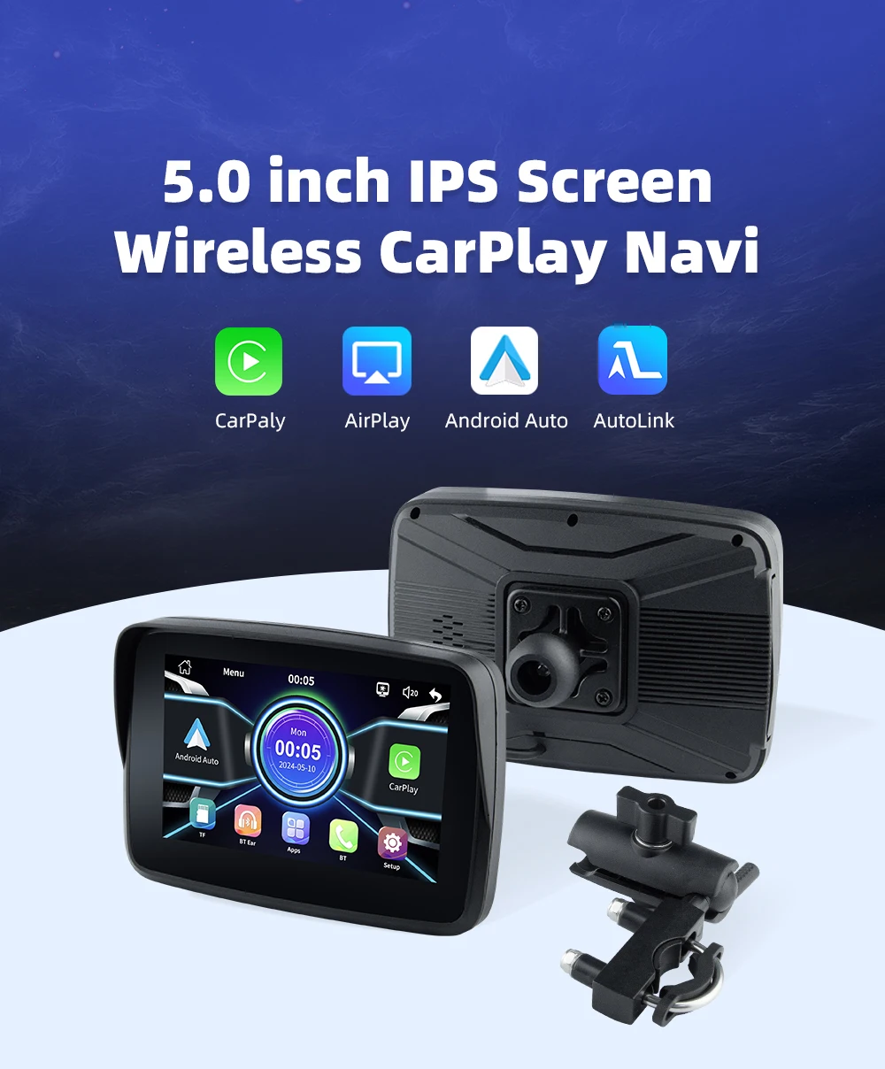 EKIY 5,0-дюймовый беспроводной CarPlay Moto, портативная цифровая приборная панель мотоцикла, GPS-навигация, экран, Android, автомонитор