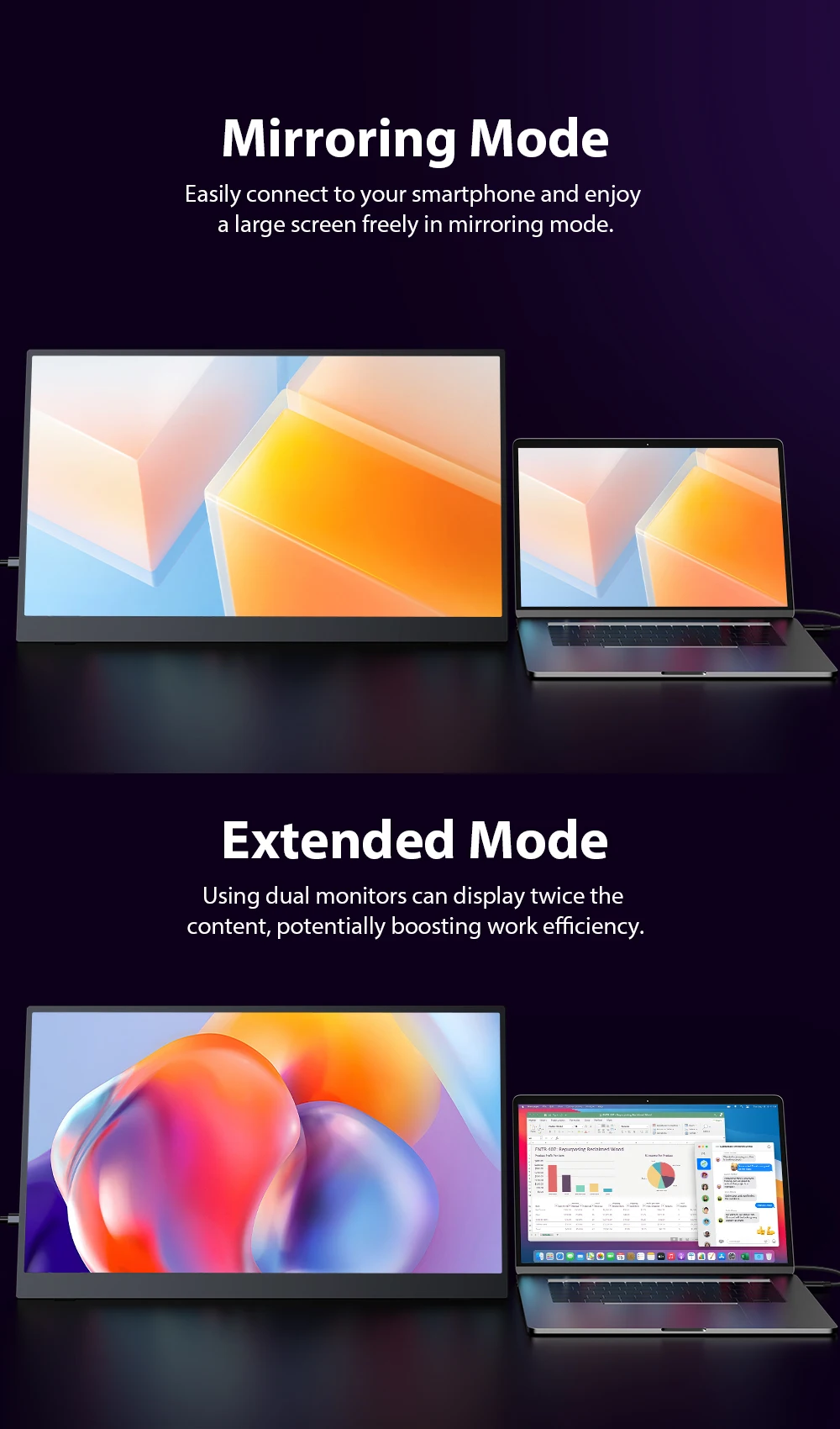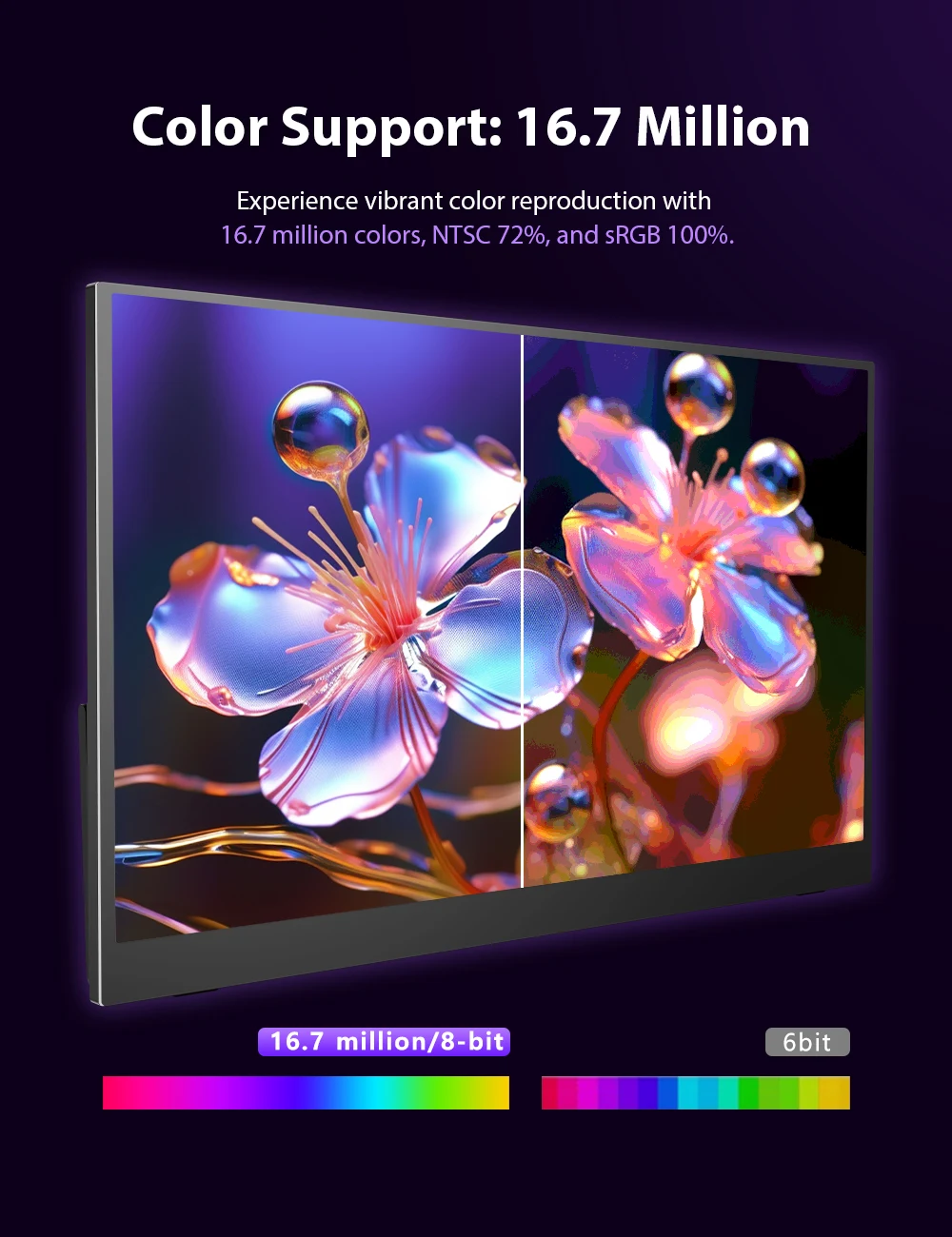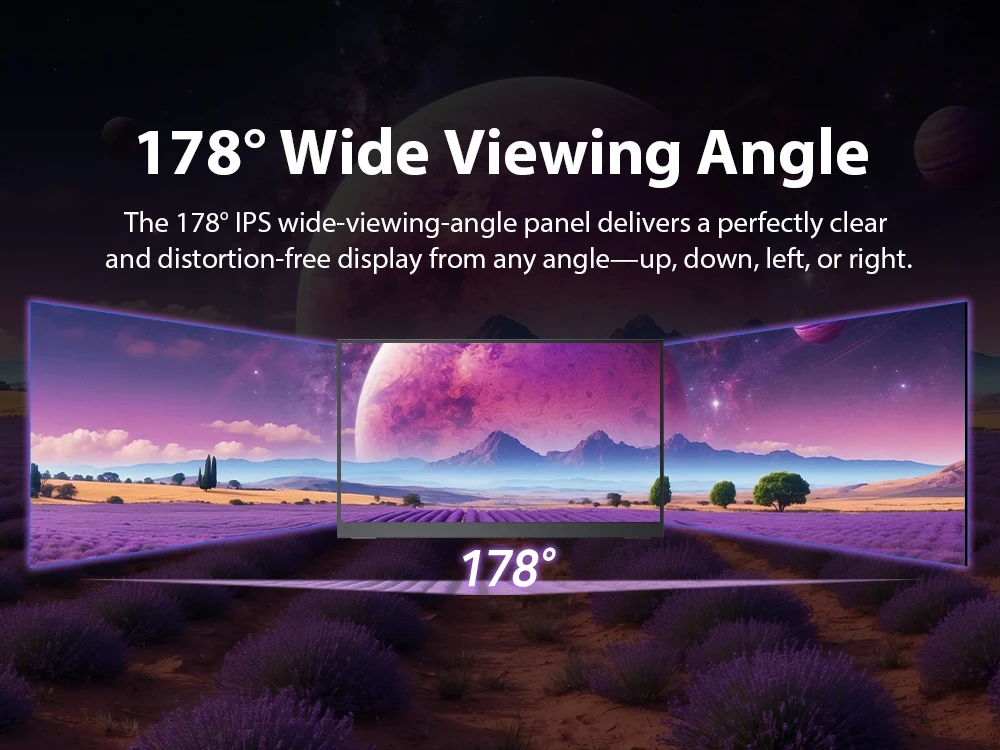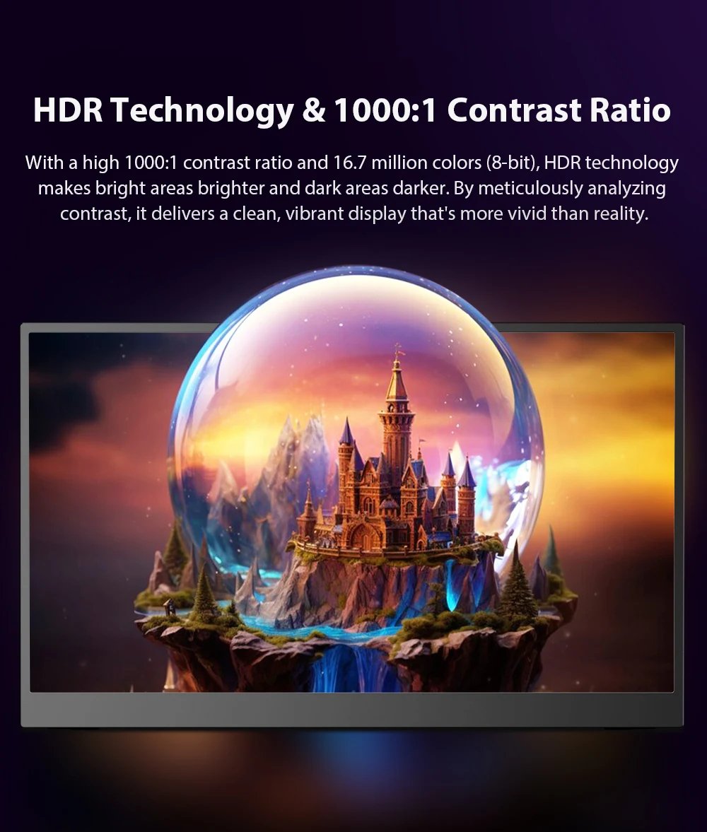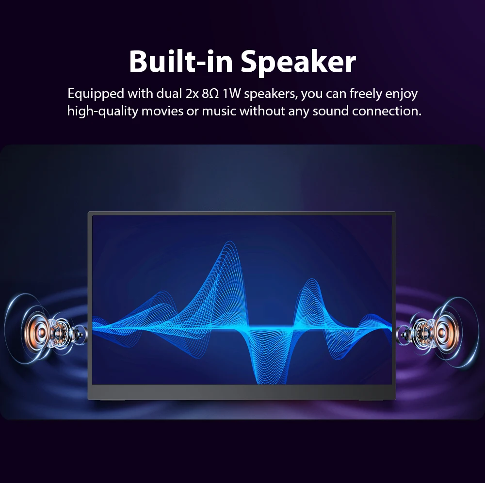 100% экран sRGB IPS Портативный монитор имеет более широкую цветовую гамму - 100% sRGB.Более точный контроль затемнения подсветки, отличается чрезвычайно черной, высокой воспринимаемой яркостью для потрясающей производительности.Сосредоточьтесь на цвете.Точность цветопередачи намного выше среднего IPS-экрана.идеально подходит для профессиональных дизайнерских работ, редактирования фотографий и захватывающих мультимедийных впечатлений.