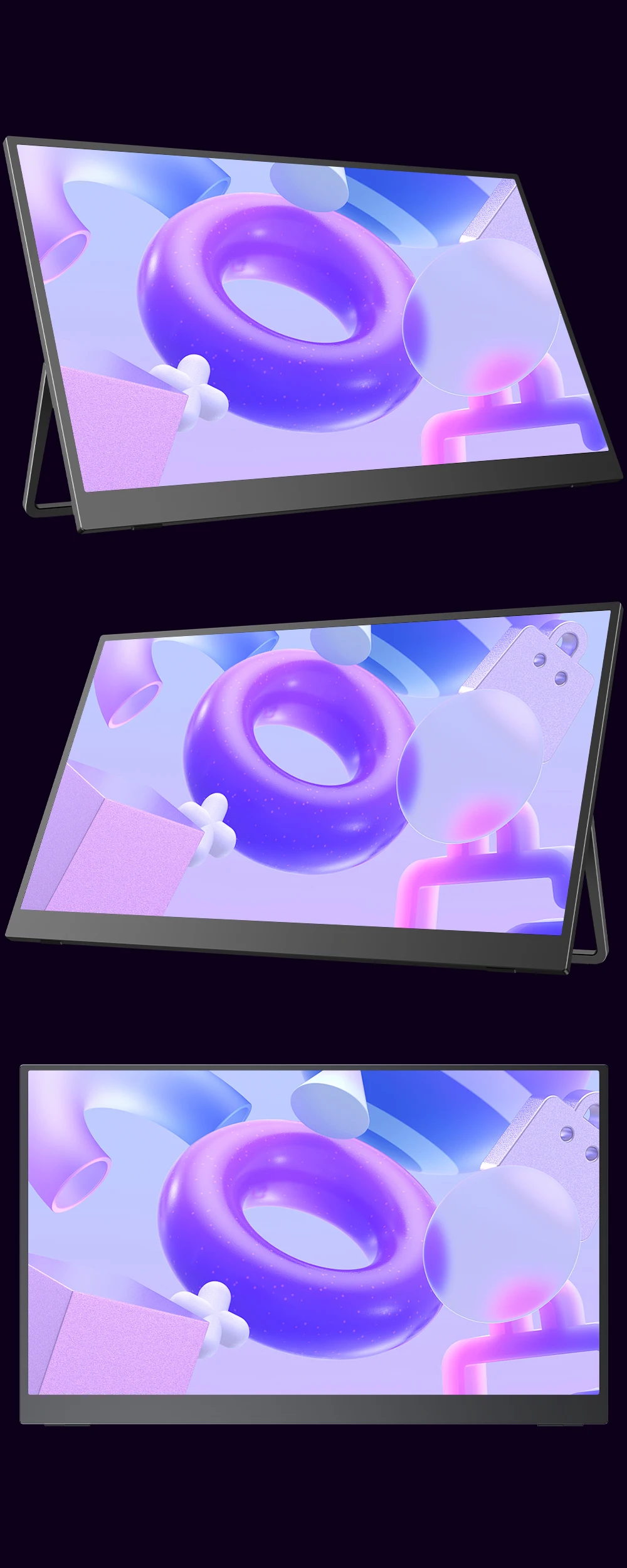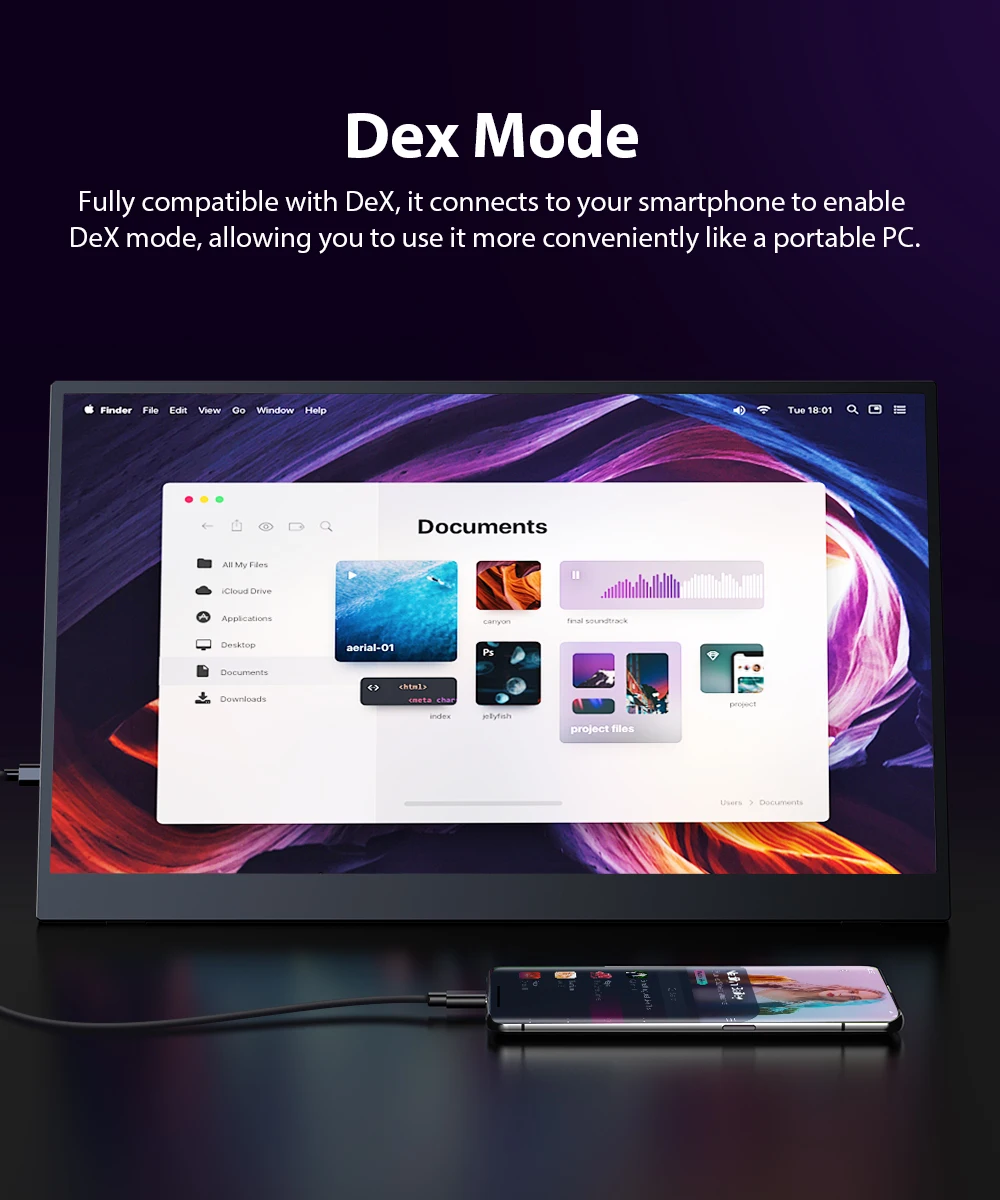 USB-C, монитор Plug & Play Драйвер не нужен!Оснащен двумя полнофункциональными портами USB-C и 1 портом HDMI; Нужен только один кабель USB-C, чтобы решить проблему многопроводной обмотки; Легко подключиться к игровой консоли, ноутбуку, ПК, планшету, телефону.Встроенные 2 динамика и аудиоразъем 3,5 мм для большего развлечения.