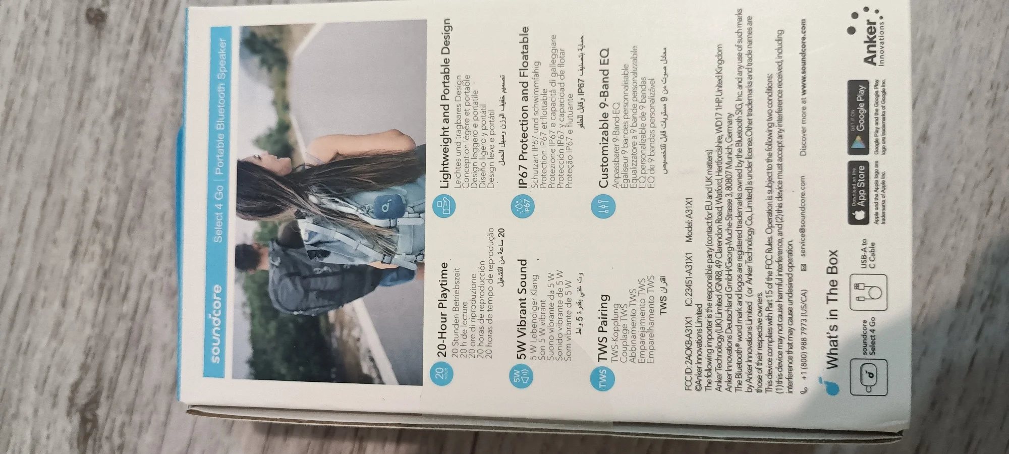 - Included Components:Note: Wall charger not included., soundcore Select 4 Go *1, 30cm A-C cable *1, Safety card & QSG *1