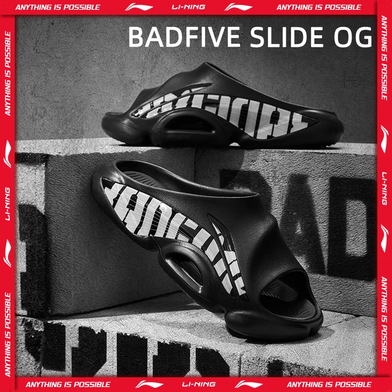 Мужские уличные тапочки Li-Ning BADFIVE SLIDE OG, легкие баскетбольные сандалии с мягкой подушкой и противоскользящей подкладкой ABTV007