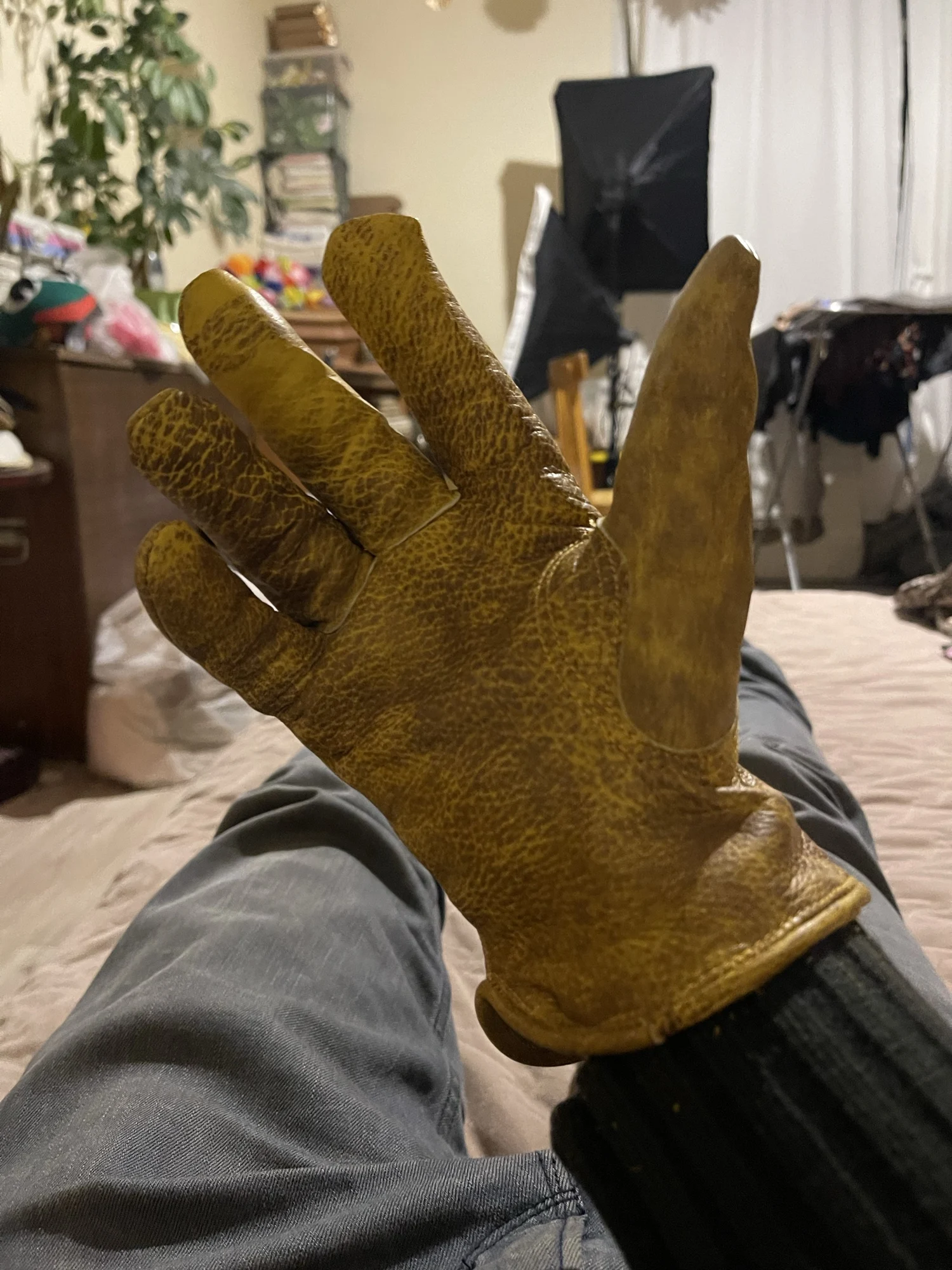 В рабочих перчатках из воловьей кожи OLSON DEEPAK используется специальная технология натуральной кожи, изготовленная из масляной воловьей кожи, благодаря чему перчатки выглядят так, будто их брызгали жирной грязью, но уникальными и забавными.Кожа мягкая и гибкая.Перчатки изготавливаются вручную, поэтому вы можете получить разные впечатления, чем у меня есть.