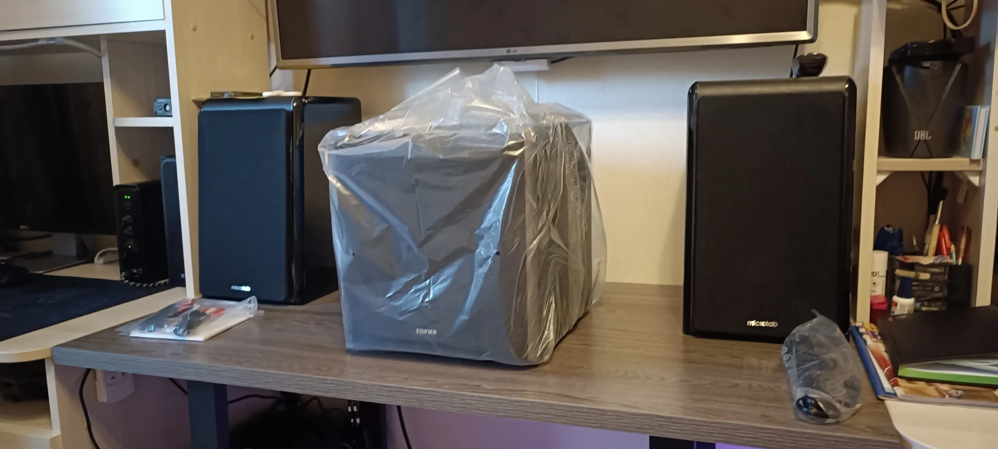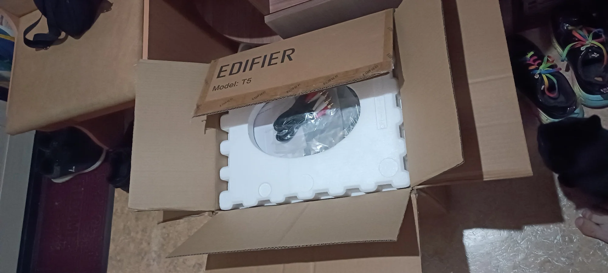 Если вкратце, то за свои деньги классный сабвуфер, но не стоит от него ожидать чудес, потому что он мультимедийный и бюджетный, хоть и сделан добротно. Мне товар с Москвы до КЧР доставили за 6 дней (доставка курьером до двери). Внешняя и внутренняя коробка была повреждена, пенопласт тоже, но сам сабвуфер цел и невредим, комплектация полная, все пакеты и плёнки на месте. Спустя 2 недели пользования и прогрева динамика после приобретения сабвуфера я начал отчётливо слышать дребезжание из-под пылезащитного колпачка. Тогда у меня уже истекла "защита", но продавец пошёл навстречу и нам удалось прийти к компромиссу. А также в ходе общения мы с ним сошлись на том, что динамик может издавать дребезжащие звуки из-под пылезащитного колпачка (подтвердили и дали ответ с фабрики после проверки на прототипах). Но речь идёт за "адекватное" дребезжание, когда оно не мешает наслаждаться воспроизведением медиа и слышно его под хорошей такой нагрузкой если вслушиваться на расстоянии 10-20 см от динамика, но не когда этот дребезг слышен сдалека (в метре и более от динамика). Сейчас у меня 2 сабвуфера T5. Они прекрасно дополняют друг друга, низкие частоты более объёмные, отчётливые, но и расположены они по бокам от стола, который стоит напротив пустого угла заставленной вещами комнаты в 10 кв.. T5 используются в сочетании с Edifier T1280Ts и подключены через sub out колонок (от колонок к первому сабу и от него ко второму, благодаря тому что разъёмы саба работают как перемычка). На колонках я выкручиваю звук от 10% до 50% (30%-40% обычно), а у сабвуферов у меня фаза 180 градусов, настроены они на 30% громкости и около 140 Гц, т.к. активный выход sub out приглушает колонки примерно до 140 Гц. В качестве звуковой карты используется Realtek® ALC892 у мат. платы B450 TOMAHAWK. Из-за высокой чувствительности входного сигнала у T5, не использую их напрямую от материнки, т.к. неудобно управлять громкостью сабов, они "разрываются" даже на минимальной громкости (а в системе у меня всегда 90%) и часто ловят перегруз. Тут и выручает sub out колоночек. И последнее: у саба 1 точка громкости соответствует 5%, а 1 точка среза частоты соответствует 6 Гц. Самые первые точки не учитываются (0% и 30 Гц соответственно).
