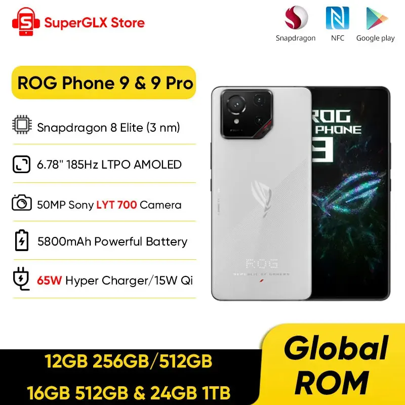 Смартфон ASUS ROG с глобальной ПЗУ 9 5G Snapdragon 8 Elite 6,78 дюйма, 185 Гц, LTPO-дисплей, 5800 мАч, 65 Вт, зарядка Android 15 ROG 9 Pro