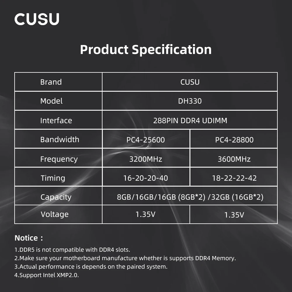 CUSU RAM DDR5 8/16/32 ГБ 3200/3600/5600/6400 МГц UDIMM для настольного ПК