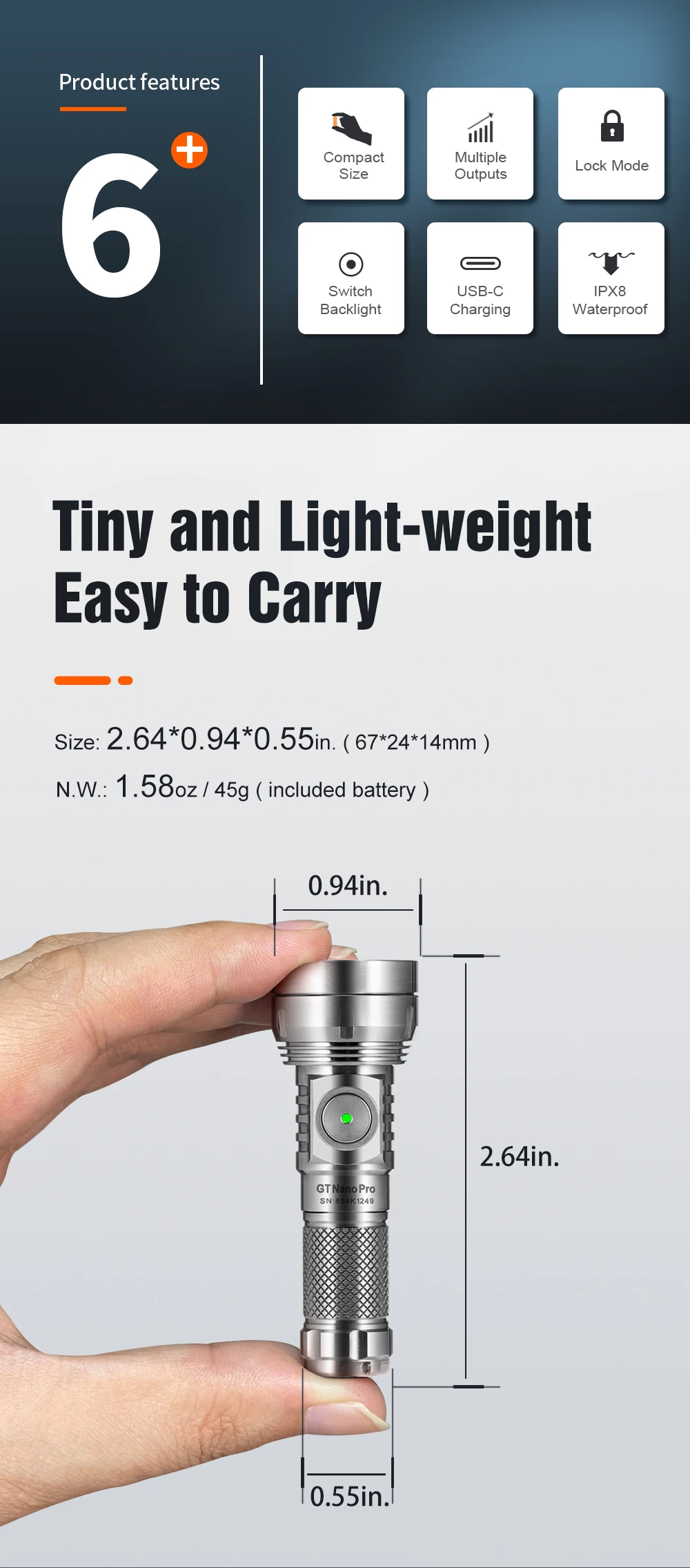 Размер фонарика: 67*24*14 мм