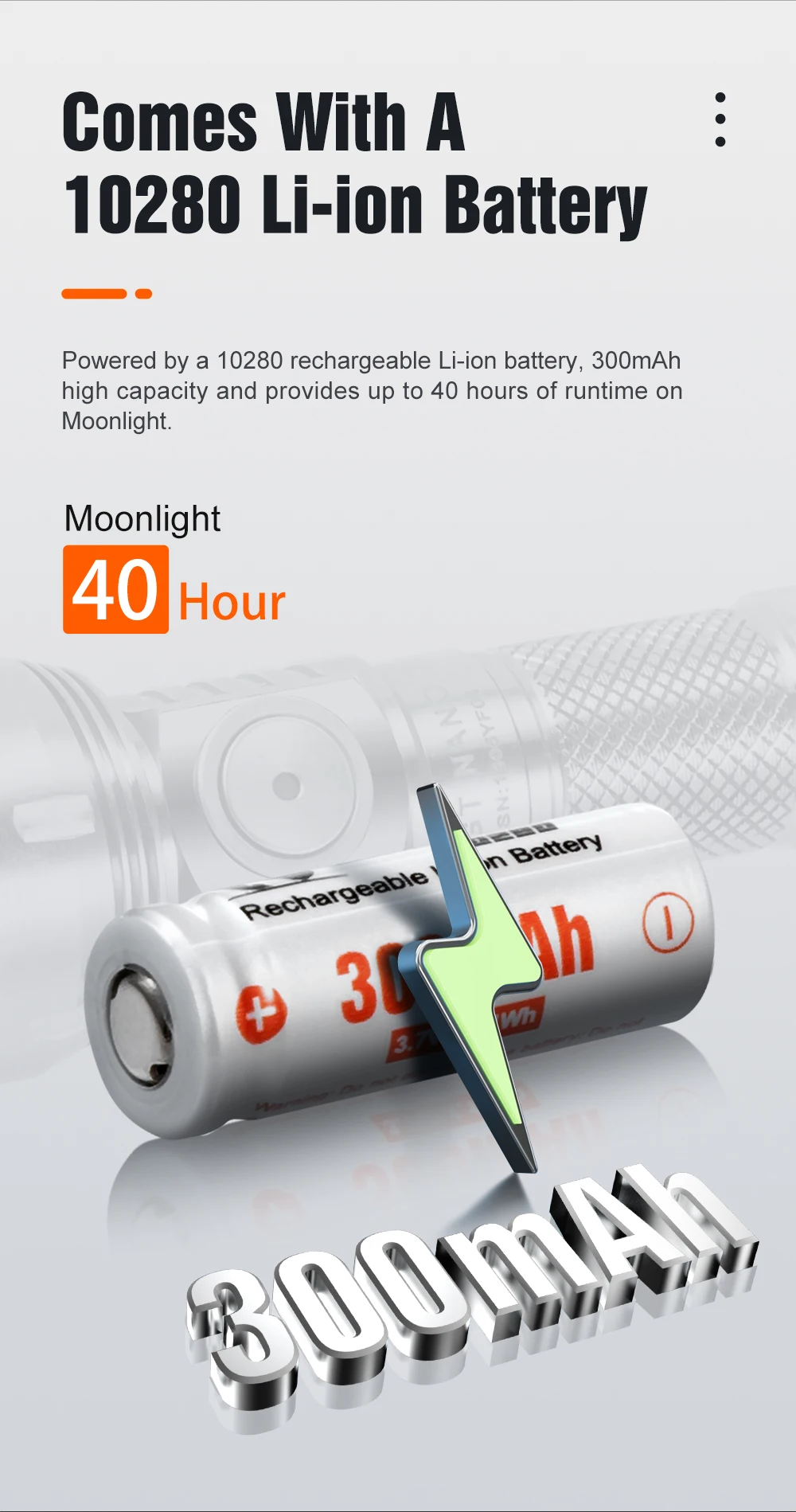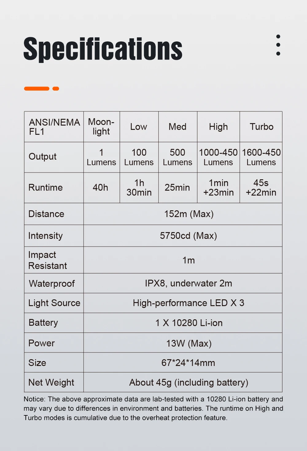Вес фонарика: 34 г (включая 1 батарею 10280. или 1 батарея 10750 при использовании удлинительной трубки 10750.