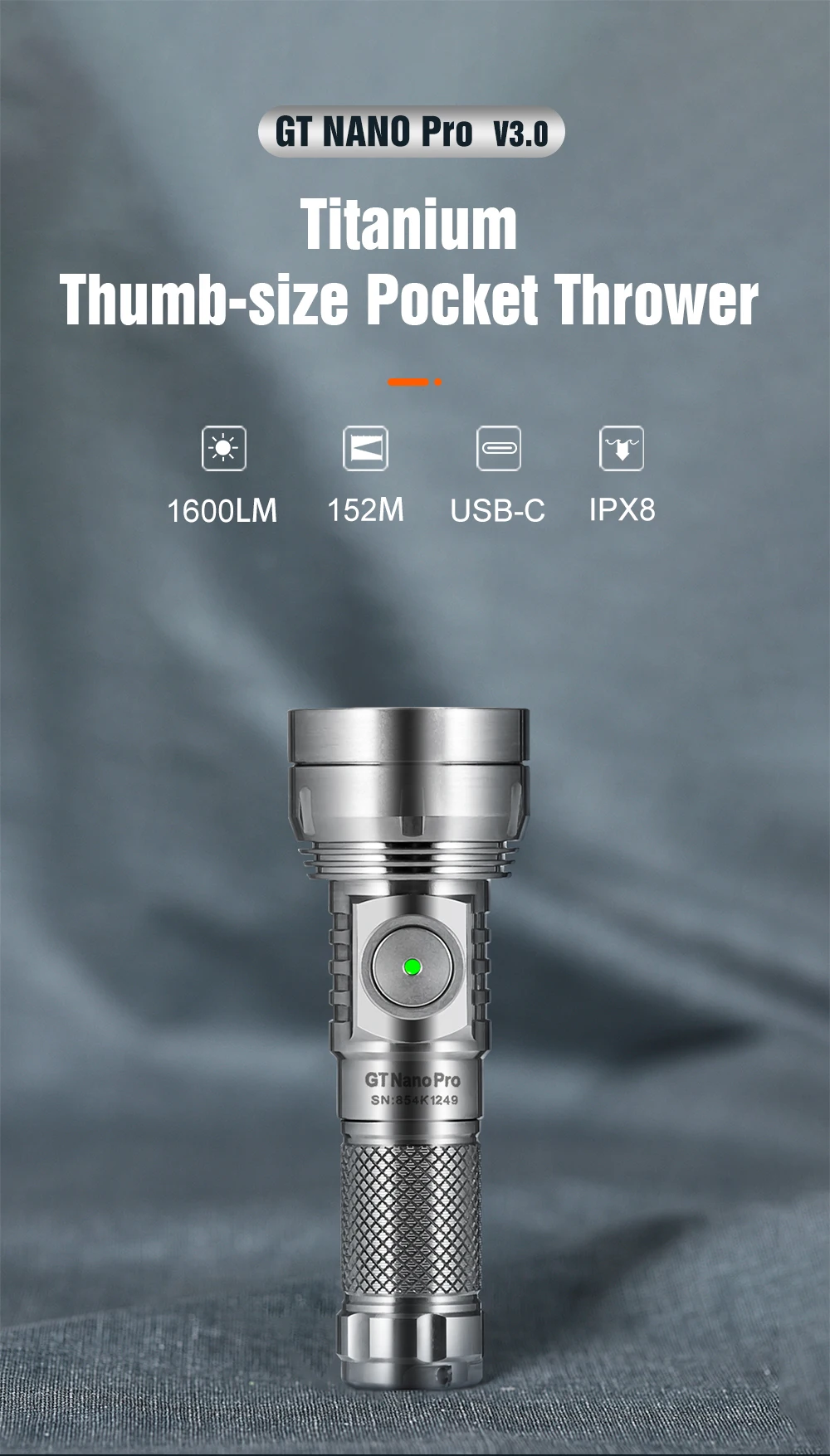 Lumintop GT NANO PRO Титановый фонарь 1600 люмен