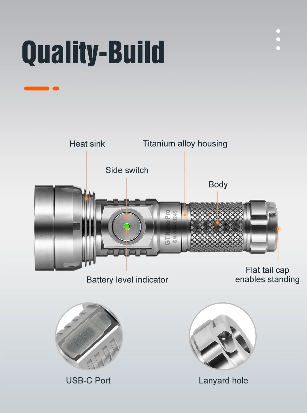 Lumintop GT NANO Pro V3 Титановый USB TYPE C перезаряжаемый мини-флевой фонарь