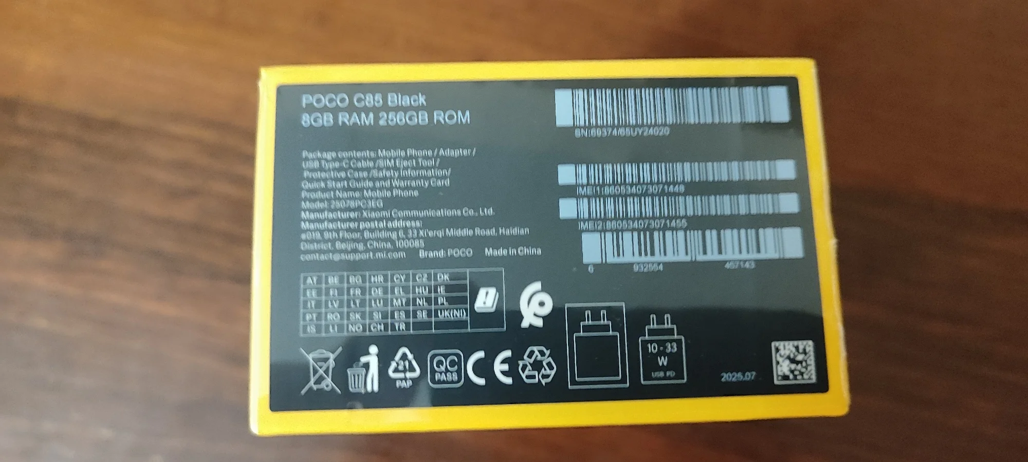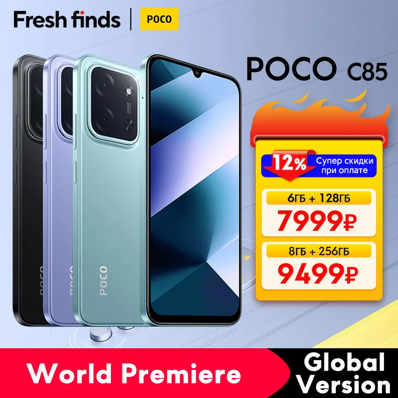 Смартфон POCO C85 глобального версии с оригинальным зарядным устройством ЕС!
