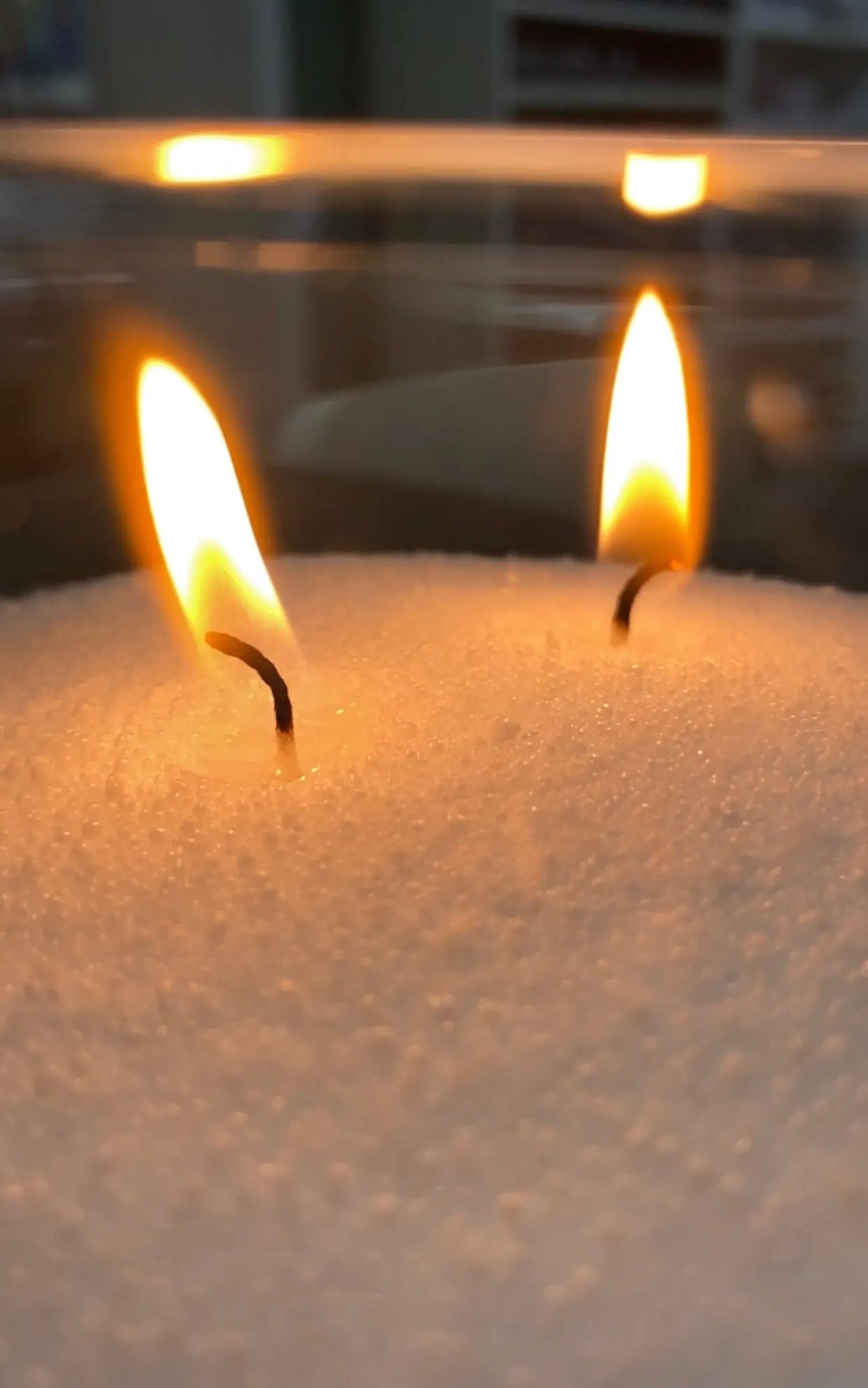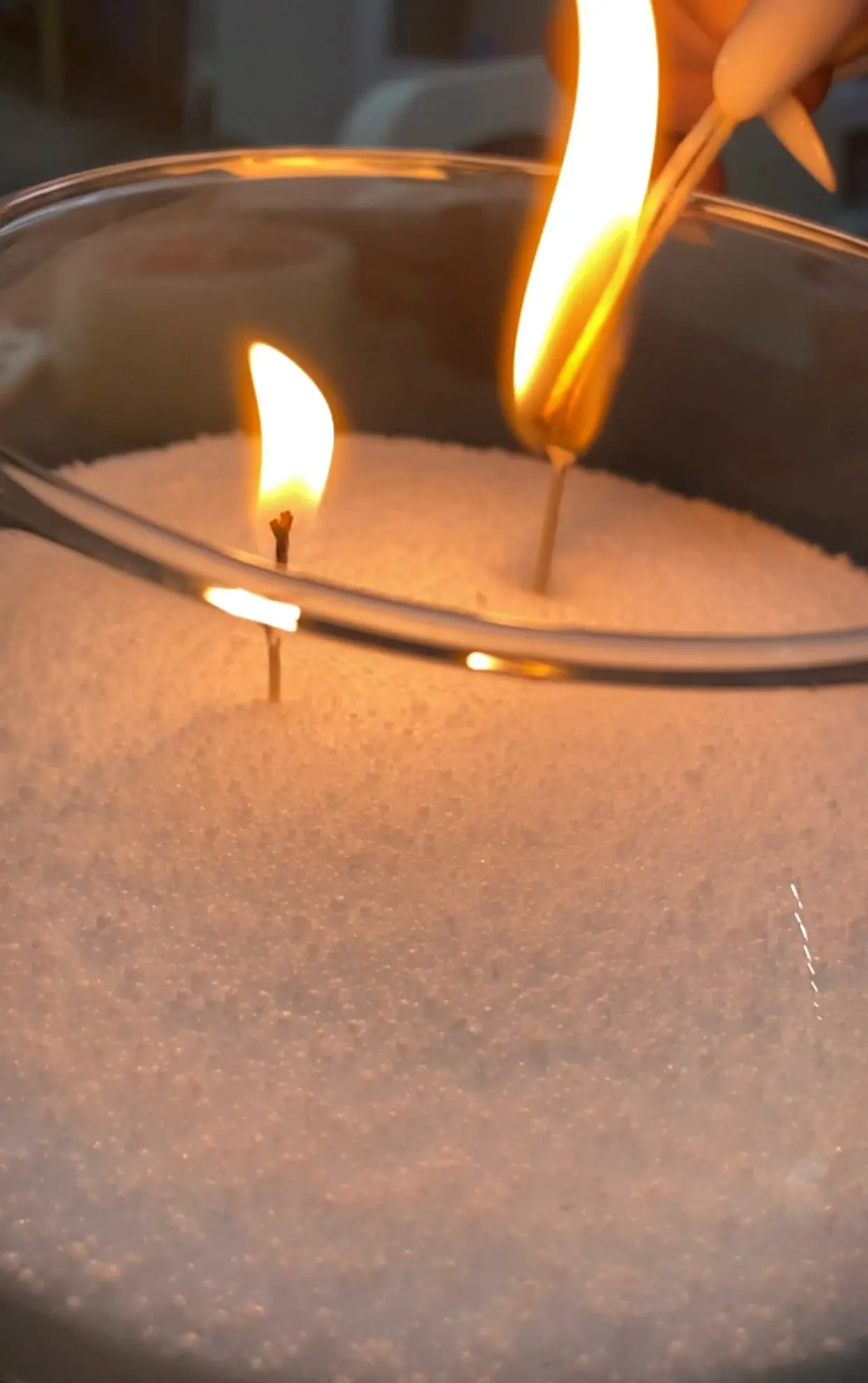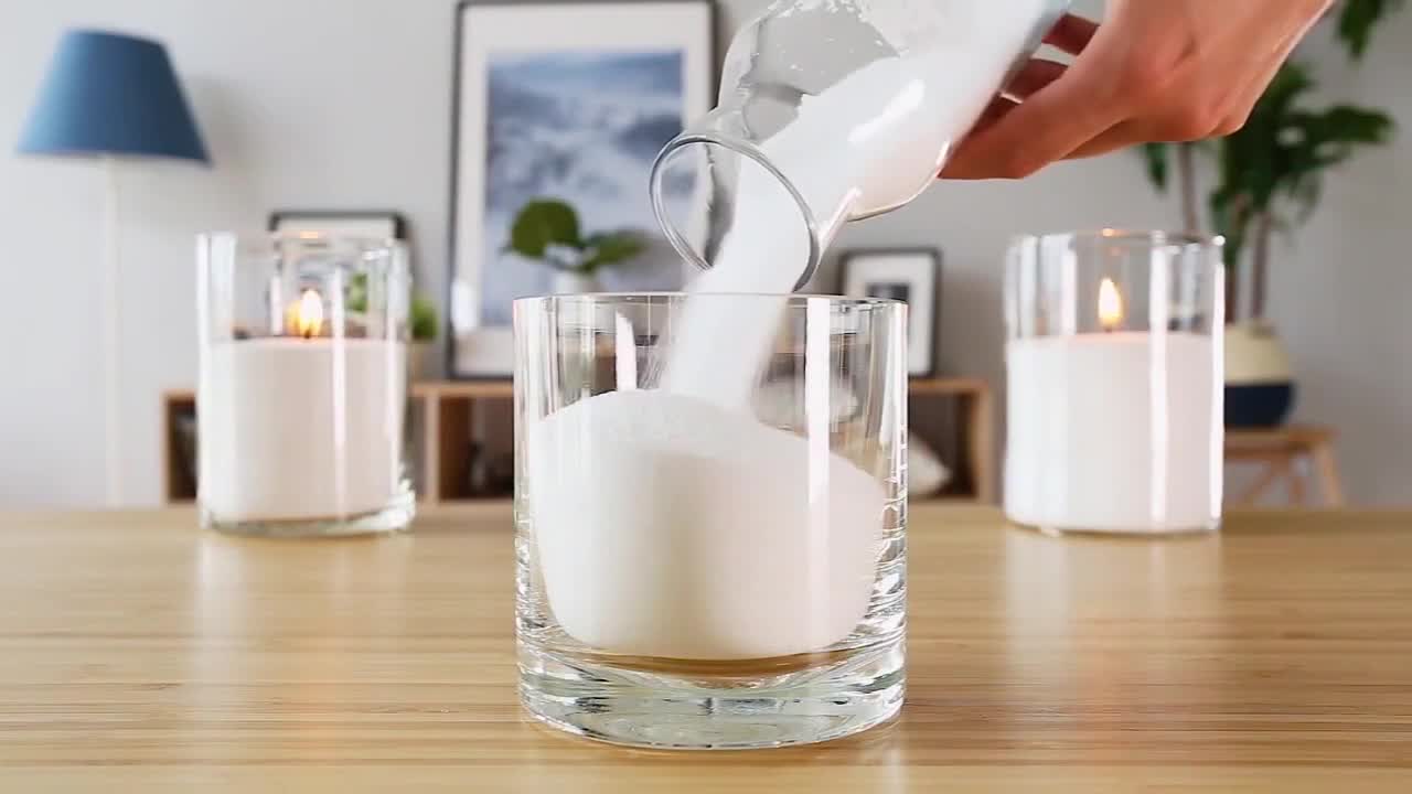 После использования обычных парафиновых свечей в течении 5-6 часов они текут, теряют свой эстетичный вид, оставляют следы на поверхностях, в отличие от насыпных свечей. Если свечи засыпать в ёмкость, то воск не будет растекаться дальше ее границ, и они оставят поверхности чистыми!